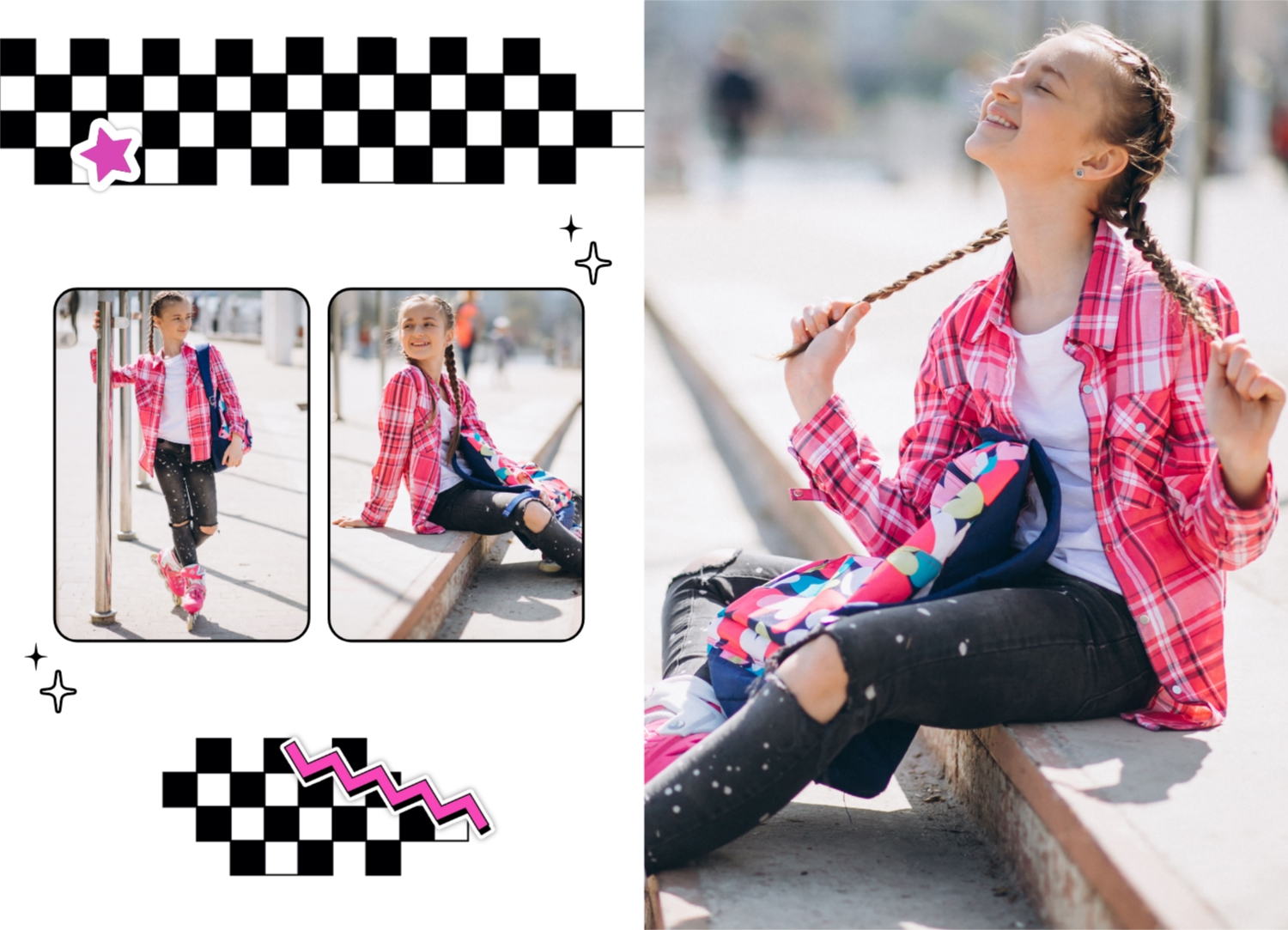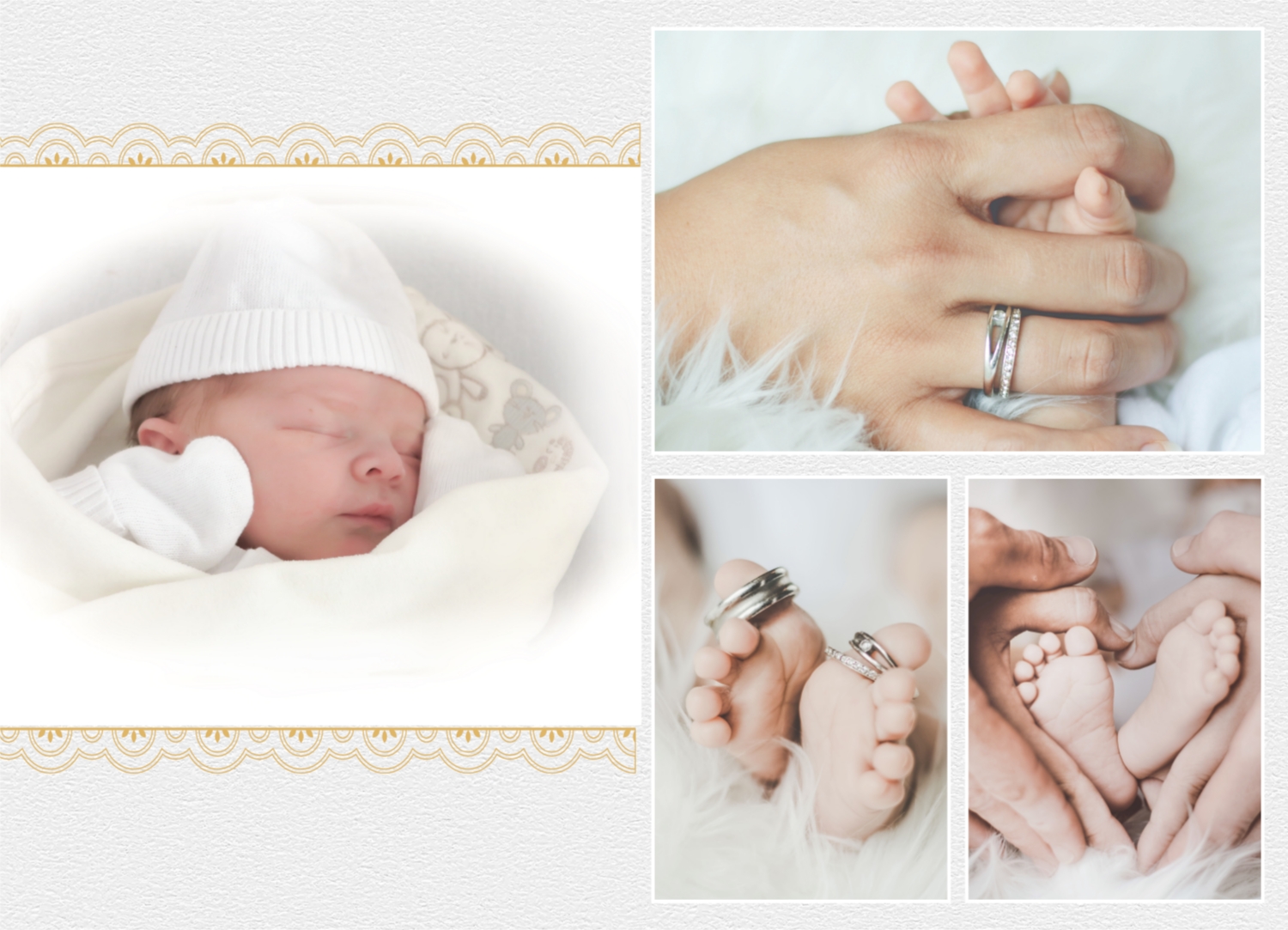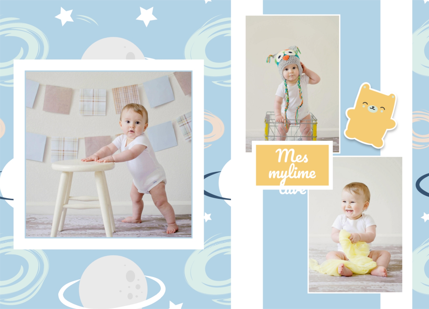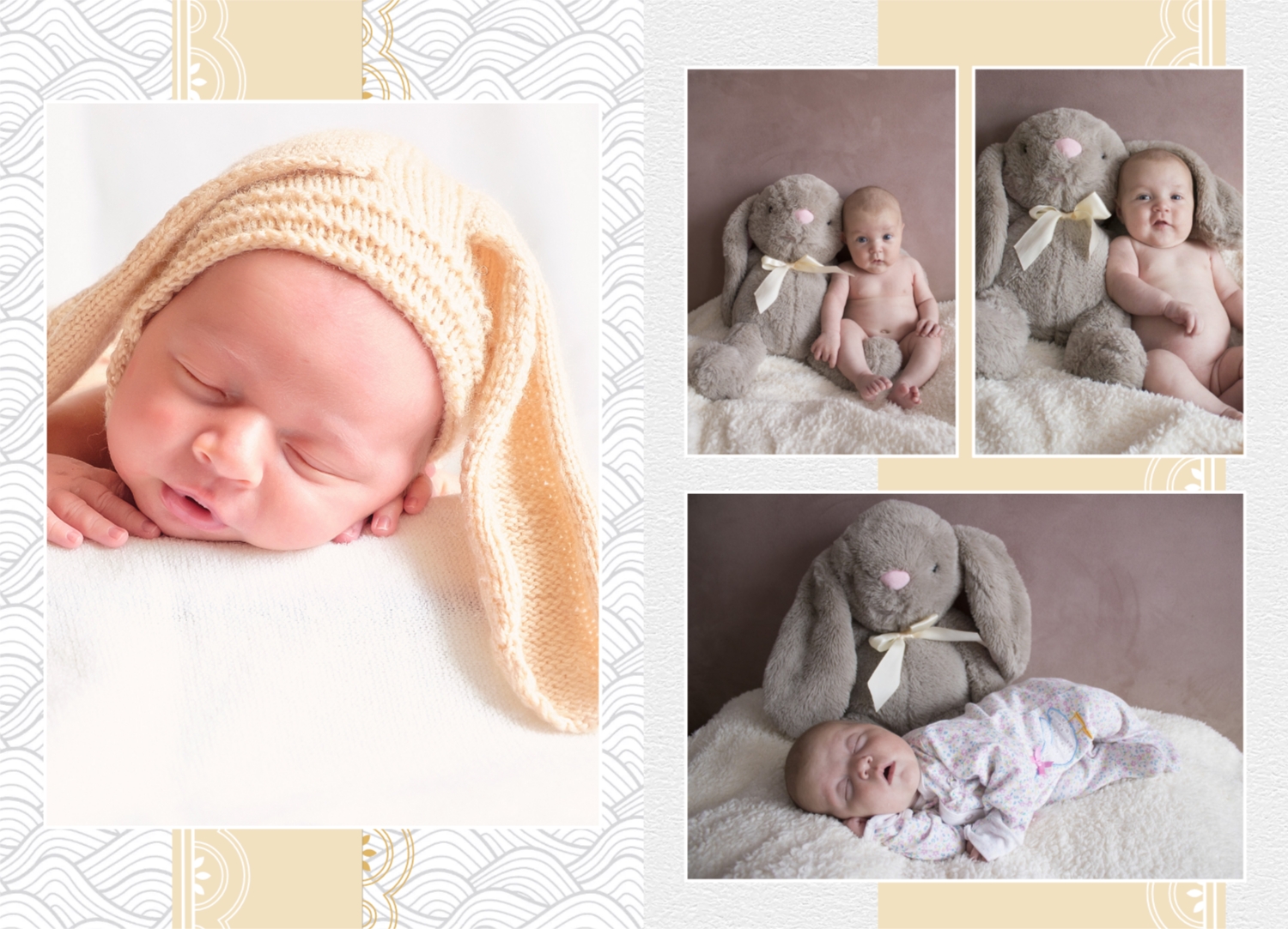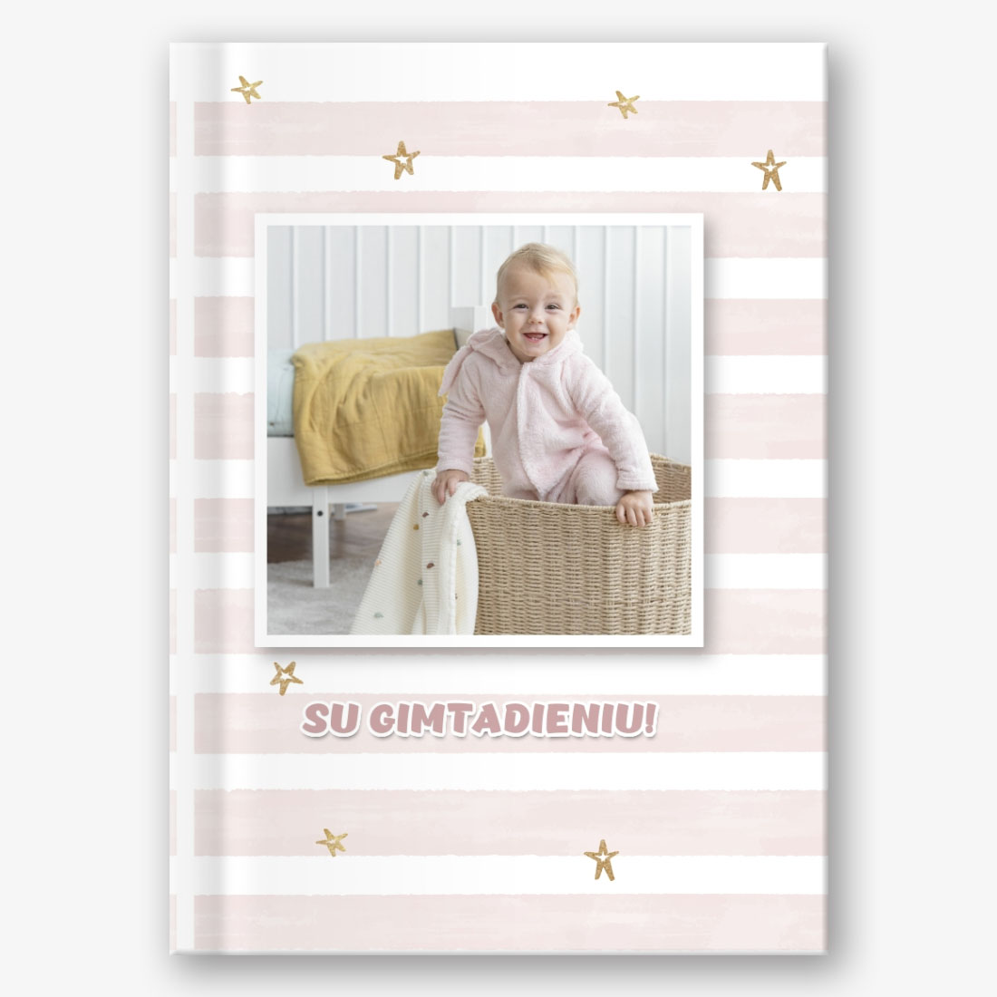 Paruoštas vertikalios fotoknygos šablonas kietame viršelyje naujagimio nuotraukai "mažoji princesė" - tai švelnus ir jaudinantis maketas, kuris padės išsaugoti pačias vertingiausias pirmųjų mažylio gyvenimo dienų akimirkas. Dizainas Pagamintas minkštomis pastelinėmis spalvomis su elegantiškais dekoratyviniais elementais: oro debesimis, mielais žaislais, gėlių modeliais ir nuostabiais motyvais. Šis šablonas gali būti naudojamas ne tik asmeniniais tikslais, bet ir profesinėje srityje. Tai bus puikus pagrindas fotografams, dizaineriams ir specialistams, užsiimantiems vaikų nuotraukų albumų dizainu. Jis taip pat tinka fotostudijų darbuotojams, kurie siūlo klientams sukurti išskirtines knygas su vaikų nuotraukomis. Internetiniame dizaineryje maketas yra lengvai redaguojamas, todėl jis tikrai unikalus. Galite pakeisti foną, pridėti papildomų dekoratyvinių elementų arba pašalinti nereikalingas dalis. Laukai su tekstu ir nuotraukomis yra visiškai pritaikomi: galite pakeisti nuotraukų dydį ir vietą, pasirinkti tinkamą parašų šriftą ir spalvą, pridėti šiltų norų ar juokingų komentarų. Nuotraukos patogiai įkeliamos tiesiai į konstruktorių, kur jas galima apipjaustyti, redaguoti ir patalpinti reikiama tvarka.