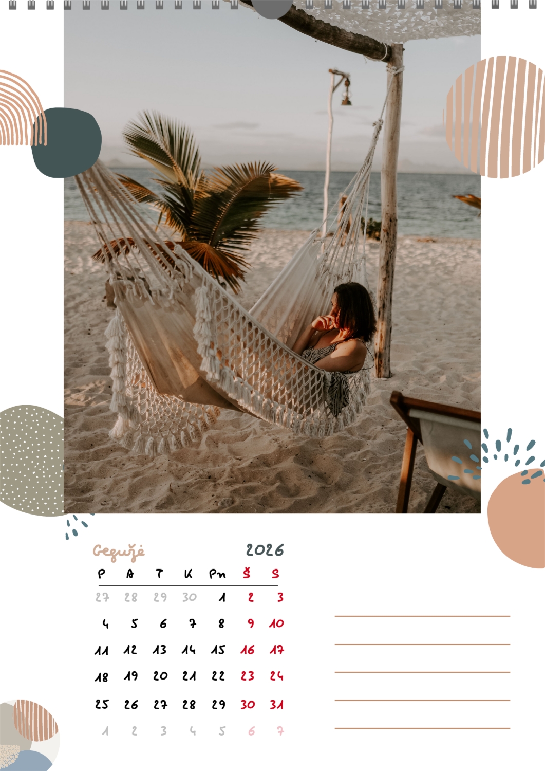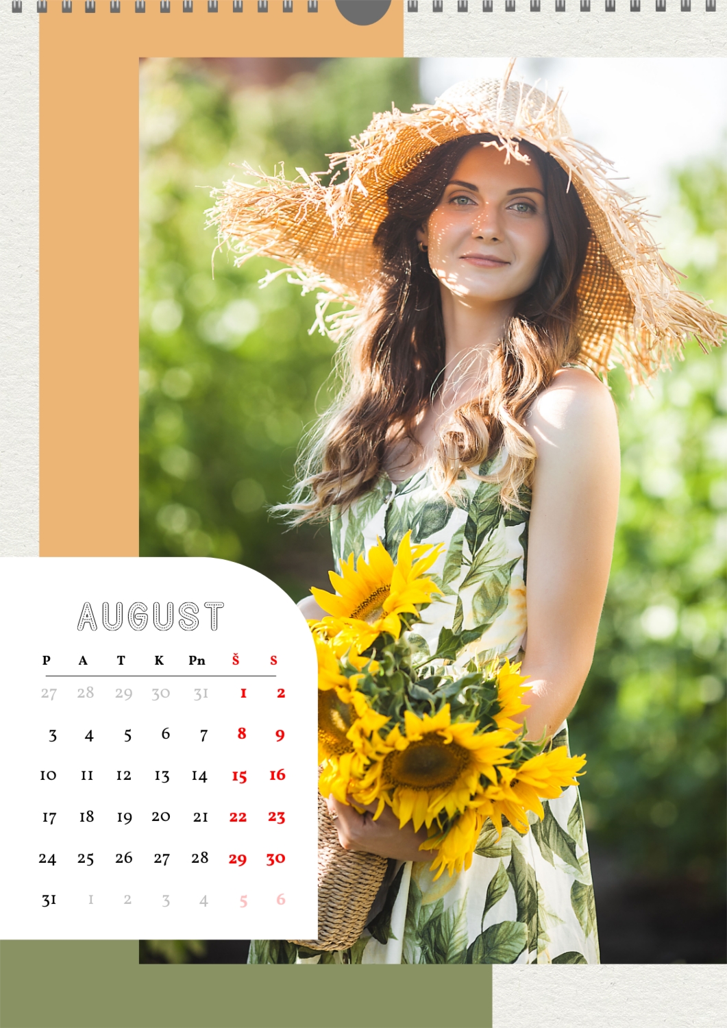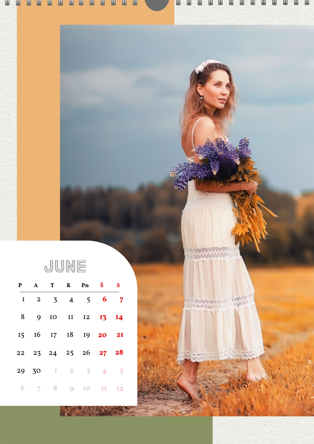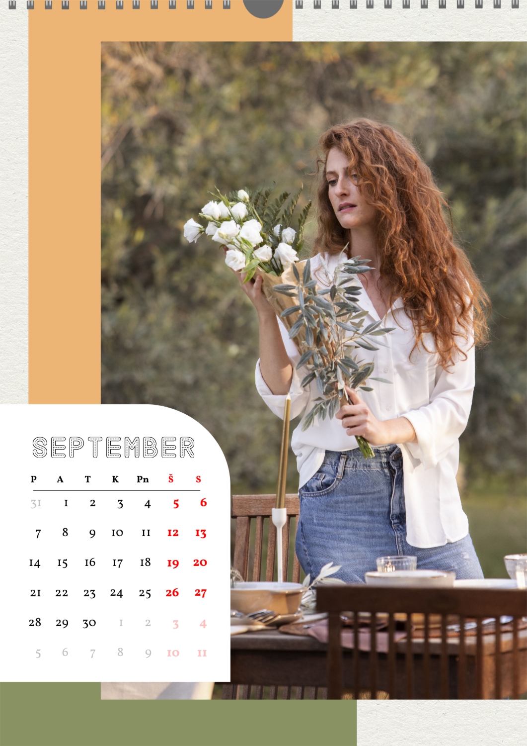 Paruoštas kalendoriaus "prisiminimai" šablonas sukurtas tiems, kurie vertina šiltus momentus ir nori juos išsaugoti kasdieniame gyvenime. Jo minkšta kompozicija, šviesi paletė ir tvarkingos dekoratyvinės detalės leidžia pabrėžti šeimos komforto, kelionių, renginių ir brangių susitikimų atmosferą. Šis šablonas tinka tėvams, mokytojams, fotografams, kūrybinėms studijoms, mažų prekių ženklų savininkams, taip pat visiems, kurie nori sukurti asmenines ar darbo erdves su dvasiniu akcentu. Jis vienodai tinka tiek namuose, tiek biure — tiek studijoje-visur, kur svarbios emocijos ir vizualinė estetika. Internetiniame dizaineryje šis kalendorius gali būti lengvai pritaikytas prie jūsų stiliaus. Kiekvieną puslapį galima užpildyti savo nuotraukomis - nuo šeimos nuotraukų iki mokinių portretų ar renginių personalo. Parašai ir datos redaguojami: galite pakeisti mėnesių pavadinimus, pridėti svarbių įvykių, pažymėti gimtadienius, įsimintinas datas ar kultūrinius renginius savo organizacijoje. Užrašų šriftai ir spalvos taip pat nustatomi, kad kalendorius būtų ryškesnis, griežtesnis arba, atvirkščiai, kuo švelnesnis. Jei pageidaujate, galite pridėti įmonės logotipą, šūkį, kontaktinę informaciją arba palikti dizainą visiškai asmeninį ir namų dizainą. "Prisiminimų" šablonas skirtas savarankiškai sukurti unikalų kalendorių tiesiai internetiniame dizaineryje, nereikia turėti profesionalių grafikos programų. Visi redagavimai vyksta intuityviai ir žingsnis po žingsnio, o rezultatas atrodys profesionalus ir harmoningas. Toks kalendorius tampa ne tik Sienų apdaila,bet ir tikra istorija, kuri kasdien primins svarbiausią dalyką.