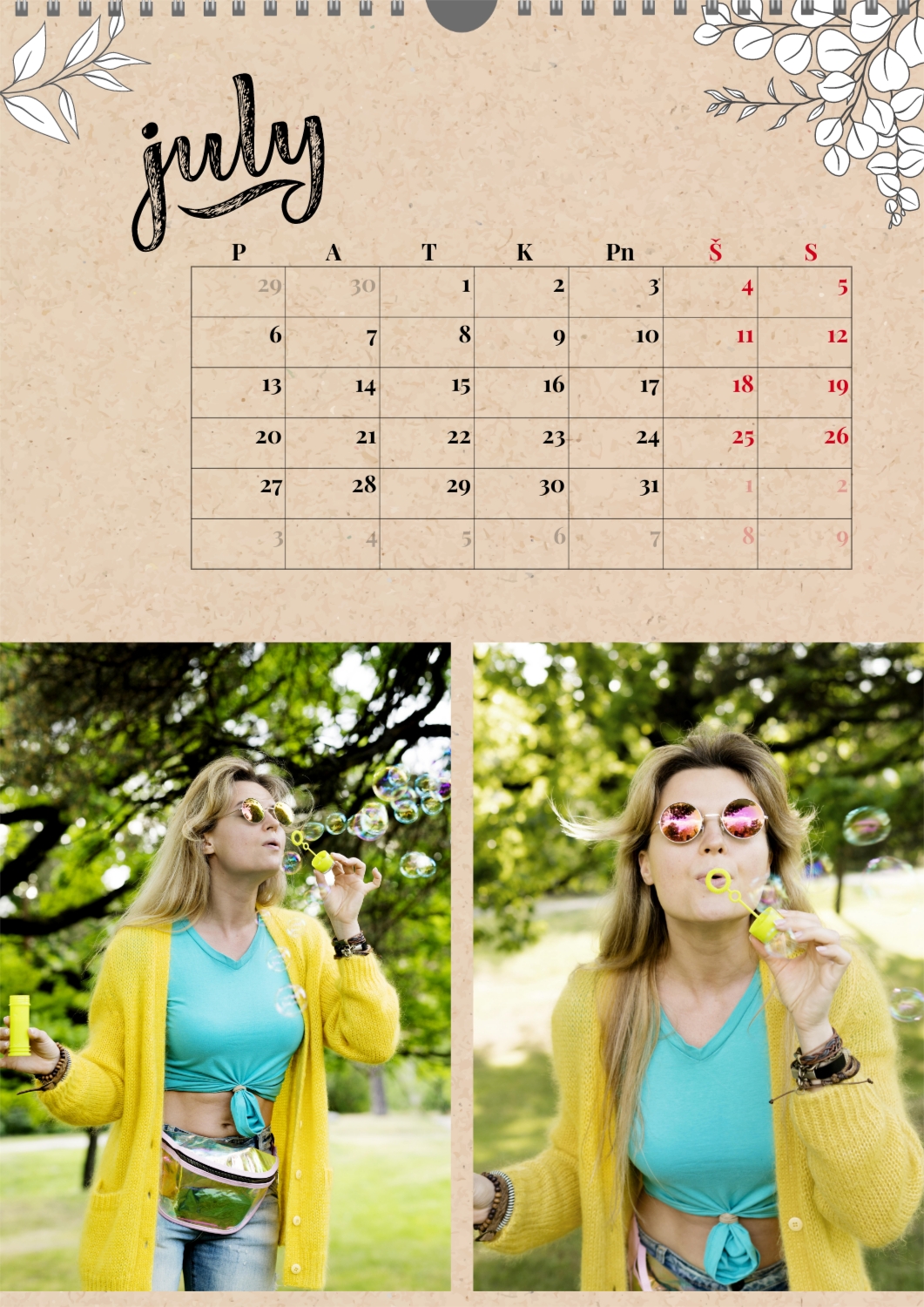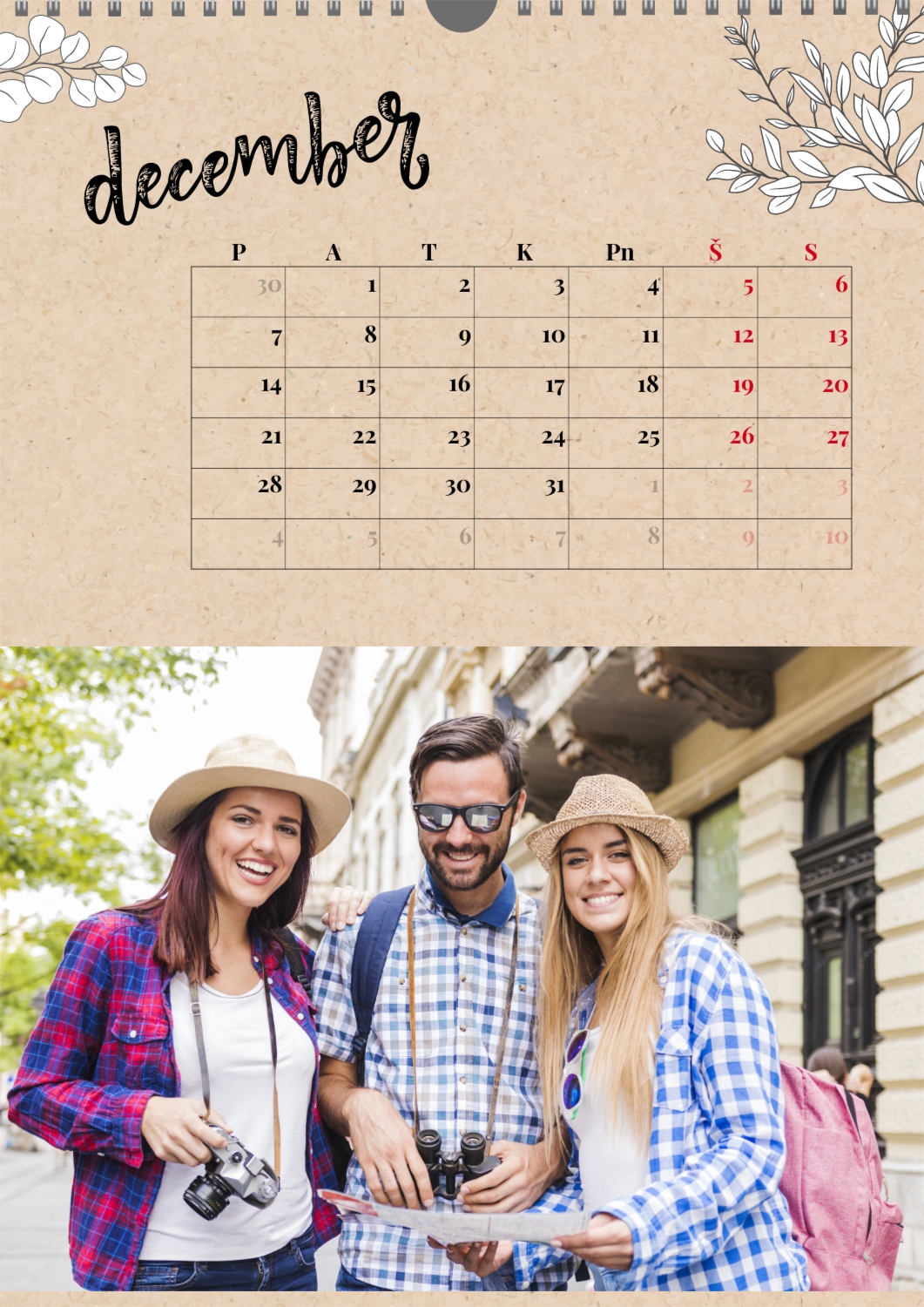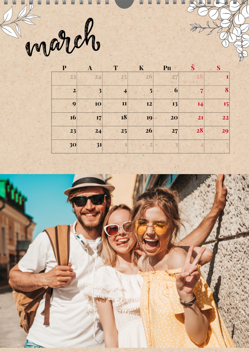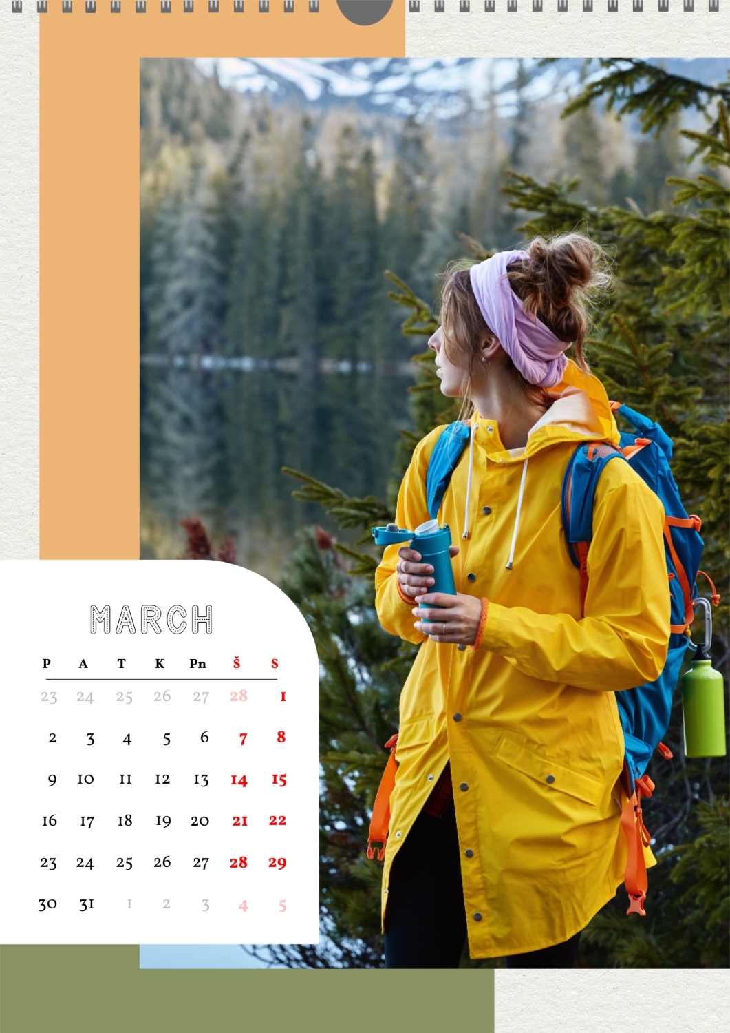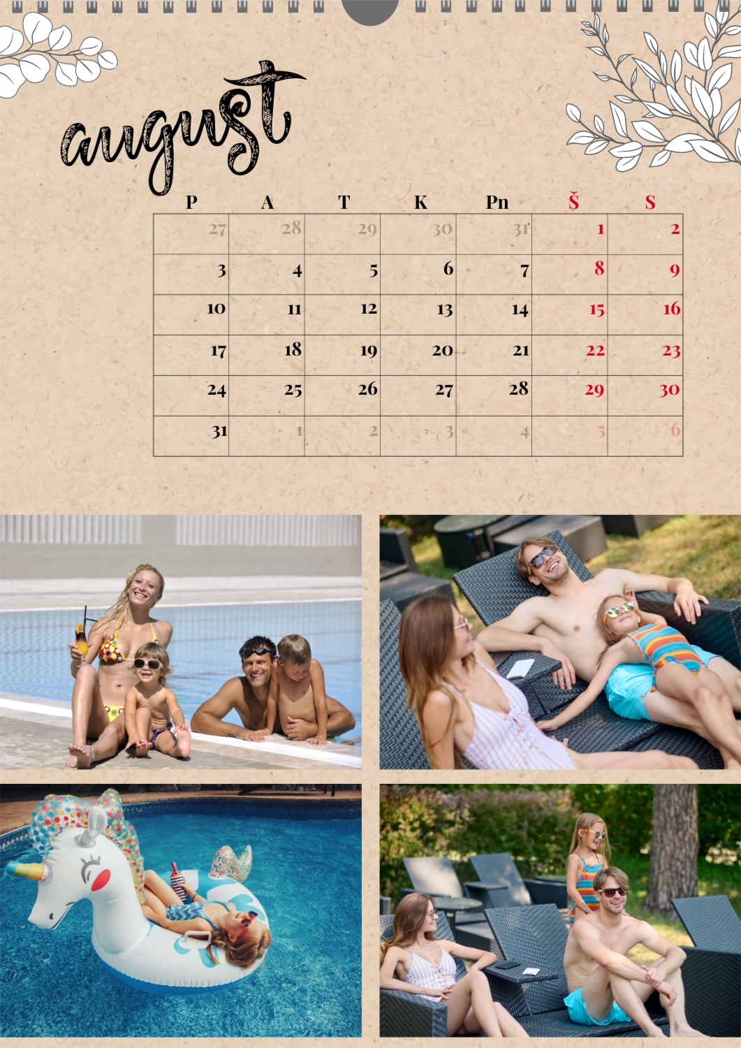 Paruoštas kalendoriaus "prisiminimai" šablonas sukurtas tiems, kurie vertina šiltus momentus ir nori juos išsaugoti kasdieniame gyvenime. Jo minkšta kompozicija, šviesi paletė ir tvarkingos dekoratyvinės detalės leidžia pabrėžti šeimos komforto, kelionių, renginių ir brangių susitikimų atmosferą. Šis šablonas tinka tėvams, mokytojams, fotografams, kūrybinėms studijoms, mažų prekių ženklų savininkams, taip pat visiems, kurie nori sukurti asmenines ar darbo erdves su dvasiniu akcentu. Jis vienodai tinka tiek namuose, tiek biure — tiek studijoje-visur, kur svarbios emocijos ir vizualinė estetika. Internetiniame dizaineryje šis kalendorius gali būti lengvai pritaikytas prie jūsų stiliaus. Kiekvieną puslapį galima užpildyti savo nuotraukomis - nuo šeimos nuotraukų iki mokinių portretų ar renginių personalo. Parašai ir datos redaguojami: galite pakeisti mėnesių pavadinimus, pridėti svarbių įvykių, pažymėti gimtadienius, įsimintinas datas ar kultūrinius renginius savo organizacijoje. Užrašų šriftai ir spalvos taip pat nustatomi, kad kalendorius būtų ryškesnis, griežtesnis arba, atvirkščiai, kuo švelnesnis. Jei pageidaujate, galite pridėti įmonės logotipą, šūkį, kontaktinę informaciją arba palikti dizainą visiškai asmeninį ir namų dizainą. "Prisiminimų" šablonas skirtas savarankiškai sukurti unikalų kalendorių tiesiai internetiniame dizaineryje, nereikia turėti profesionalių grafikos programų. Visi redagavimai vyksta intuityviai ir žingsnis po žingsnio, o rezultatas atrodys profesionalus ir harmoningas. Toks kalendorius tampa ne tik Sienų apdaila,bet ir tikra istorija, kuri kasdien primins svarbiausią dalyką.
