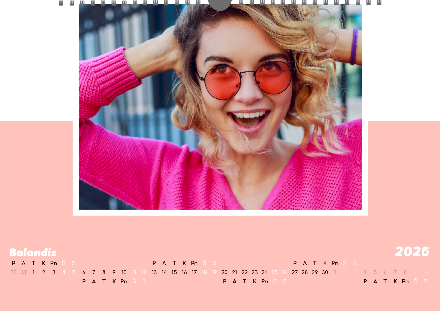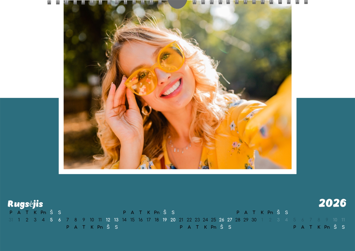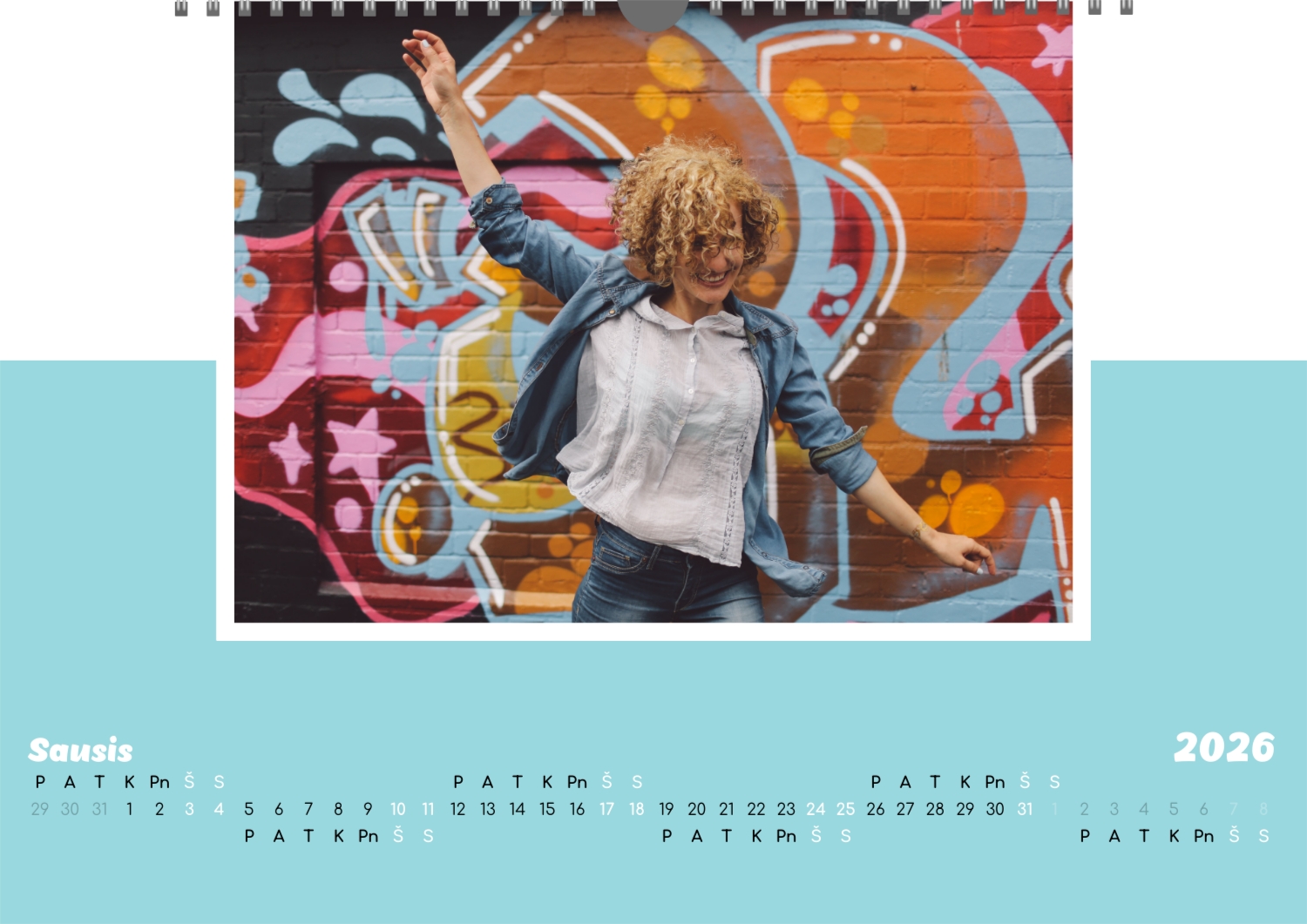 Gatavas horizontalaus kalendoriaus šablonas su nurodymu kitiems metams sukurtas tiems, kurie vertina įkvepiantį vizualinį stilių ir nori kasdien gauti šiek tiek priminimo apie tikslą, motyvaciją ar svarbų gyvenimo orientyrą. Mūsų internetiniame dizaineryje šablonas lengvai prisitaiko prie savo stiliaus ir užduočių. Galite pakeisti nurodymą, pakeisdami jį fraze, artima jums ar jūsų komandai; pakoreguokite spalvų schemą pagal firminius atspalvius; pakeiskite šriftus, pakoreguokite fono sodrumą arba pridėkite papildomų dekoratyvinių elementų. Jei kalendorius skirtas naudoti įmonėms, patogu pridėti įmonės logotipą, svetainę, kontaktus ar net įmonės vidines vertybes, kad kalendorius taptų vizualinės tapatybės dalimi. Asmeniniam naudojimui galite įkelti nuotraukas, pasirinkti mėgstamas spalvas ir sukurti kalendorių šiltu, įkvepiančiu ar minimalistiniu būdu. Redagavimas vyksta tiesiai naršyklėje ir nereikalauja sudėtingų dizaino įgūdžių: visus elementus galima vilkti, keisti jų dydį, pasukti, ištrinti ar papildyti. Rezultatas yra visiškai unikalus sienų kalendorius, sukurtas savo rankomis, kuris ne tik papuošia erdvę, bet ir tampa minkštu, bet pasitikinčiu priminimu apie pasirinktą kryptį vieneriems metams į priekį.
