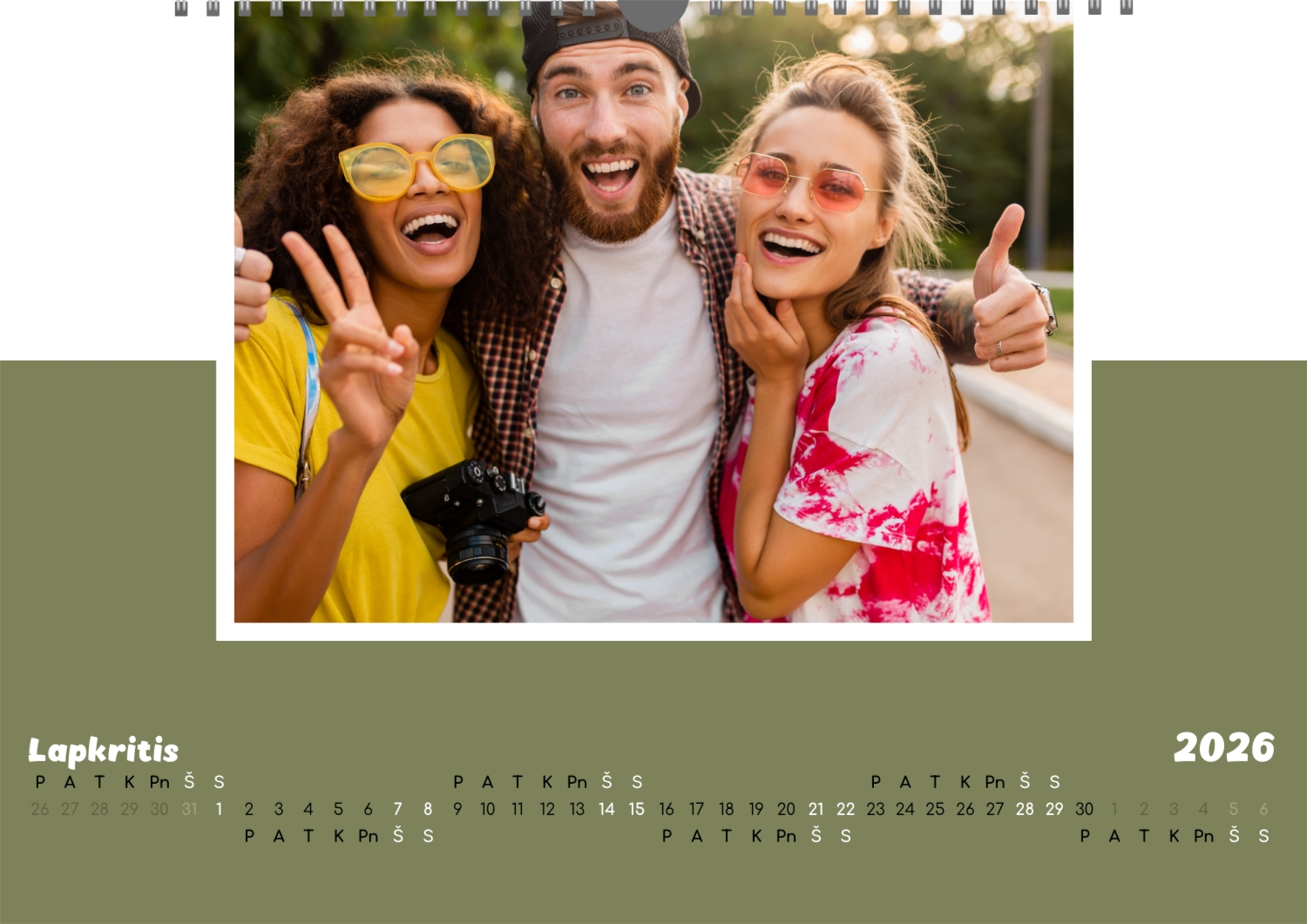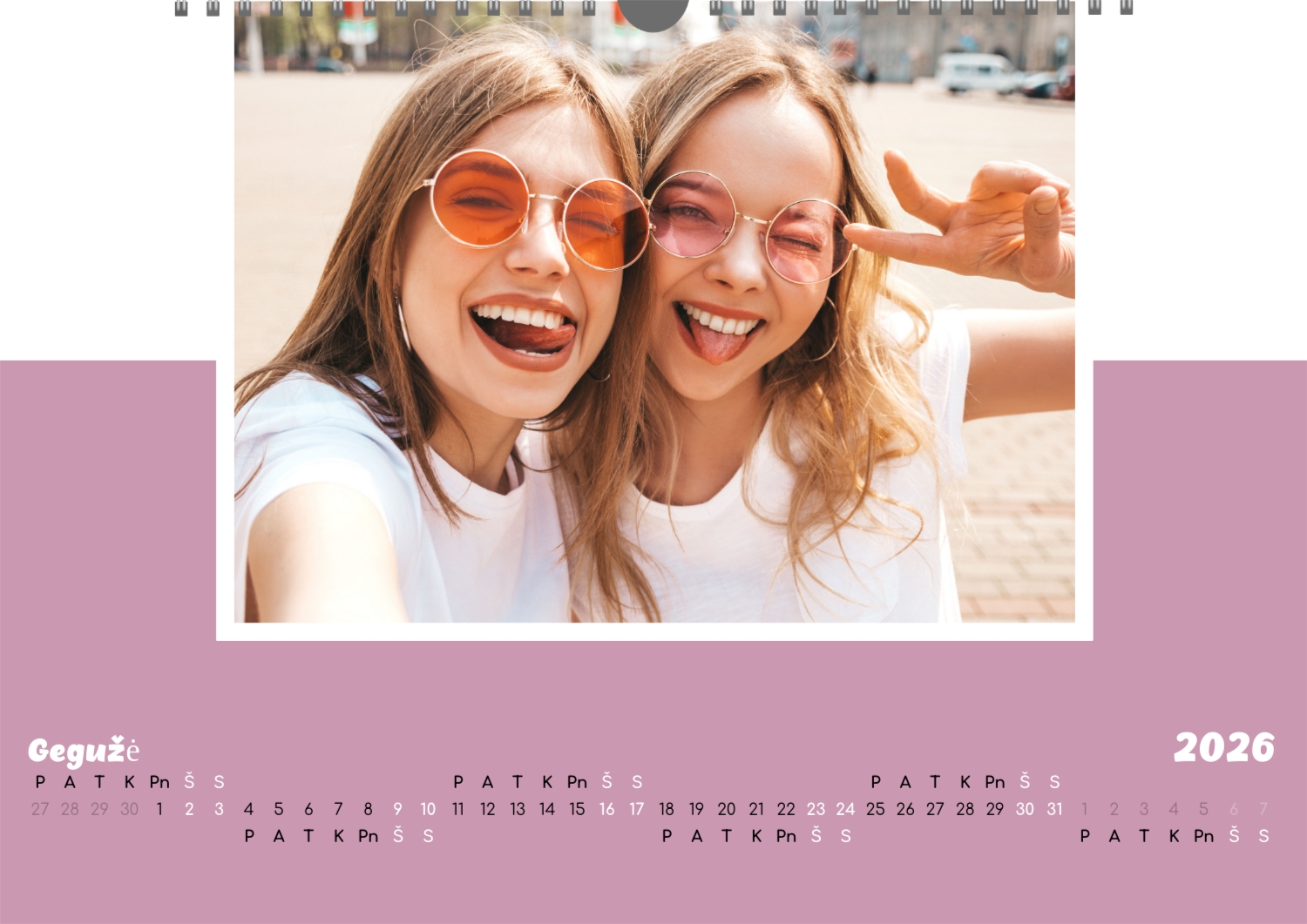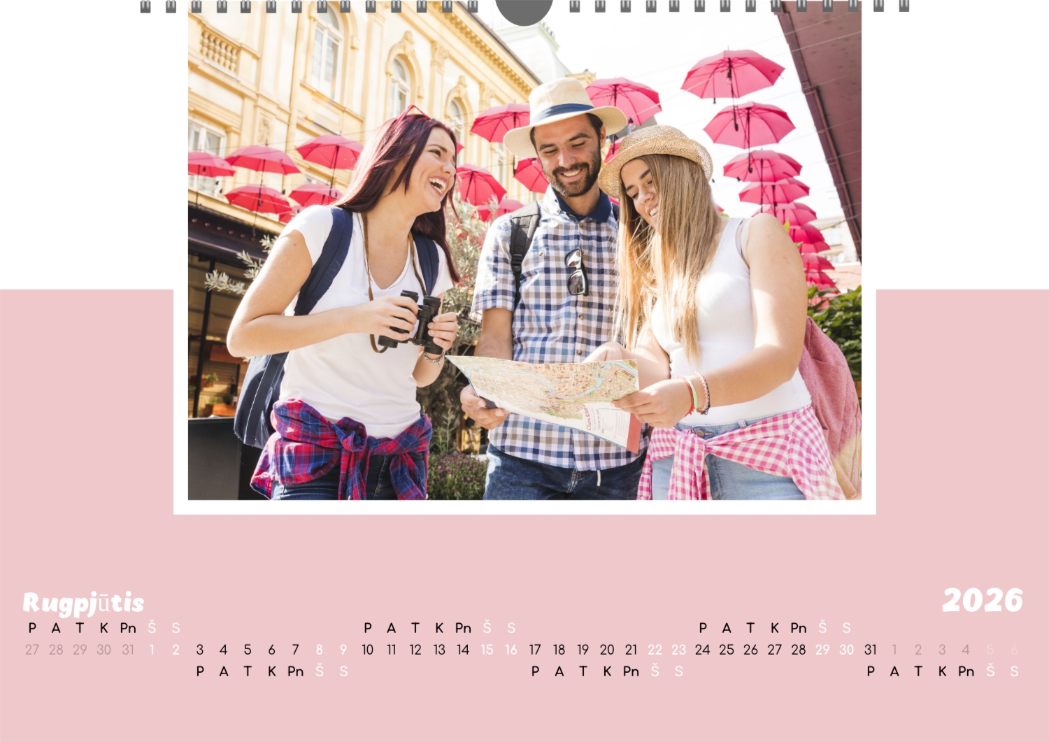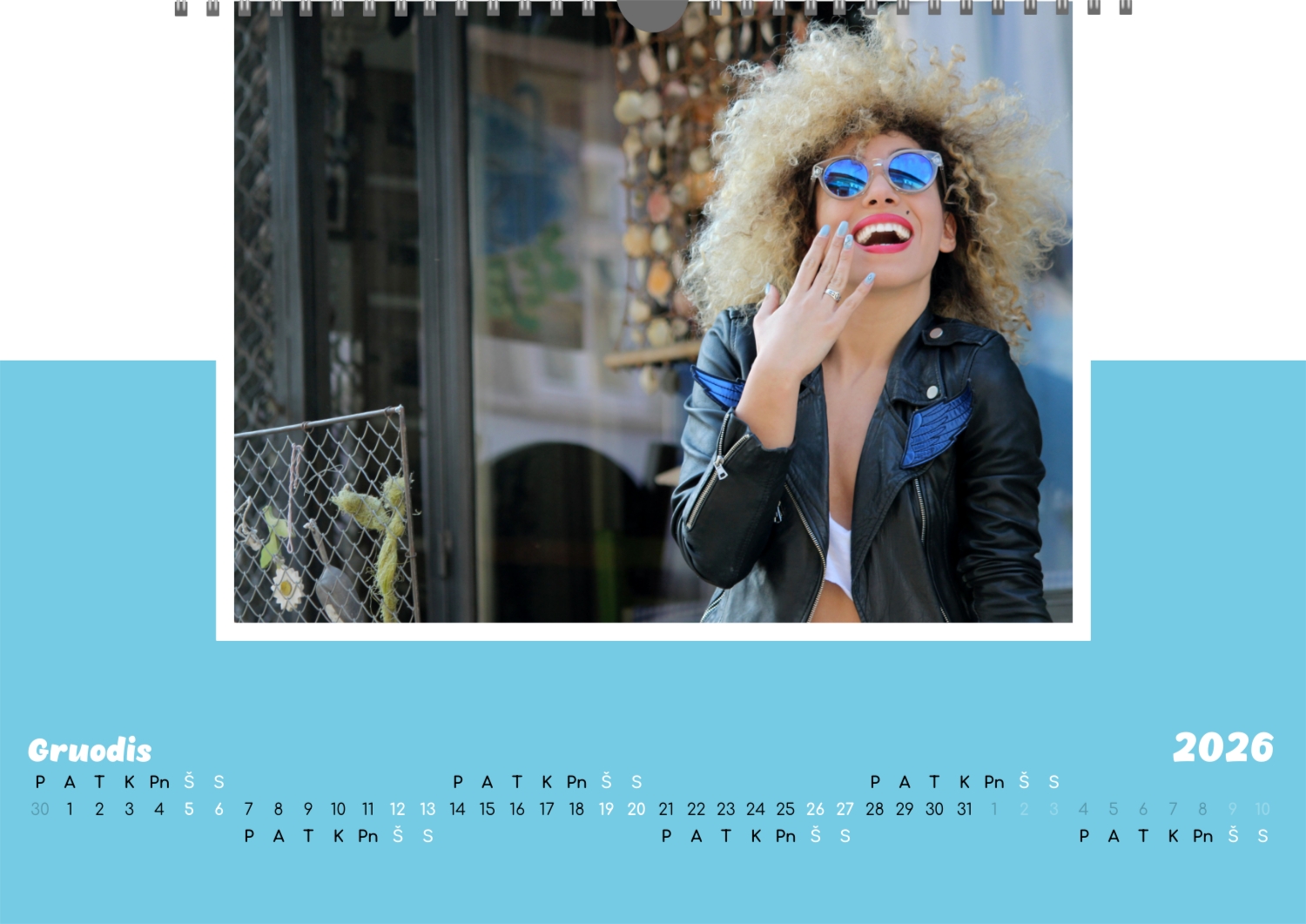Gatavas horizontalaus kalendoriaus šablonas su nurodymu kitiems metams sukurtas tiems, kurie vertina įkvepiantį vizualinį stilių ir nori kasdien gauti šiek tiek priminimo apie tikslą, motyvaciją ar svarbų gyvenimo orientyrą. Mūsų internetiniame dizaineryje šablonas lengvai prisitaiko prie savo stiliaus ir užduočių. Galite pakeisti nurodymą, pakeisdami jį fraze, artima jums ar jūsų komandai; pakoreguokite spalvų schemą pagal firminius atspalvius; pakeiskite šriftus, pakoreguokite fono sodrumą arba pridėkite papildomų dekoratyvinių elementų. Jei kalendorius skirtas naudoti įmonėms, patogu pridėti įmonės logotipą, svetainę, kontaktus ar net įmonės vidines vertybes, kad kalendorius taptų vizualinės tapatybės dalimi. Asmeniniam naudojimui galite įkelti nuotraukas, pasirinkti mėgstamas spalvas ir sukurti kalendorių šiltu, įkvepiančiu ar minimalistiniu būdu. Redagavimas vyksta tiesiai naršyklėje ir nereikalauja sudėtingų dizaino įgūdžių: visus elementus galima vilkti, keisti jų dydį, pasukti, ištrinti ar papildyti. Rezultatas yra visiškai unikalus sienų kalendorius, sukurtas savo rankomis, kuris ne tik papuošia erdvę, bet ir tampa minkštu, bet pasitikinčiu priminimu apie pasirinktą kryptį vieneriems metams į priekį.
