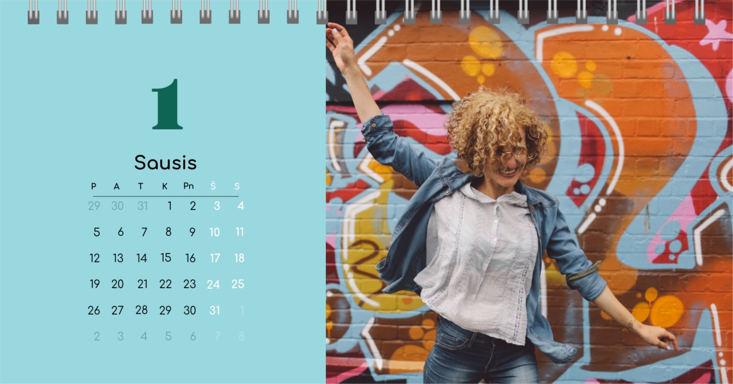 Paruoštas stalinio kalendoriaus šablonas su nurodymu kitiems metams sukurtas tiems, kurie vertina įkvepiantį vizualinį stilių ir nori kasdien gauti šiek tiek priminimo apie tikslą, motyvaciją ar svarbų gyvenimo orientyrą. Šis kalendorius tinka beveik bet kuriai sričiai: jis gali būti dedamas į biurą, kūrybinę studiją, mokymo klasę, grožio saloną, psichologo kabinetą, namų darbo erdvę arba suteikti klientams, kolegoms ir partneriams kaip nedidelį dėmesio ženklą. Mokymo, dizaino, rinkodaros, konsultavimo, pardavimo ar žmogiškųjų išteklių specialistams tai bus ypač vertinga, nes ji padeda išlaikyti dėmesį ir nustato emocinę nuotaiką kiekvienai Naujųjų metų dienai. Mūsų internetiniame dizaineryje šablonas lengvai prisitaiko prie savo stiliaus ir užduočių. Galite pakeisti nurodymą, pakeisdami jį fraze, artima jums ar jūsų komandai; pakoreguokite spalvų schemą pagal firminius atspalvius; pakeiskite šriftus, pakoreguokite fono sodrumą arba pridėkite papildomų dekoratyvinių elementų. Jei kalendorius skirtas naudoti įmonėms, patogu pridėti įmonės logotipą, svetainę, kontaktus ar net įmonės vidines vertybes, kad kalendorius taptų vizualinės tapatybės dalimi. Asmeniniam naudojimui galite įkelti nuotraukas, pasirinkti mėgstamas spalvas ir sukurti kalendorių šiltu, įkvepiančiu ar minimalistiniu būdu. Redagavimas vyksta tiesiai naršyklėje ir nereikalauja sudėtingų dizaino įgūdžių: visus elementus galima vilkti, keisti jų dydį, pasukti, ištrinti ar papildyti. Rezultatas yra visiškai unikalus Stalinis kalendorius, sukurtas savo rankomis, kuris ne tik papuoš erdvę, bet ir taps minkštu, bet pasitikinčiu priminimu apie pasirinktą kryptį vieneriems metams į priekį.