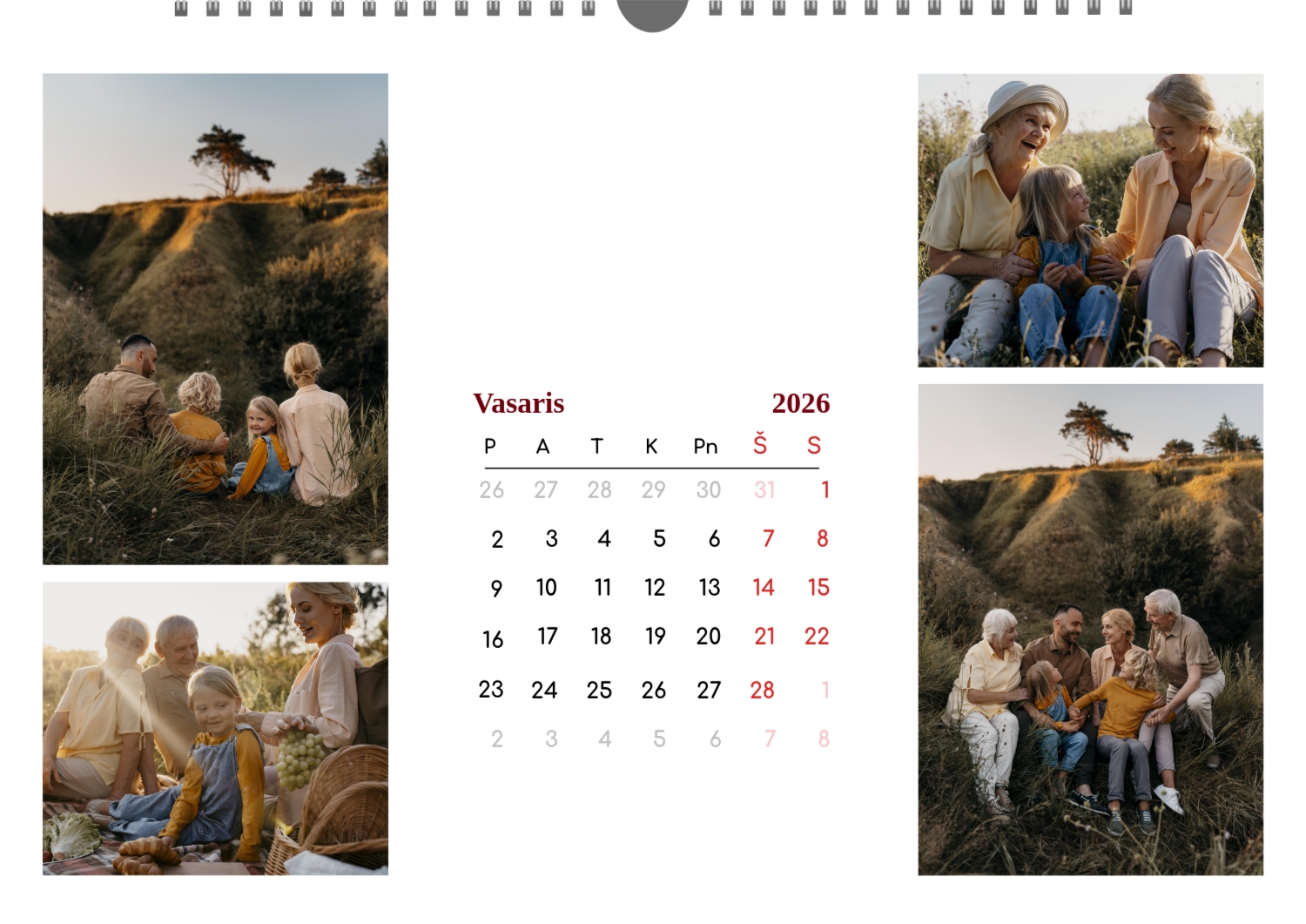 Gatavas horizontalaus persidengiančio kalendoriaus šablonas su sveikinimais yra pagamintas minimalistiniu ir šiuolaikišku stiliumi, kur kiekvieną mėnesį vartotojas sutinka trumpą pasveikinimą. Šis metodas daro kalendorių ne tik planavimo įrankiu, bet ir stilingu interjero elementu. Jis gali tikti dizaineriams, rinkodaros specialistams, fotografams, kūrybiniams specialistams, dėstytojams, laisvai samdomiems vertėjams, mažų studijų ar salonų savininkams, taip pat visiems, kurie vertina estetiką ir tvarkingą vizualinę darbo vietos organizavimą. Internetiniame dizaineryje šis šablonas gali būti lengvai pritaikytas asmeninėms ar verslo užduotims. Yra galimybė pakeisti foną, pasirinkti kitus šriftų derinius, pakeisti sveikinimo frazes arba palikti jas originalioje formoje, koreguoti spalvų schemą, Pridėti nuotraukas, iliustracijas ar firminę grafiką. Jei reikia, galite įterpti įmonės logotipą, kontaktinius duomenis ar motyvacines citatas, kad kalendorius taptų verslo stiliaus dalimi arba asmeniniu kūrybiniu įkvėpimo objektu. Redagavimas vyksta tiesiogiai naršyklėje, nereikia įdiegti papildomų programų. Visi elementai gali būti perkeliami, išplečiami ir konfigūruojami taip, kad kalendorius atrodytų harmoningas ir atspindėtų vartotojo ar prekės ženklo pobūdį. Rezultatas yra visiškai individualus horizontalus platus kalendorius, sukurtas savo rankomis, remiantis apgalvotu modeliu, kuris tuo pačiu metu išlieka patogus, funkcionalus ir vizualiai patrauklus.