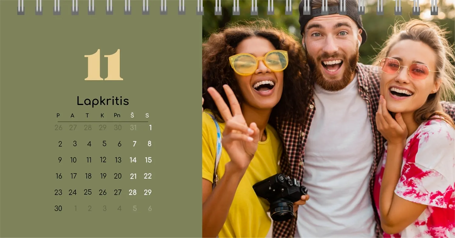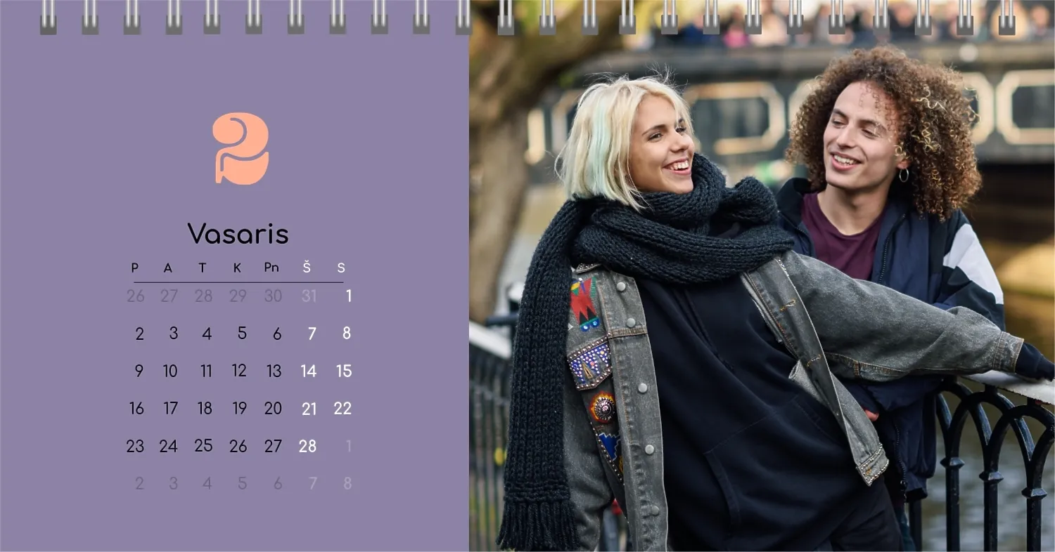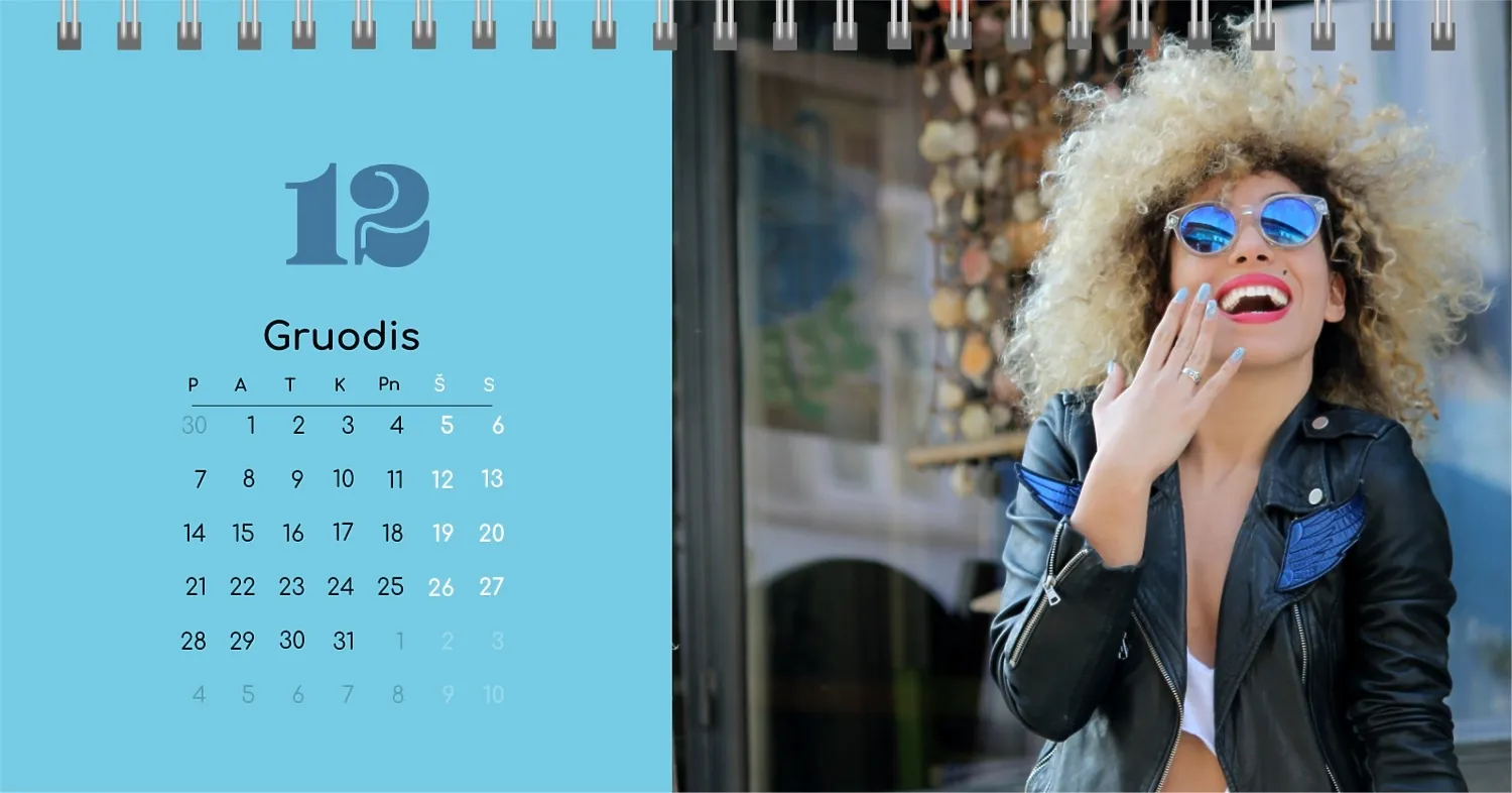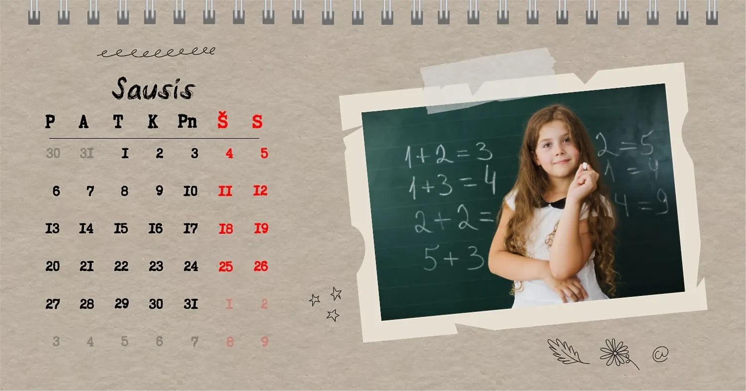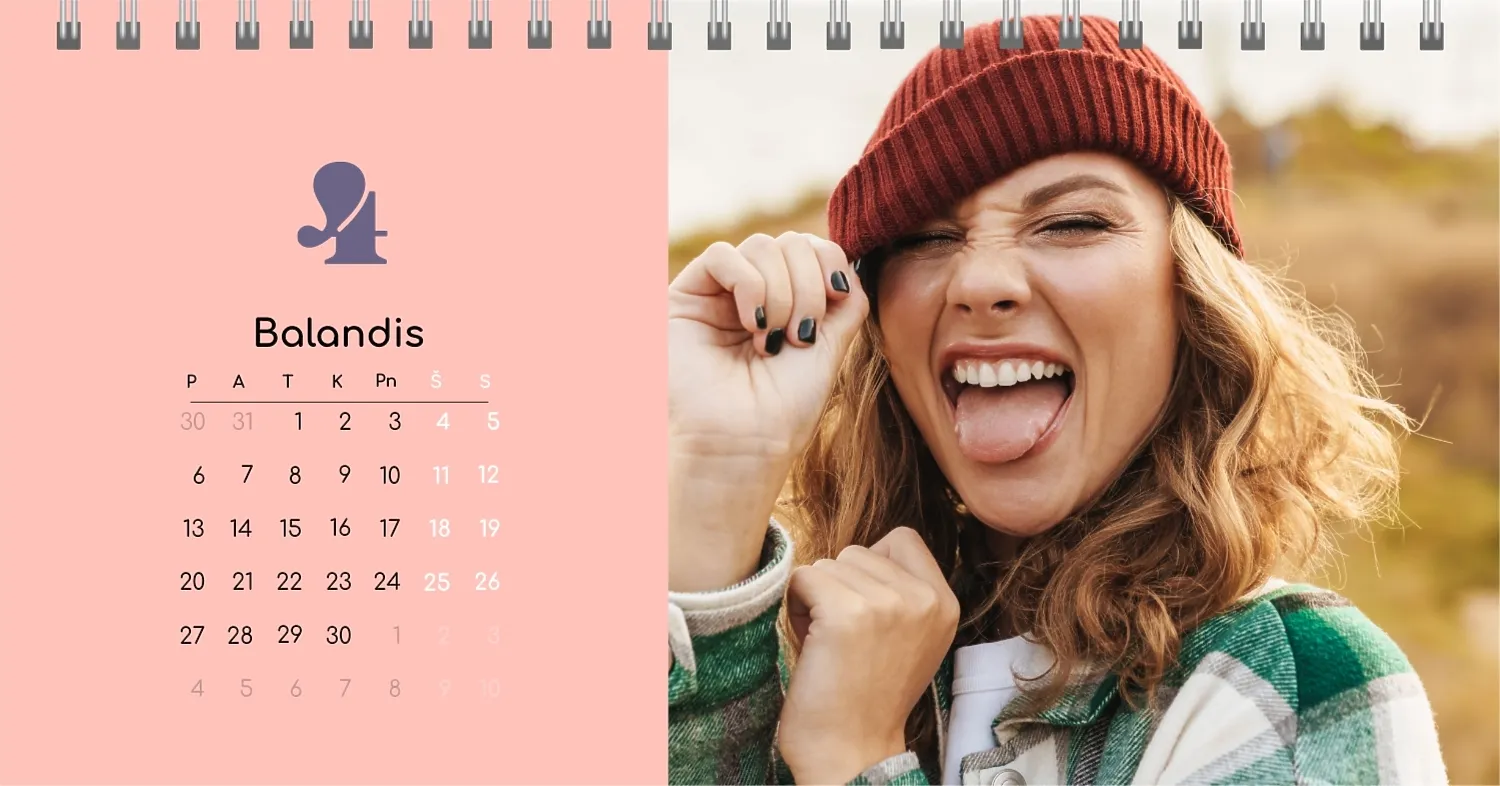 Paruoštas stalinio kalendoriaus šablonas su nurodymu kitiems metams sukurtas tiems, kurie vertina įkvepiantį vizualinį stilių ir nori kasdien gauti šiek tiek priminimo apie tikslą, motyvaciją ar svarbų gyvenimo orientyrą. Šis kalendorius tinka beveik bet kuriai sričiai: jis gali būti dedamas į biurą, kūrybinę studiją, mokymo klasę, grožio saloną, psichologo kabinetą, namų darbo erdvę arba suteikti klientams, kolegoms ir partneriams kaip nedidelį dėmesio ženklą. Mokymo, dizaino, rinkodaros, konsultavimo, pardavimo ar žmogiškųjų išteklių specialistams tai bus ypač vertinga, nes ji padeda išlaikyti dėmesį ir nustato emocinę nuotaiką kiekvienai Naujųjų metų dienai. Mūsų internetiniame dizaineryje šablonas lengvai prisitaiko prie savo stiliaus ir užduočių. Galite pakeisti nurodymą, pakeisdami jį fraze, artima jums ar jūsų komandai; pakoreguokite spalvų schemą pagal firminius atspalvius; pakeiskite šriftus, pakoreguokite fono sodrumą arba pridėkite papildomų dekoratyvinių elementų. Jei kalendorius skirtas naudoti įmonėms, patogu pridėti įmonės logotipą, svetainę, kontaktus ar net įmonės vidines vertybes, kad kalendorius taptų vizualinės tapatybės dalimi. Asmeniniam naudojimui galite įkelti nuotraukas, pasirinkti mėgstamas spalvas ir sukurti kalendorių šiltu, įkvepiančiu ar minimalistiniu būdu. Redagavimas vyksta tiesiai naršyklėje ir nereikalauja sudėtingų dizaino įgūdžių: visus elementus galima vilkti, keisti jų dydį, pasukti, ištrinti ar papildyti. Rezultatas yra visiškai unikalus Stalinis kalendorius, sukurtas savo rankomis, kuris ne tik papuoš erdvę, bet ir taps minkštu, bet pasitikinčiu priminimu apie pasirinktą kryptį vieneriems metams į priekį.