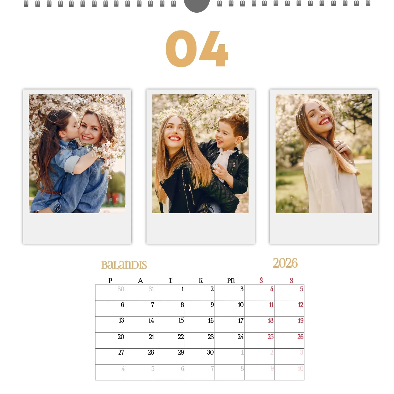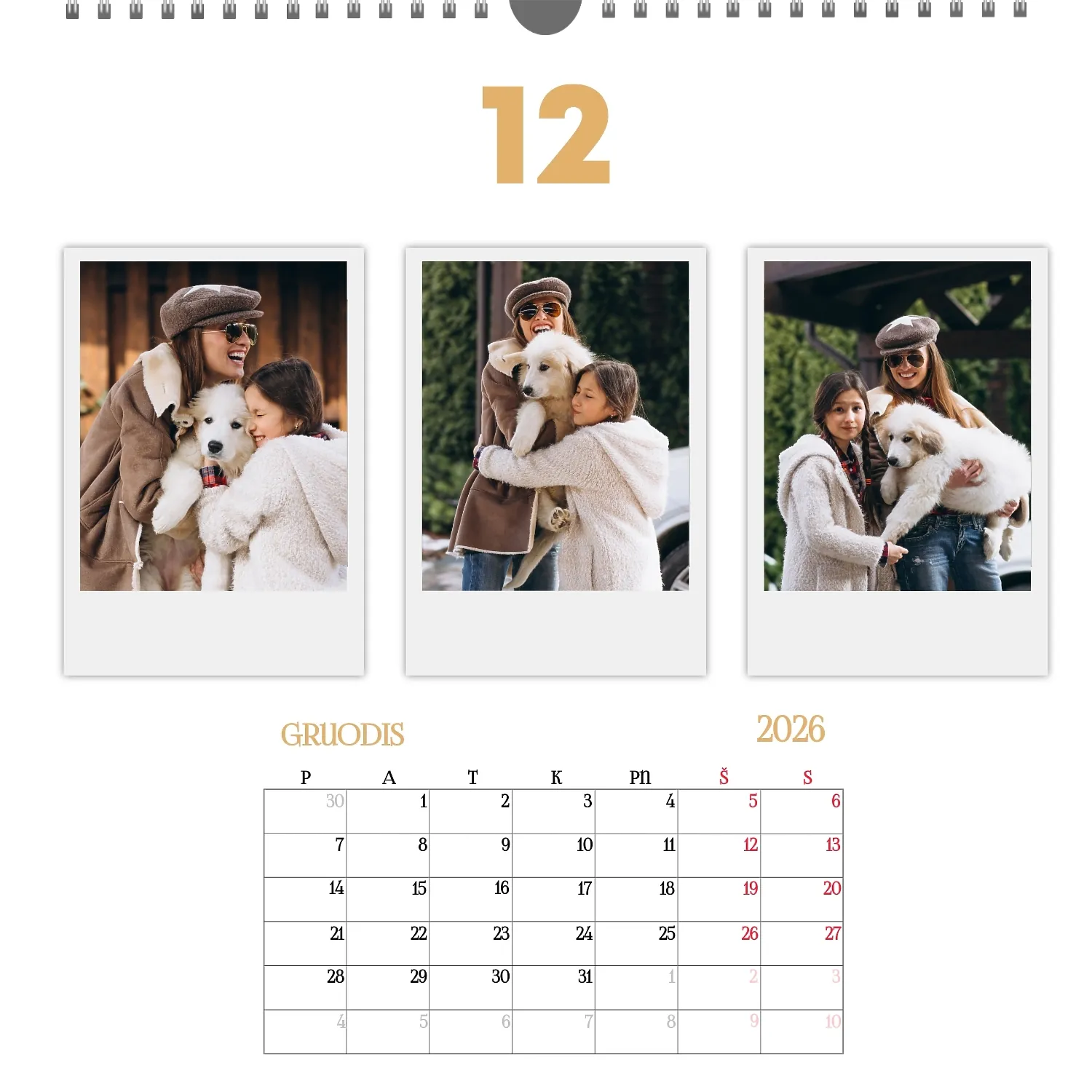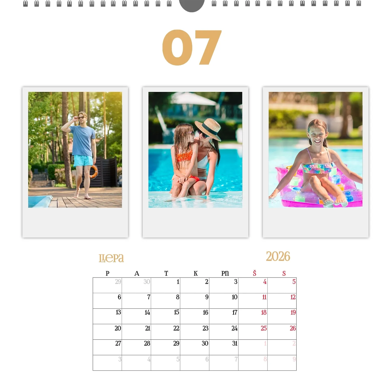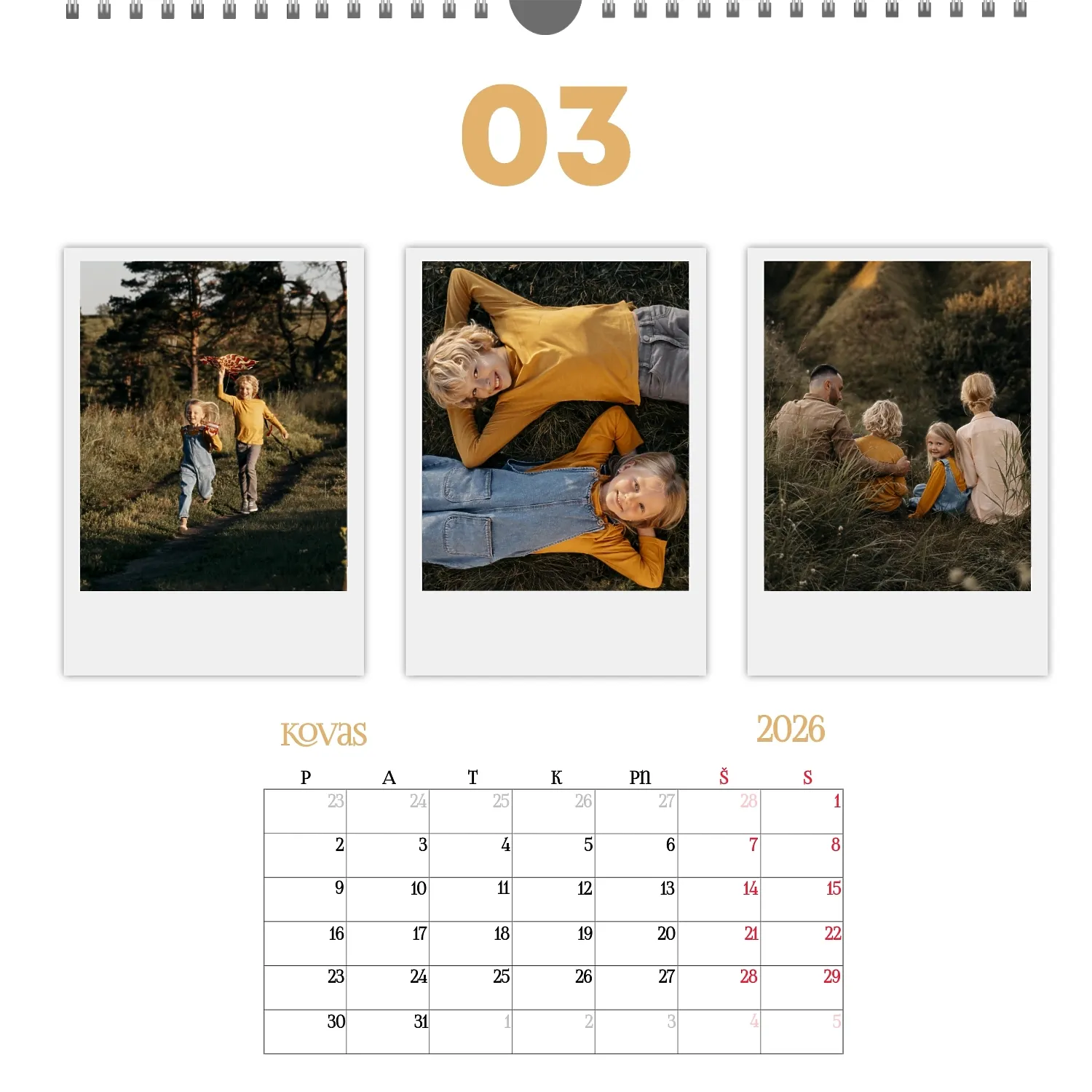 Šeimos nuotraukų kalendorius yra ne tik praktiškas planavimo įrankis, bet ir šiltas priminimas apie artimiausius žmones. Jau paruoštas šablonas leidžia lengvai sukurti unikalų sieninį kvadratinį kalendorių, kuris jus džiugins ištisus metus. Šis šablonas Idealiai tinka šeimoms, norinčioms išsaugoti prisiminimus, taip pat profesionalams, kurie vertina individualumą ir nori pridėti asmeninį dėmesį į savo projektus. Kalendorius su šeimos nuotraukomis gali būti naudojamas įvairiose srityse. Tai bus puikus sprendimas pedagogams ir pedagogams, kurie kuria individualizuotas dovanas tėvams. Fotografai gali pasiūlyti klientams originalų būdą išsaugoti šeimos fotografijas. Tai taip pat bus naudinga dizaineriams ir rinkodaros specialistams, dirbantiems su asmeniniais produktais dovanoms ar akcijoms. Mūsų internetiniame dizaineryje galite pridėti savo nuotraukas, keisti elementų vietą, pasirinkti šriftų stilių ir net pasirinkti spalvų schemą pagal savo skonį. Dizaineris turi patogius įrankius, kad galėtumėte kuo tiksliau pritaikyti kalendorių pagal savo poreikius. Norite palikti daugiau vietos pastaboms ar pabrėžti svarbias datas? Tai lengva padaryti dėl lankstumo nustatymų.