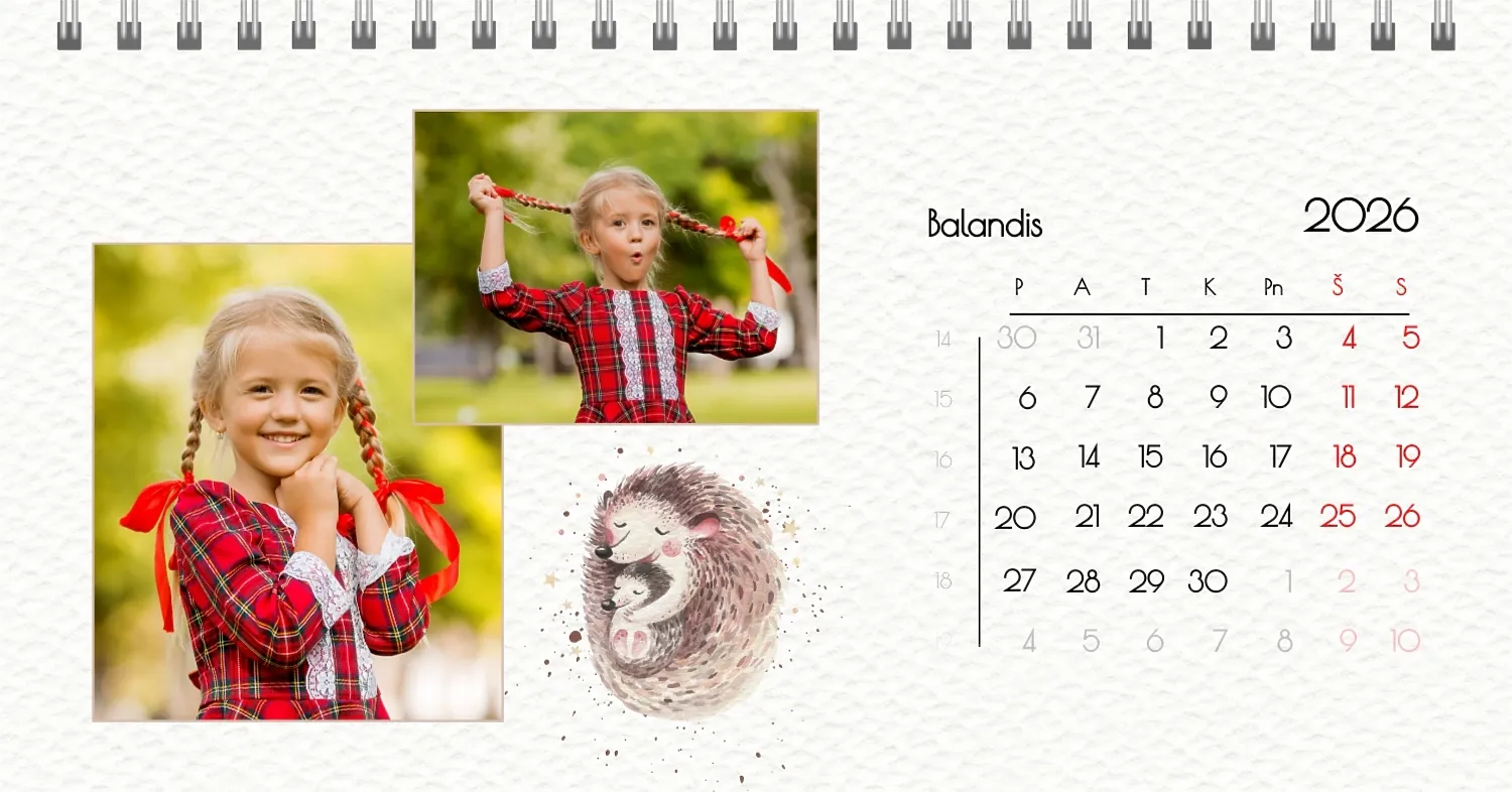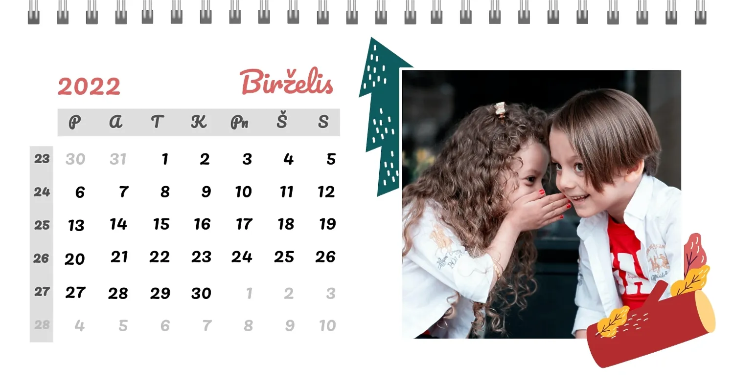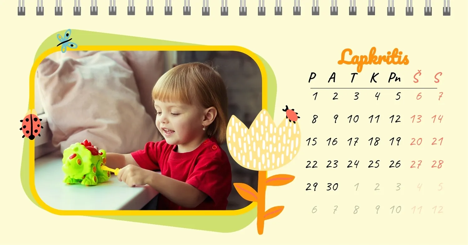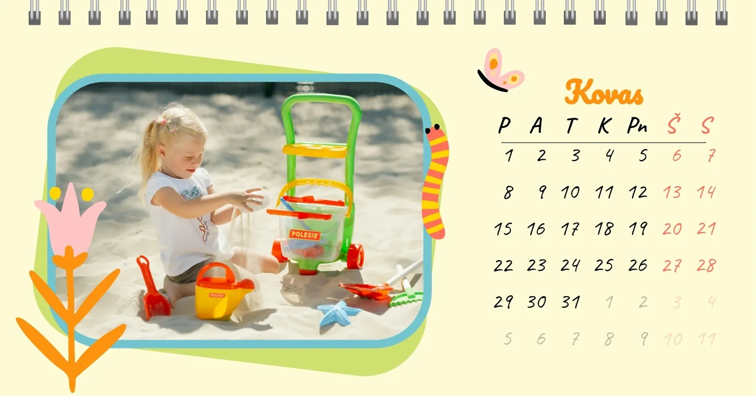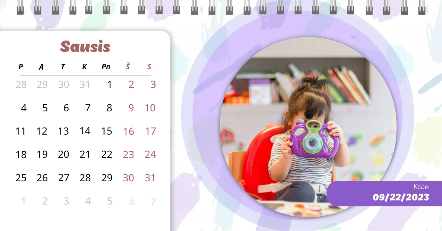 Gatavų šabloną stalinis перекидного kalendorių su nuotrauka vaikams ir keturiems декоративным оформлением sukurtas tiems, kurie vertina šiltas šeimos emocijas ir nori paversti įprastą kalendorių į jaukius asmeninį priedą. Konkurso пастельные pilki, tvarkingas, iliustracijos, vaikų dekoro elementai ir dėmesys nuotraukas daro toks kalendorius yra ypač patraukli tėvų, воспитателей, mokytojai kūrybinės studijos, vaikų fotografai ir visiems, kurie dirba su vaikais ar sukuria jų turinį. Jis tinka šeimos archyvų, vaikų sodų, mokomųjų centrų ir mažų studijos, kurie nori savo klientams pasiūlyti malonus ir emocinis produktas. Mūsų internetiniame dizaineryje šį šabloną lengva paversti savo užduotimis. Jūs galite pakeisti savo nuotraukas, keisti elementus, redaguoti teksto laukelius, pasirinkti kitų šriftai ir spalvos, pridėti ženklelius arba atvirkščiai — nuima nereikalingus, sukurti daugiau минималистичную dainą. Kiekvieną mėnesį galite užsisakyti skirtingai, pridedant svarbias datas, individualios pastabos ar mažus paveikslėlius, kurios pabrėžia charakterį vaiko ar тематику nuotraukos.
