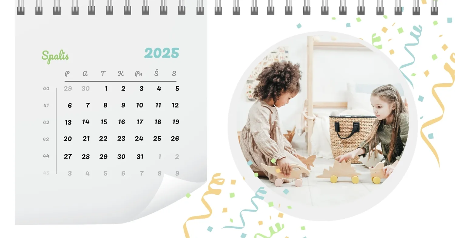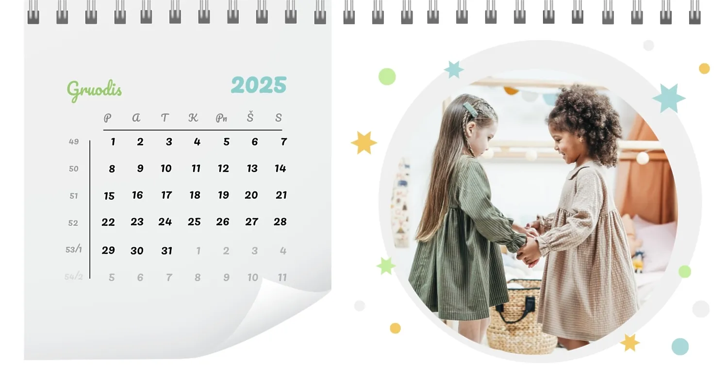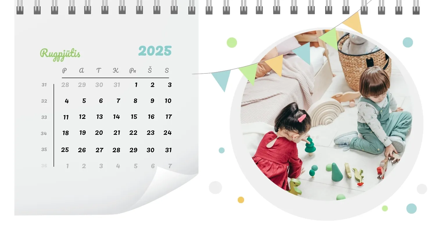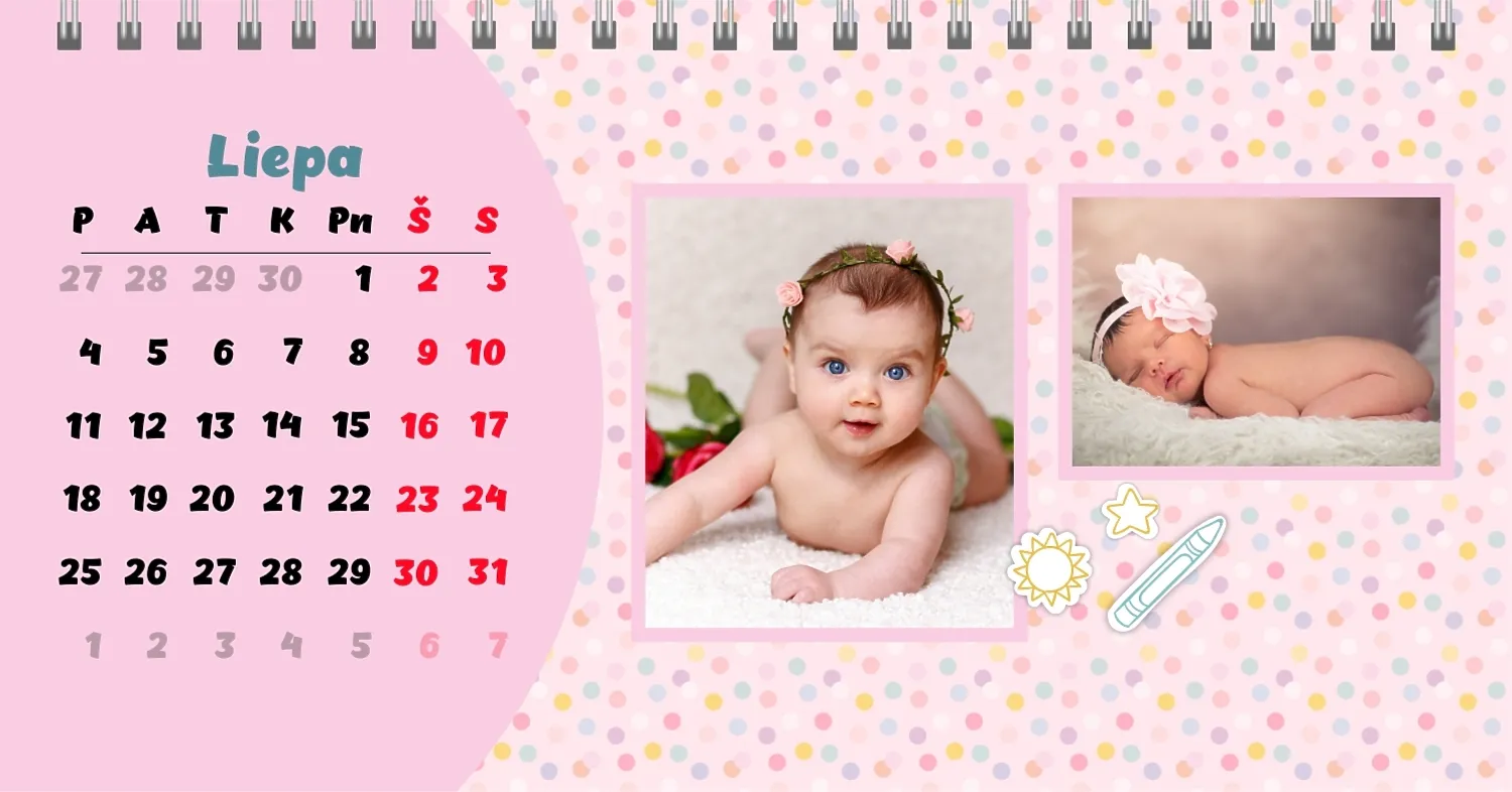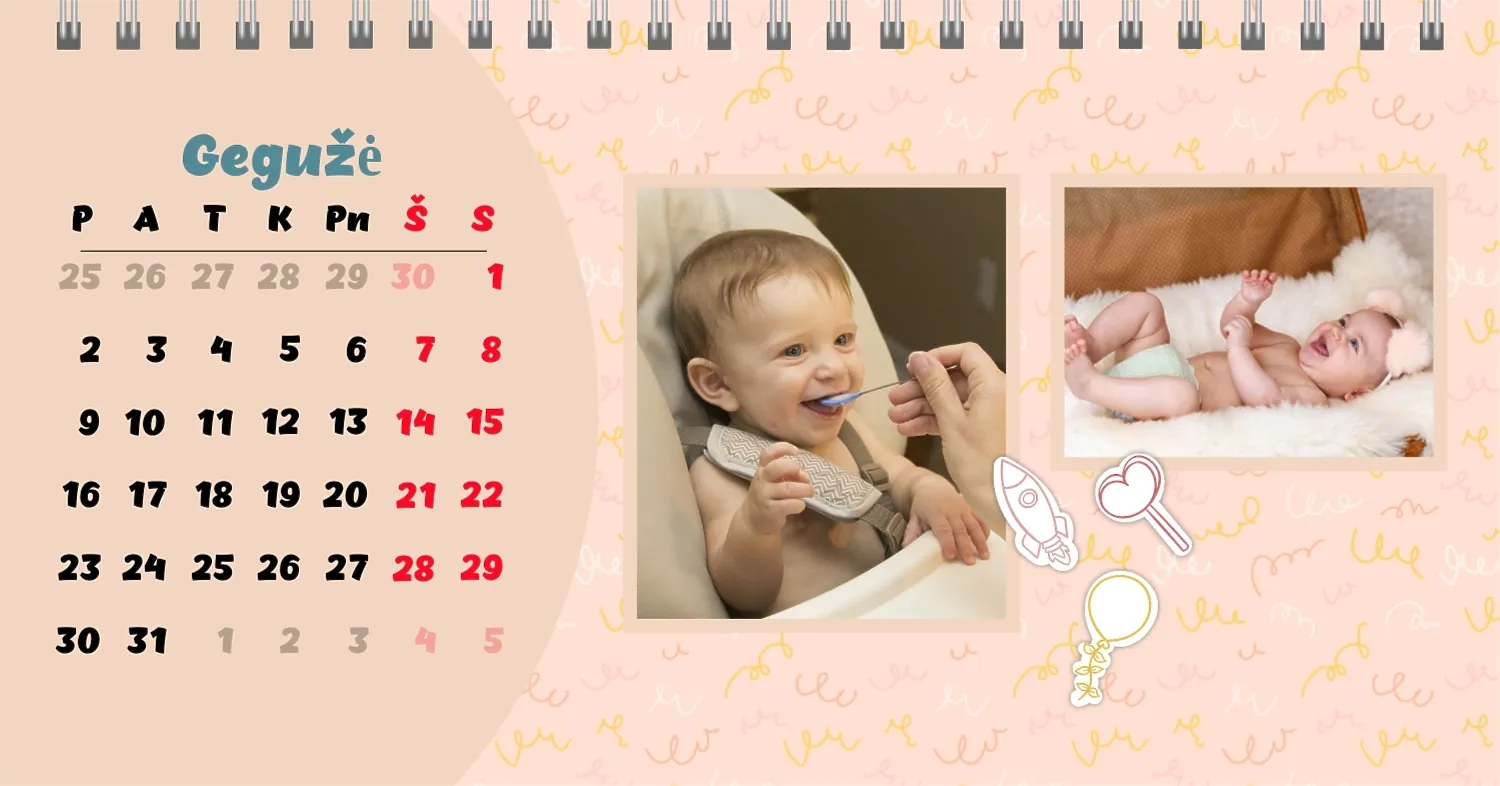 Gatavų šabloną stalinis перекидного kalendorių su nuotrauka vaikams ir keturiems декоративным оформлением sukurtas tiems, kurie vertina šiltas šeimos emocijas ir nori paversti įprastą kalendorių į jaukius asmeninį priedą. Konkurso пастельные pilki, tvarkingas, iliustracijos, vaikų dekoro elementai ir dėmesys nuotraukas daro toks kalendorius yra ypač patraukli tėvų, воспитателей, mokytojai kūrybinės studijos, vaikų fotografai ir visiems, kurie dirba su vaikais ar sukuria jų turinį. Jis tinka šeimos archyvų, vaikų sodų, mokomųjų centrų ir mažų studijos, kurie nori savo klientams pasiūlyti malonus ir emocinis produktas. Mūsų internetiniame dizaineryje šį šabloną lengva paversti savo užduotimis. Jūs galite pakeisti savo nuotraukas, keisti elementus, redaguoti teksto laukelius, pasirinkti kitų šriftai ir spalvos, pridėti ženklelius arba atvirkščiai — nuima nereikalingus, sukurti daugiau минималистичную dainą. Kiekvieną mėnesį galite užsisakyti skirtingai, pridedant svarbias datas, individualios pastabos ar mažus paveikslėlius, kurios pabrėžia charakterį vaiko ar тематику nuotraukos.