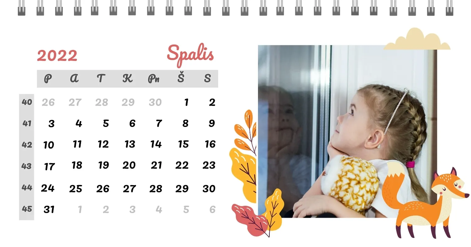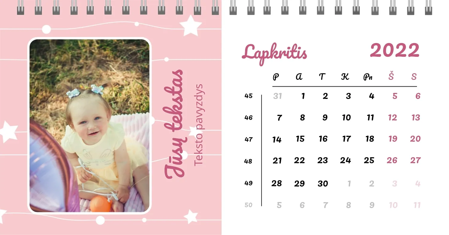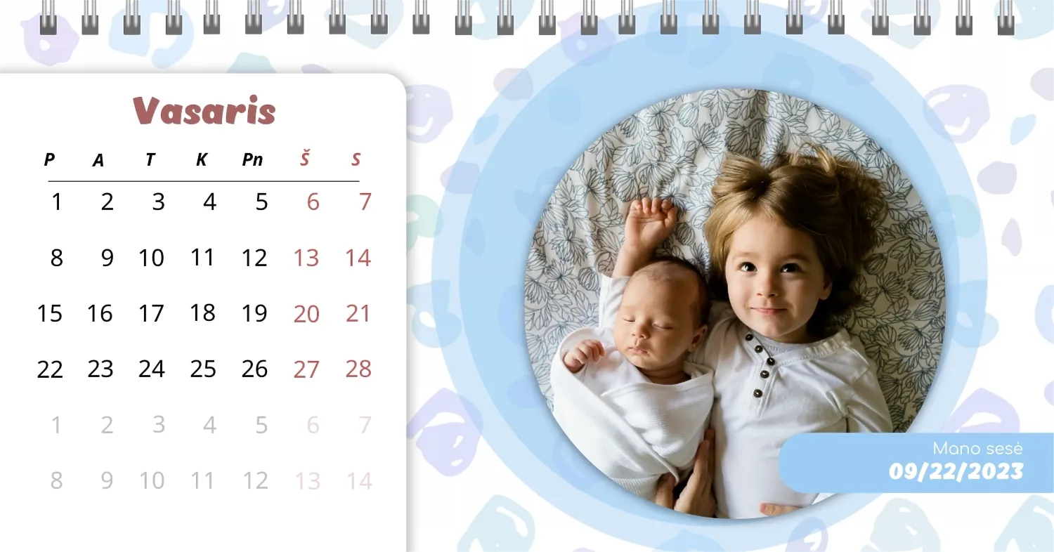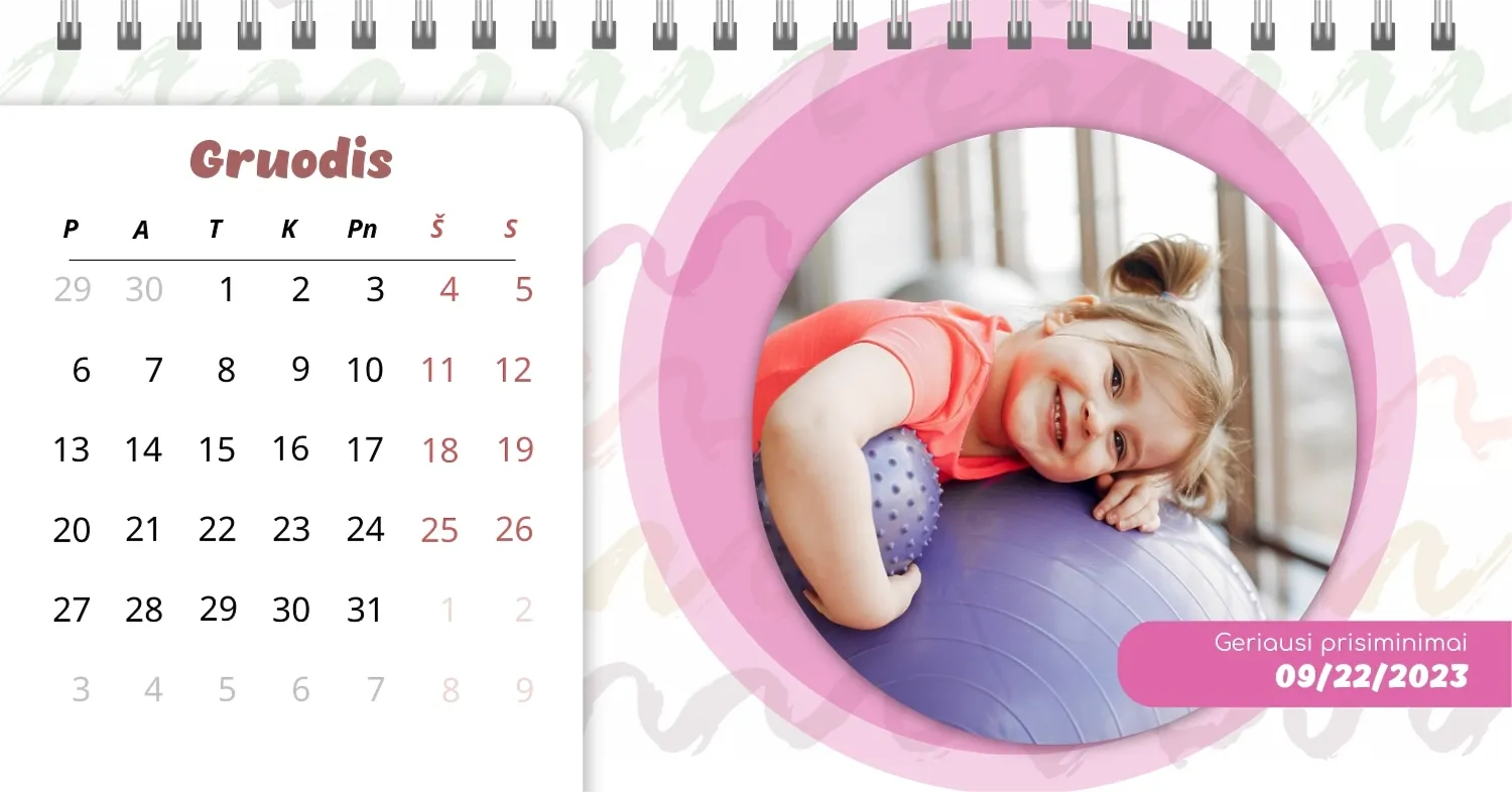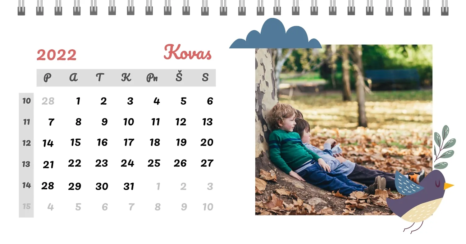 Gatavų šabloną stalinis перекидного kalendorių su nuotrauka vaikams ir keturiems декоративным оформлением sukurtas tiems, kurie vertina šiltas šeimos emocijas ir nori paversti įprastą kalendorių į jaukius asmeninį priedą. Konkurso пастельные pilki, tvarkingas, iliustracijos, vaikų dekoro elementai ir dėmesys nuotraukas daro toks kalendorius yra ypač patraukli tėvų, воспитателей, mokytojai kūrybinės studijos, vaikų fotografai ir visiems, kurie dirba su vaikais ar sukuria jų turinį. Jis tinka šeimos archyvų, vaikų sodų, mokomųjų centrų ir mažų studijos, kurie nori savo klientams pasiūlyti malonus ir emocinis produktas. Mūsų internetiniame dizaineryje šį šabloną lengva paversti savo užduotimis. Jūs galite pakeisti savo nuotraukas, keisti elementus, redaguoti teksto laukelius, pasirinkti kitų šriftai ir spalvos, pridėti ženklelius arba atvirkščiai — nuima nereikalingus, sukurti daugiau минималистичную dainą. Kiekvieną mėnesį galite užsisakyti skirtingai, pridedant svarbias datas, individualios pastabos ar mažus paveikslėlius, kurios pabrėžia charakterį vaiko ar тематику nuotraukos.