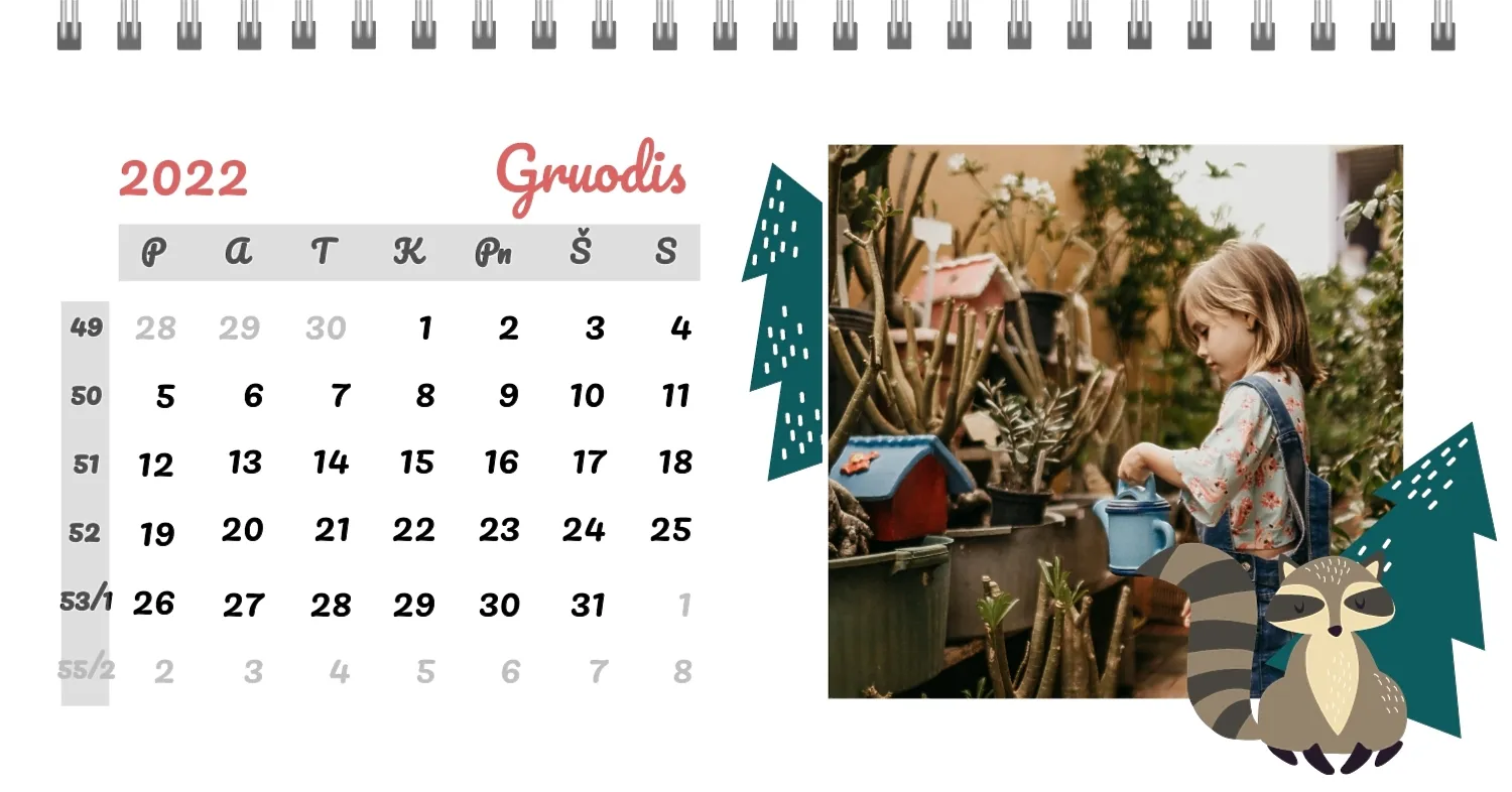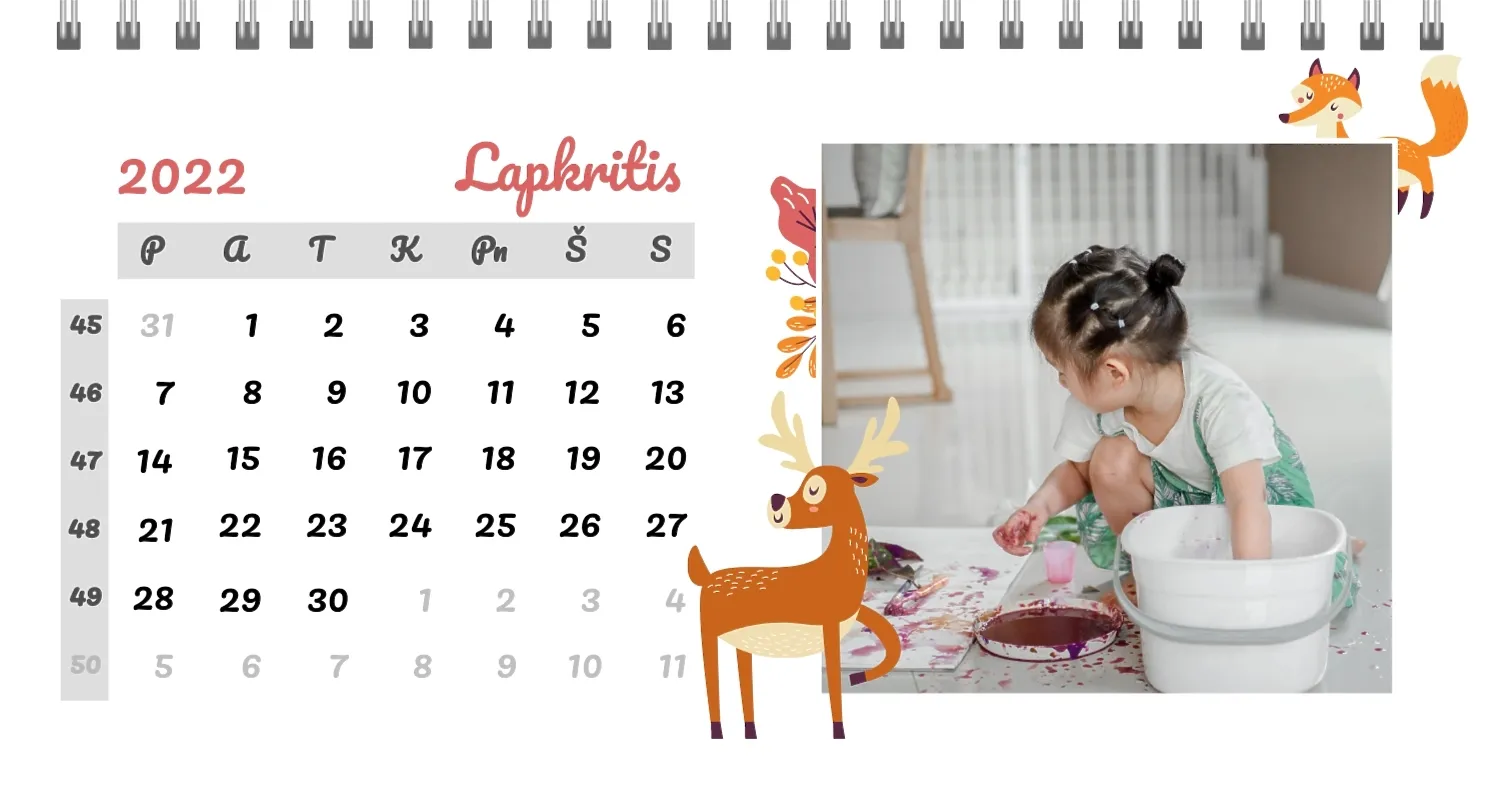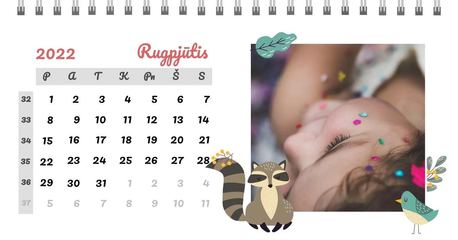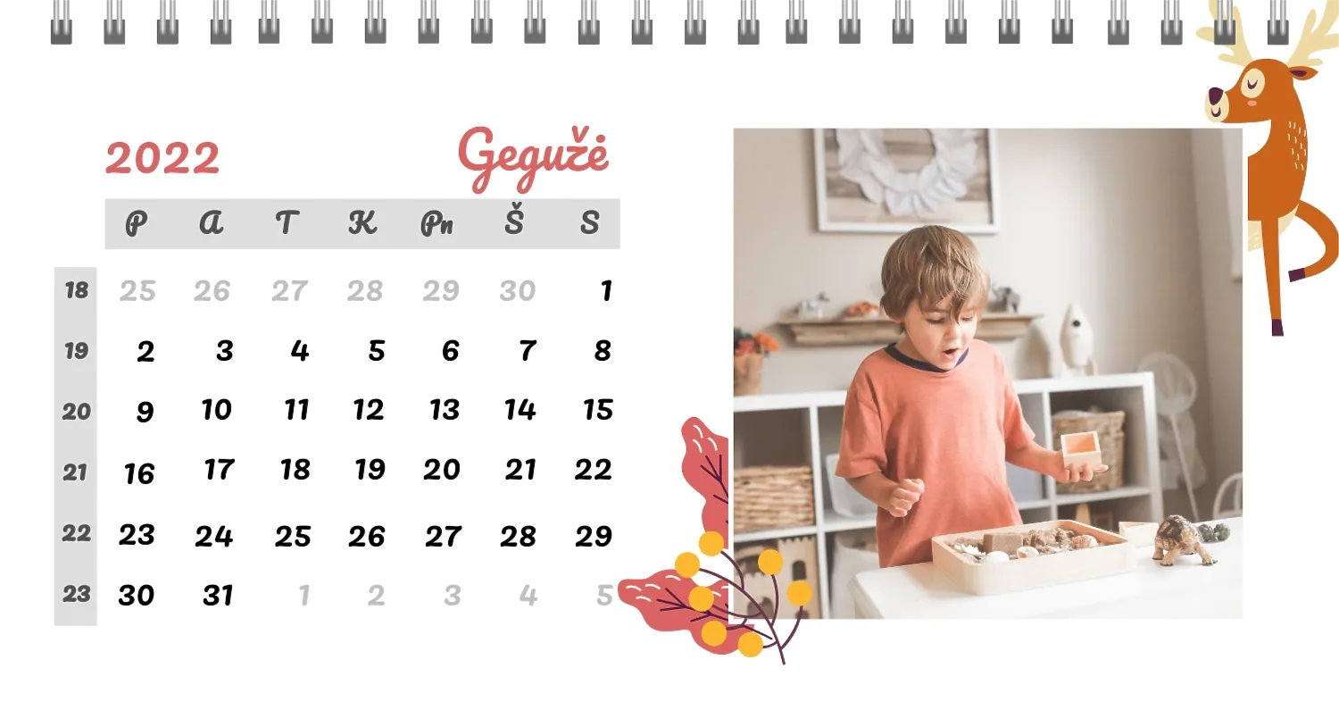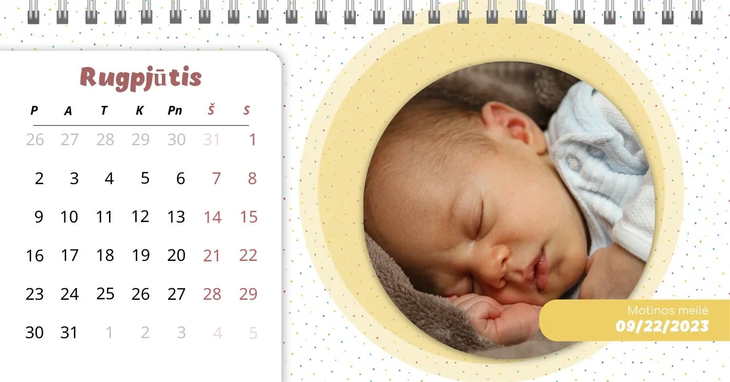 Gatavų šabloną stalinis перекидного kalendorių su nuotrauka vaikams ir keturiems декоративным оформлением sukurtas tiems, kurie vertina šiltas šeimos emocijas ir nori paversti įprastą kalendorių į jaukius asmeninį priedą. Konkurso пастельные pilki, tvarkingas, iliustracijos, vaikų dekoro elementai ir dėmesys nuotraukas daro toks kalendorius yra ypač patraukli tėvų, воспитателей, mokytojai kūrybinės studijos, vaikų fotografai ir visiems, kurie dirba su vaikais ar sukuria jų turinį. Jis tinka šeimos archyvų, vaikų sodų, mokomųjų centrų ir mažų studijos, kurie nori savo klientams pasiūlyti malonus ir emocinis produktas. Mūsų internetiniame dizaineryje šį šabloną lengva paversti savo užduotimis. Jūs galite pakeisti savo nuotraukas, keisti elementus, redaguoti teksto laukelius, pasirinkti kitų šriftai ir spalvos, pridėti ženklelius arba atvirkščiai — nuima nereikalingus, sukurti daugiau минималистичную dainą. Kiekvieną mėnesį galite užsisakyti skirtingai, pridedant svarbias datas, individualios pastabos ar mažus paveikslėlius, kurios pabrėžia charakterį vaiko ar тематику nuotraukos.