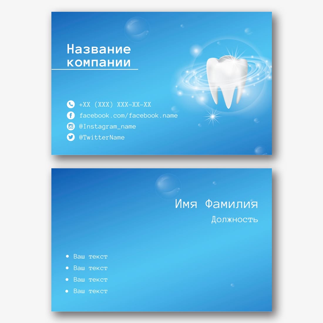 Бесплатный шаблон визитки для стоматологии, стоматологов и дантистов. Создайте макет визитки своими руками в конструкторе визиток.