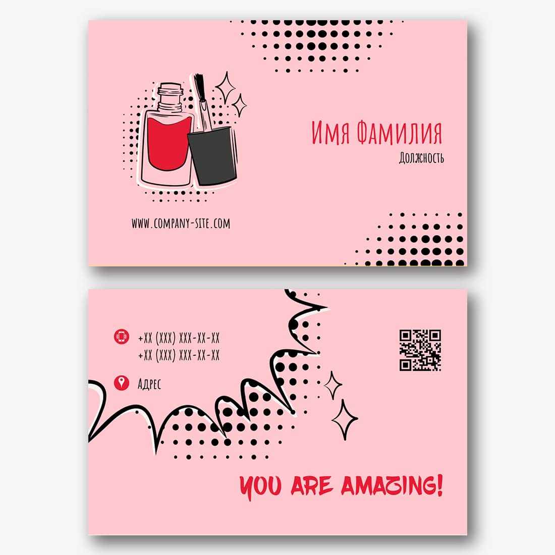 Бесплатный шаблон визитки для салона красоты, визажиста, мастера макияжа. Создайте макет визитки своими руками в конструкторе визиток.