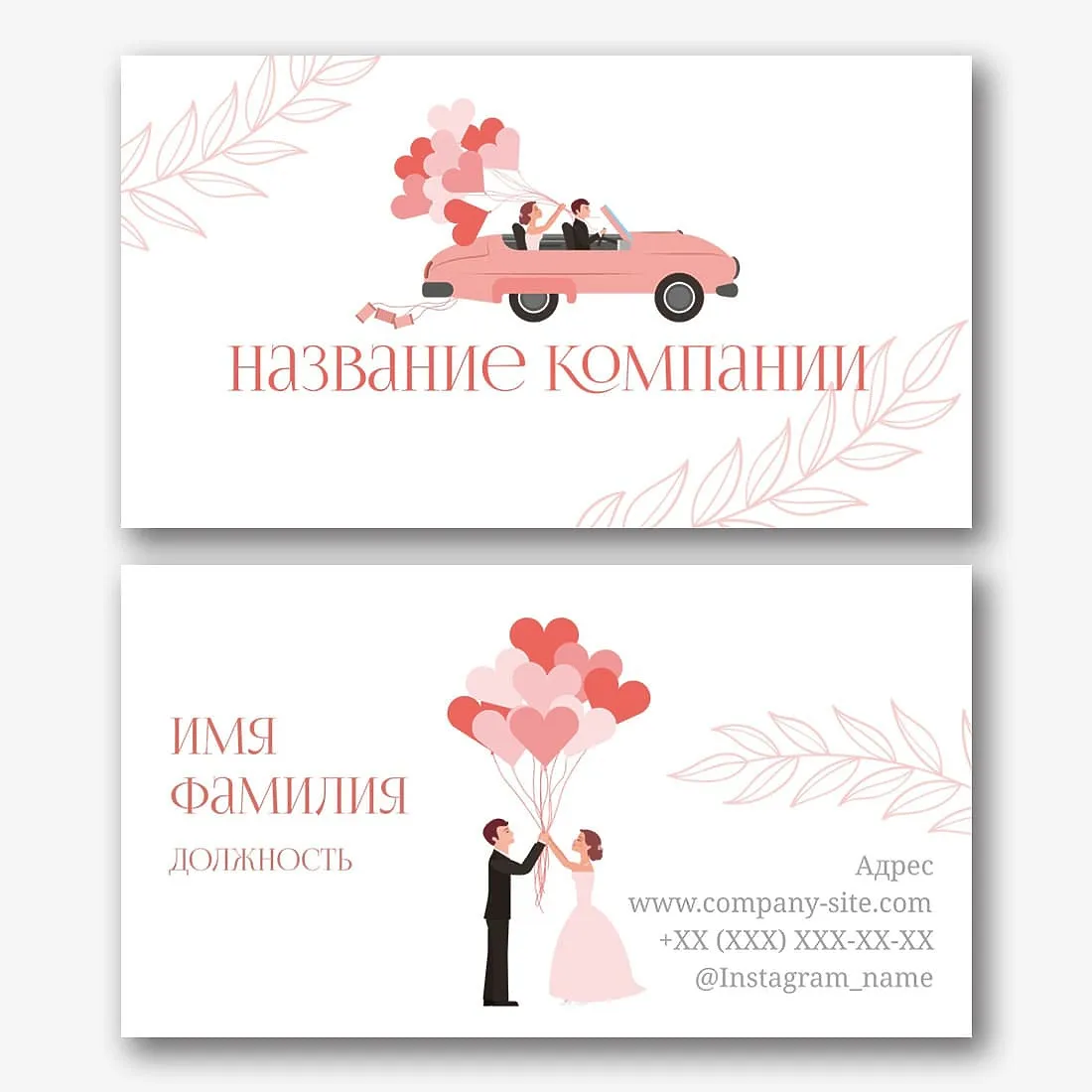 Бесплатный шаблон визитки для свадебного агентства, свадебного организатора и оформителя свадеб. Создайте макет своими руками в конструкторе визиток.