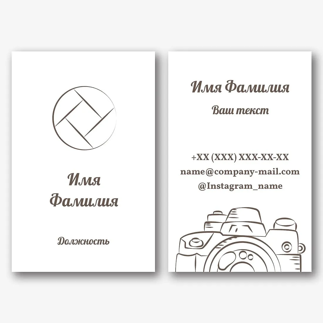 Бесплатный шаблон визитки фотографа, фотомагазина, фотостудий. Создайте макет своими руками в конструкторе визиток.