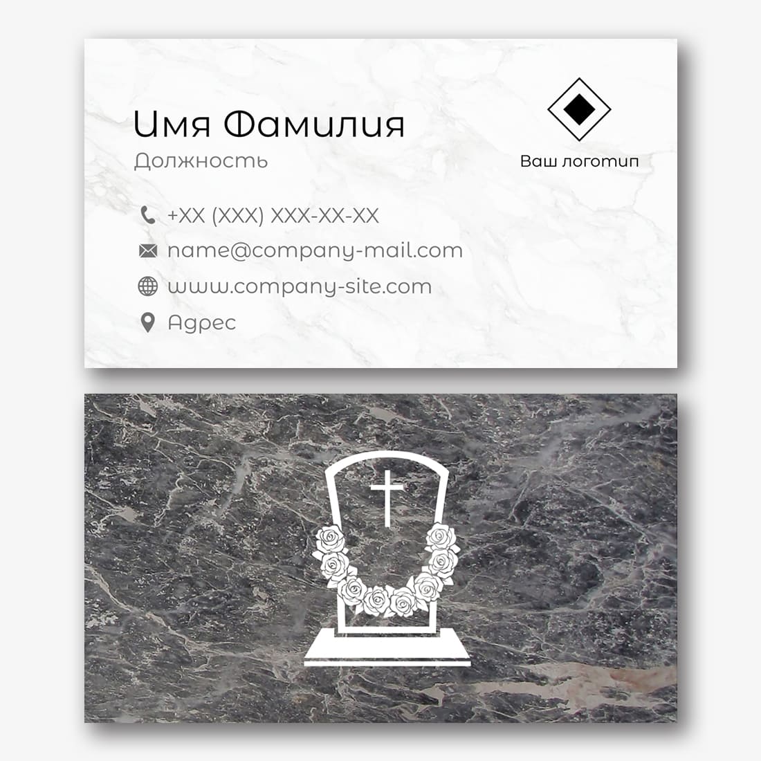 Бесплатный шаблон визитки для ритуальных услуг, изготовителей надгробных памятников, похоронных бюро. Создайте макет своими руками в конструкторе визиток.