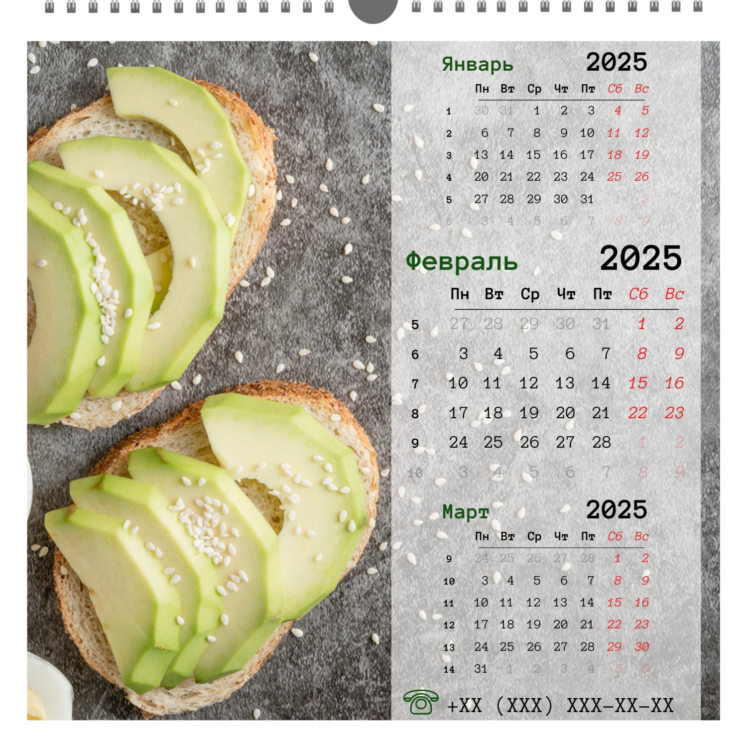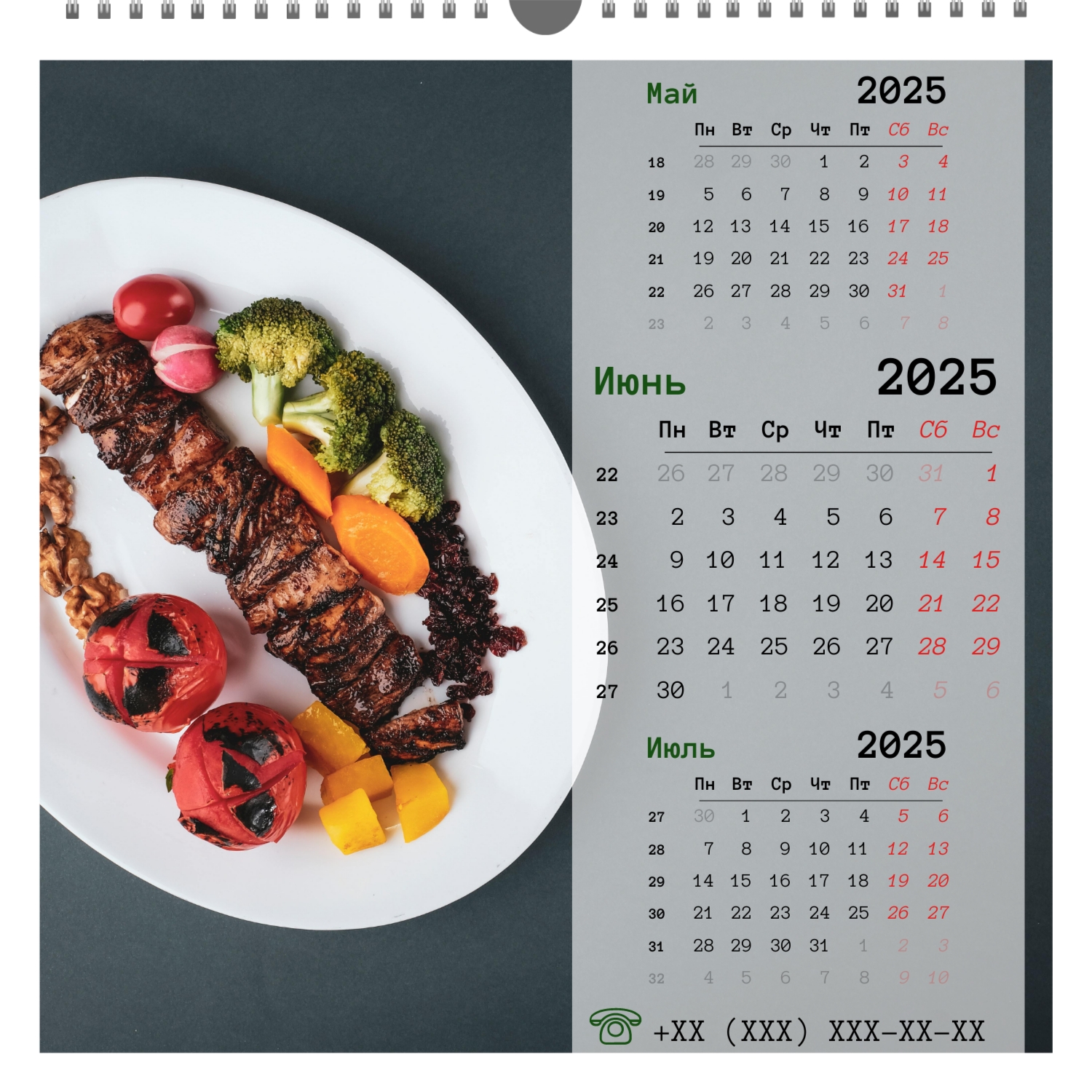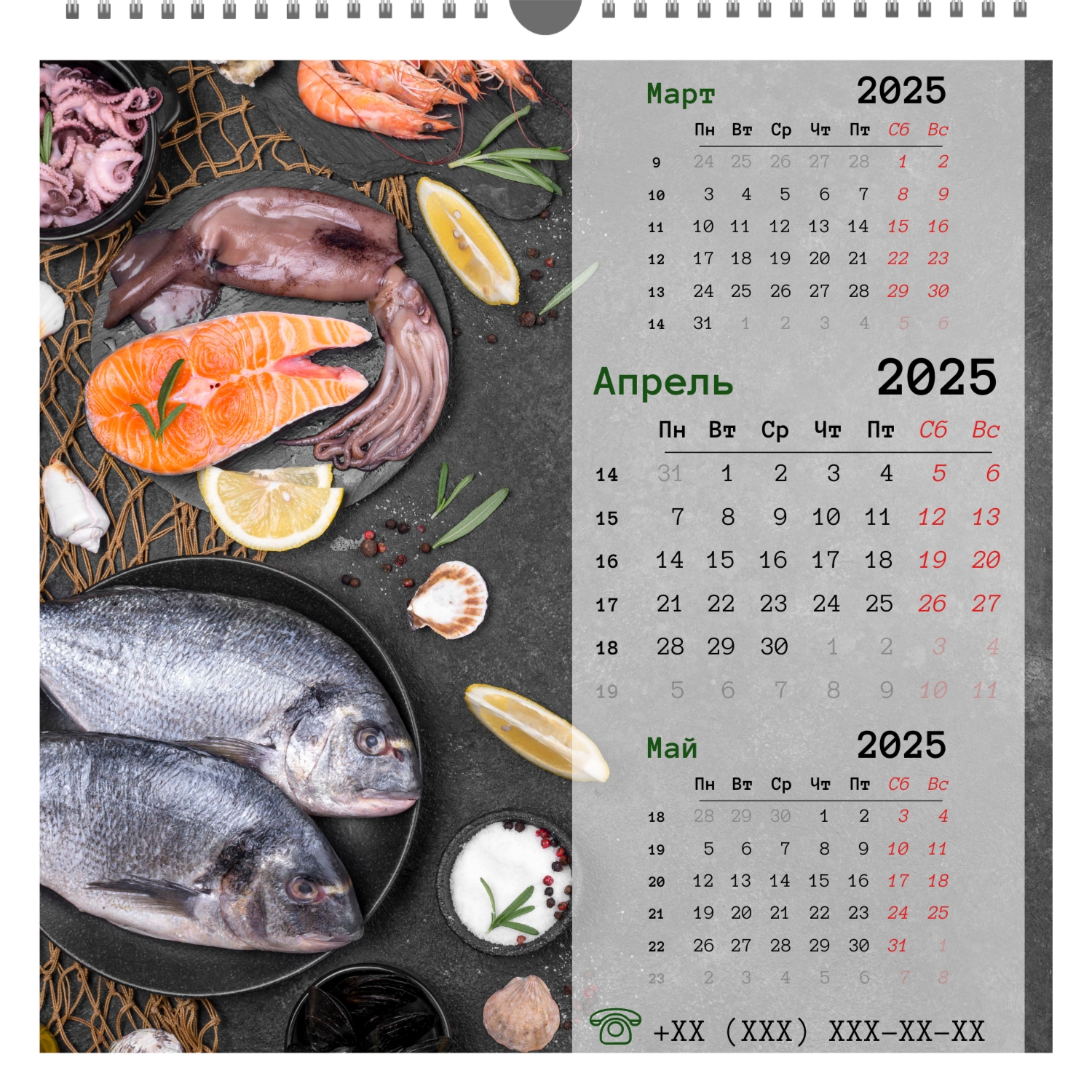 Бесплатный шаблон настенного рекламного календаря для рекламы вашего ресторана суши или суши-бара, с возможностью редактирования его в конструкторе календарей.