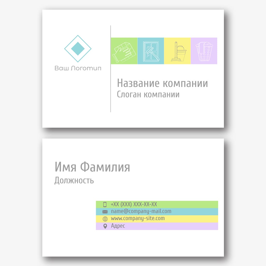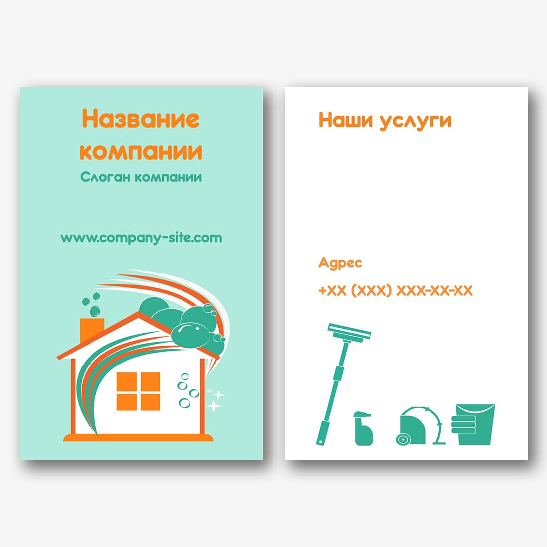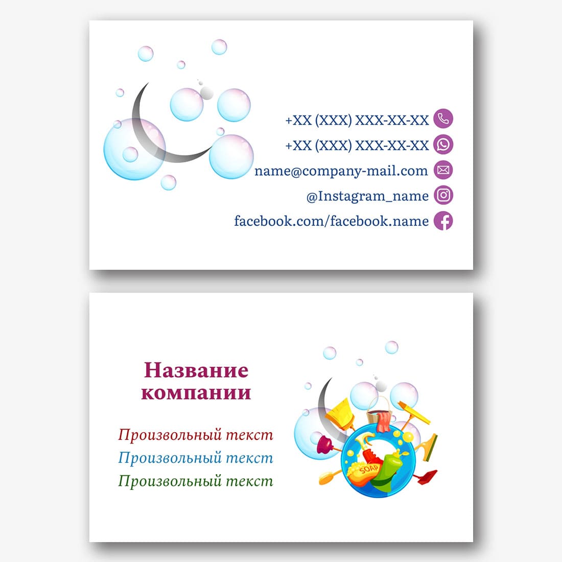 Бесплатный шаблон визитки клининга, клининговой компании. Создайте макет своими руками в конструкторе визиток.