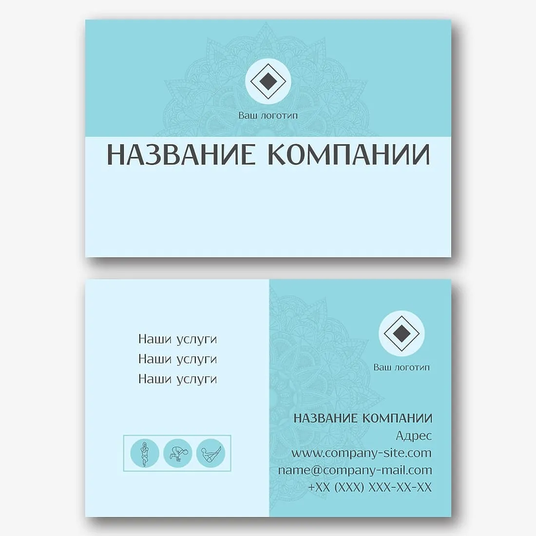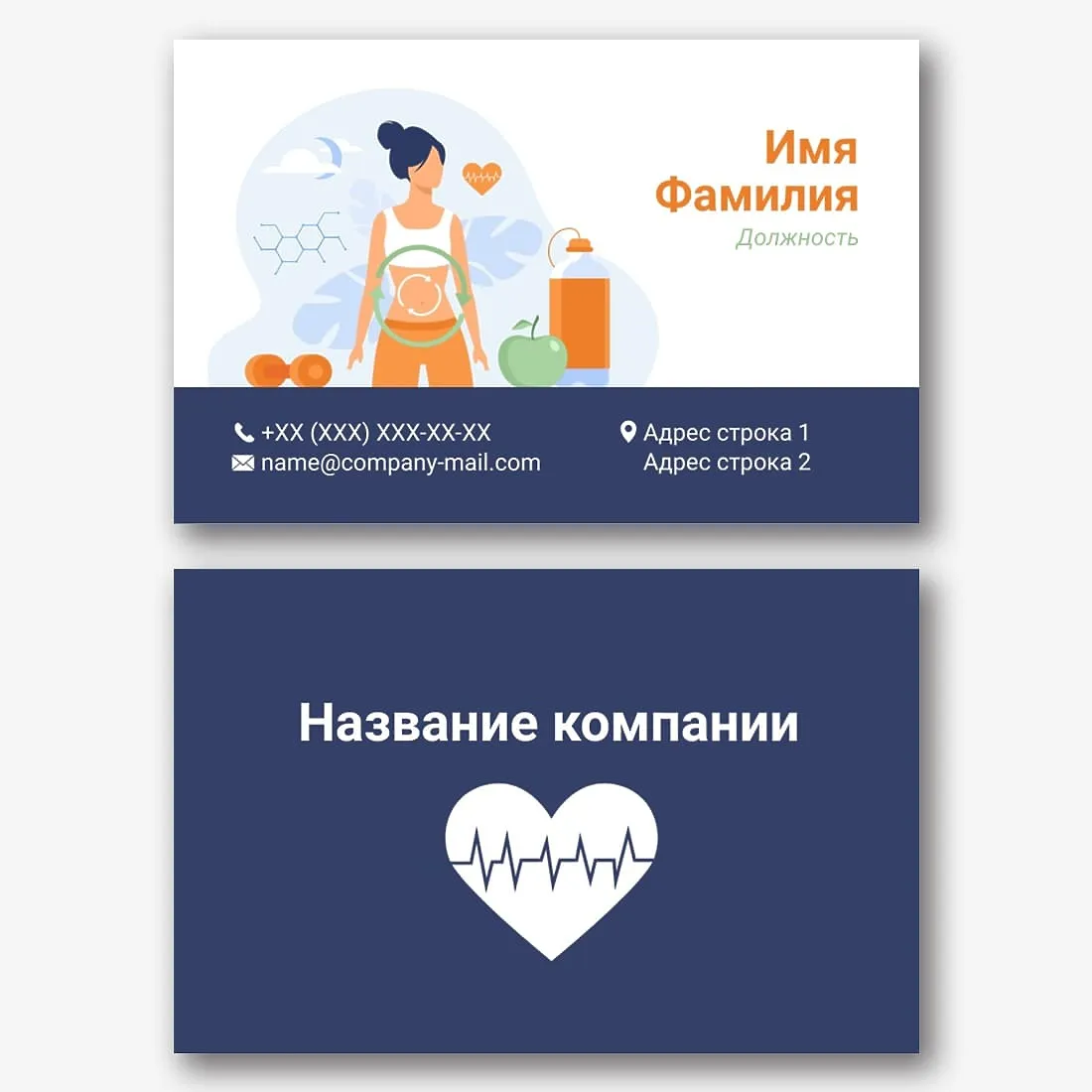 Бесплатный шаблон визитки тренажерного зала, спортивного зала, тренера. Создайте макет своими руками в конструкторе визиток.