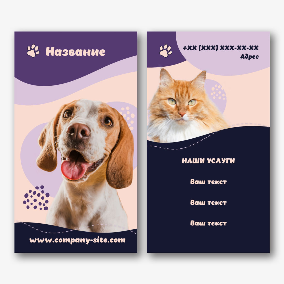 Бесплатный шаблон визитки для ветеринара, ветеринарной клиники, приюта для животных. Создайте макет своими руками в конструкторе визиток.