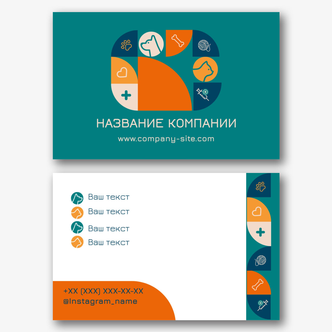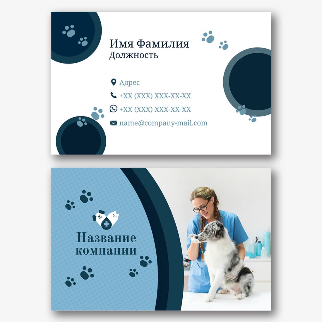 Бесплатный шаблон визитки для ветеринара, ветеринарной клиники, приюта для животных. Создайте макет своими руками в конструкторе визиток.