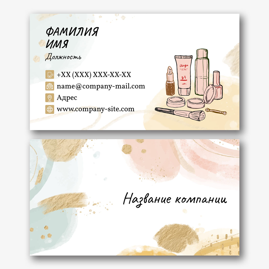 Бесплатный шаблон абстрактной визитки для визажиста. Создайте макет визитки своими руками в конструкторе визиток.