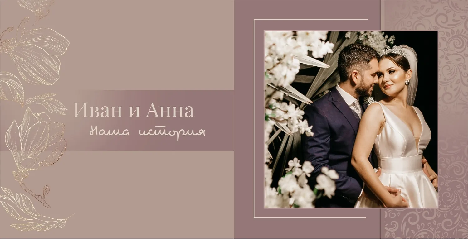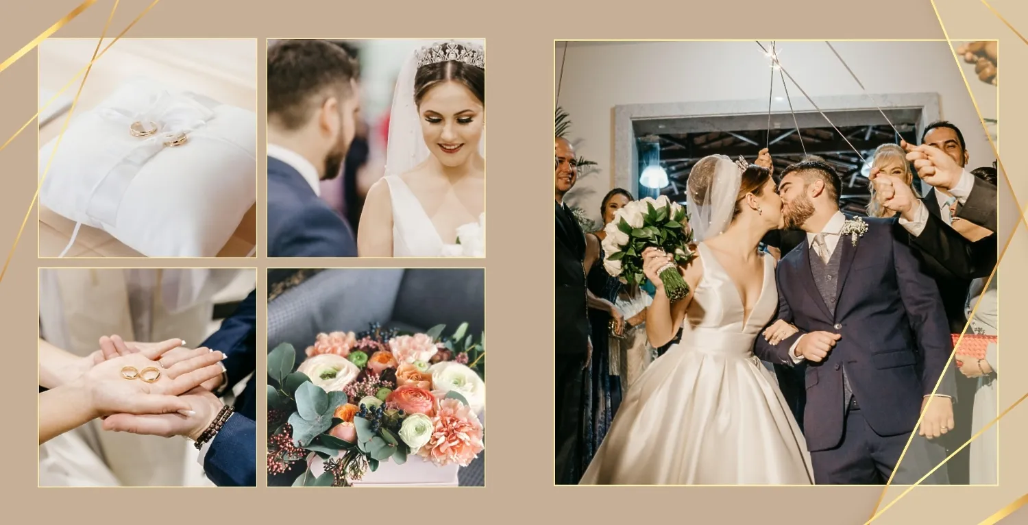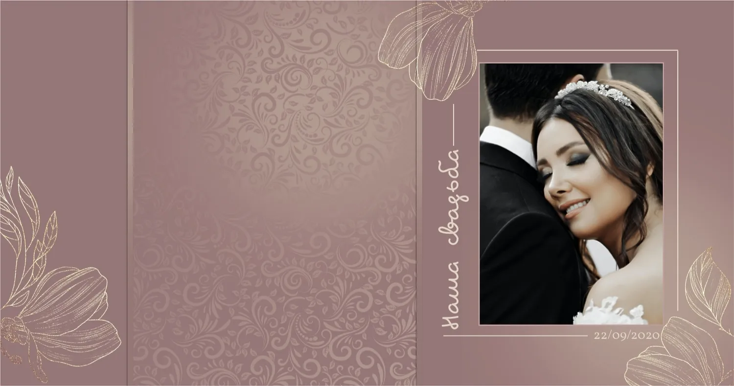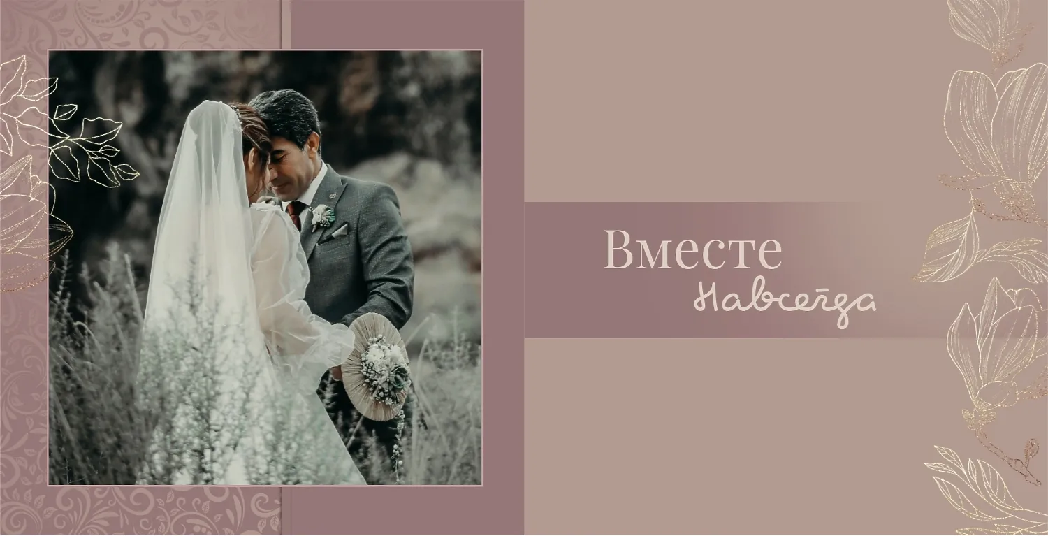 Бесплатный шаблон свадебной фотокниги золотой годовщины. Создайте макет своими руками в онлайн-конструкторе фотокниг.