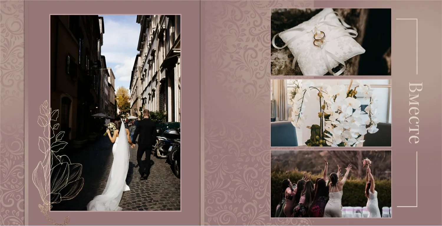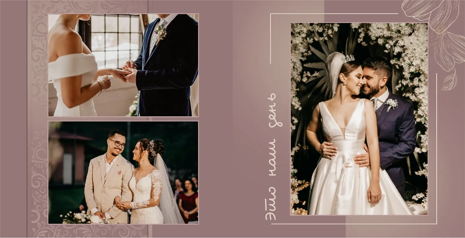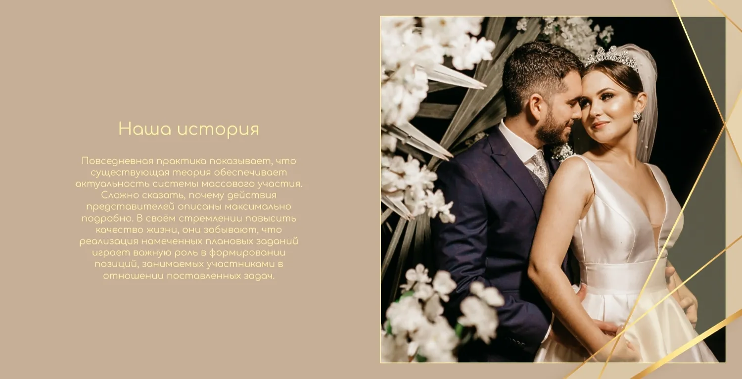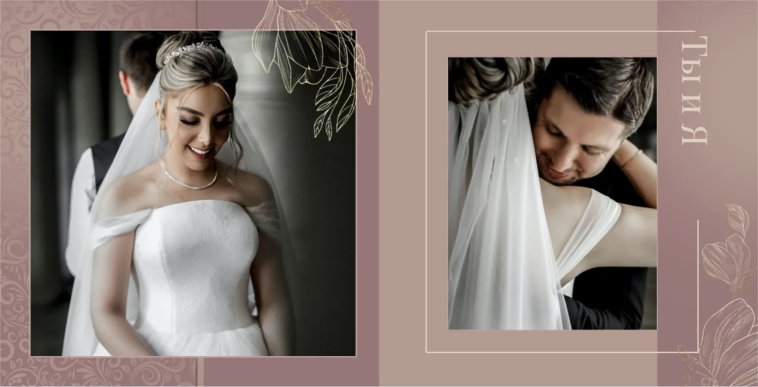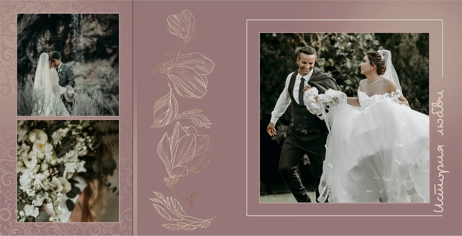 Бесплатный шаблон свадебной фотокниги золотой годовщины. Создайте макет своими руками в онлайн-конструкторе фотокниг.