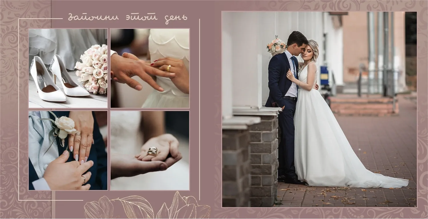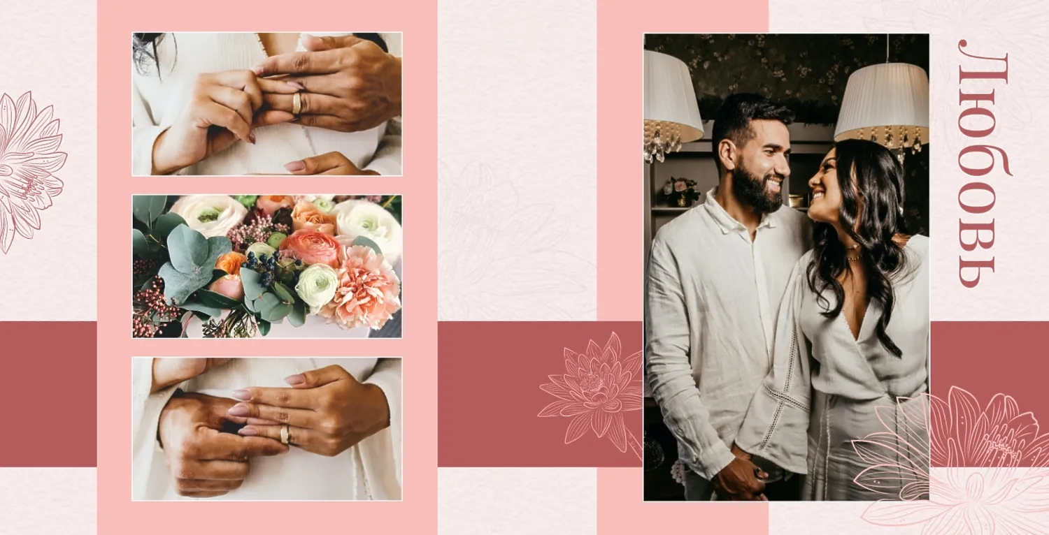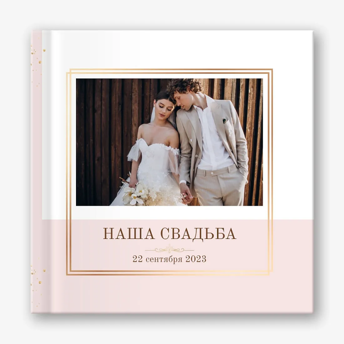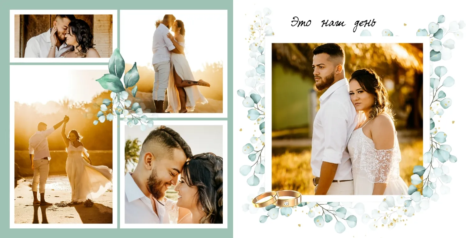 Бесплатный шаблон свадебной фотокниги золотой годовщины. Создайте макет своими руками в онлайн-конструкторе фотокниг.
