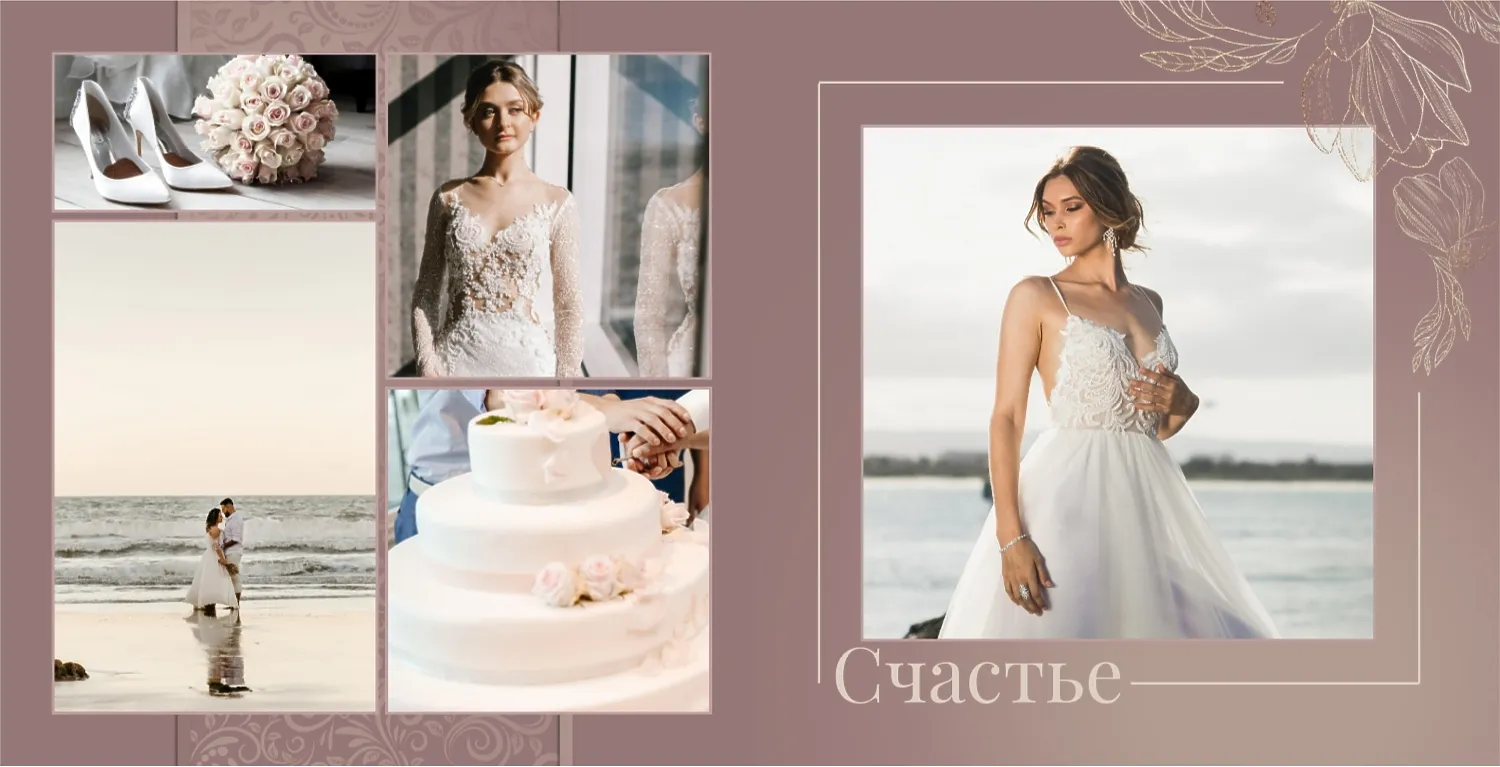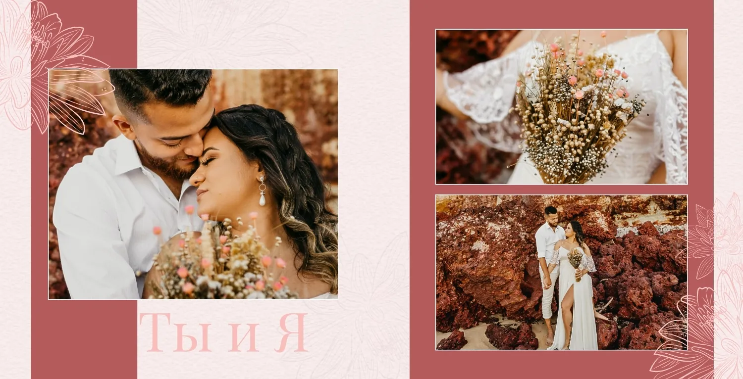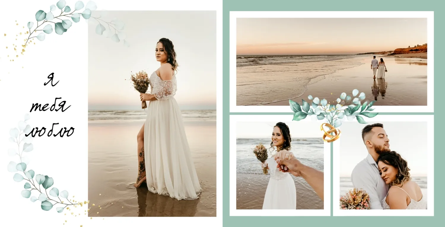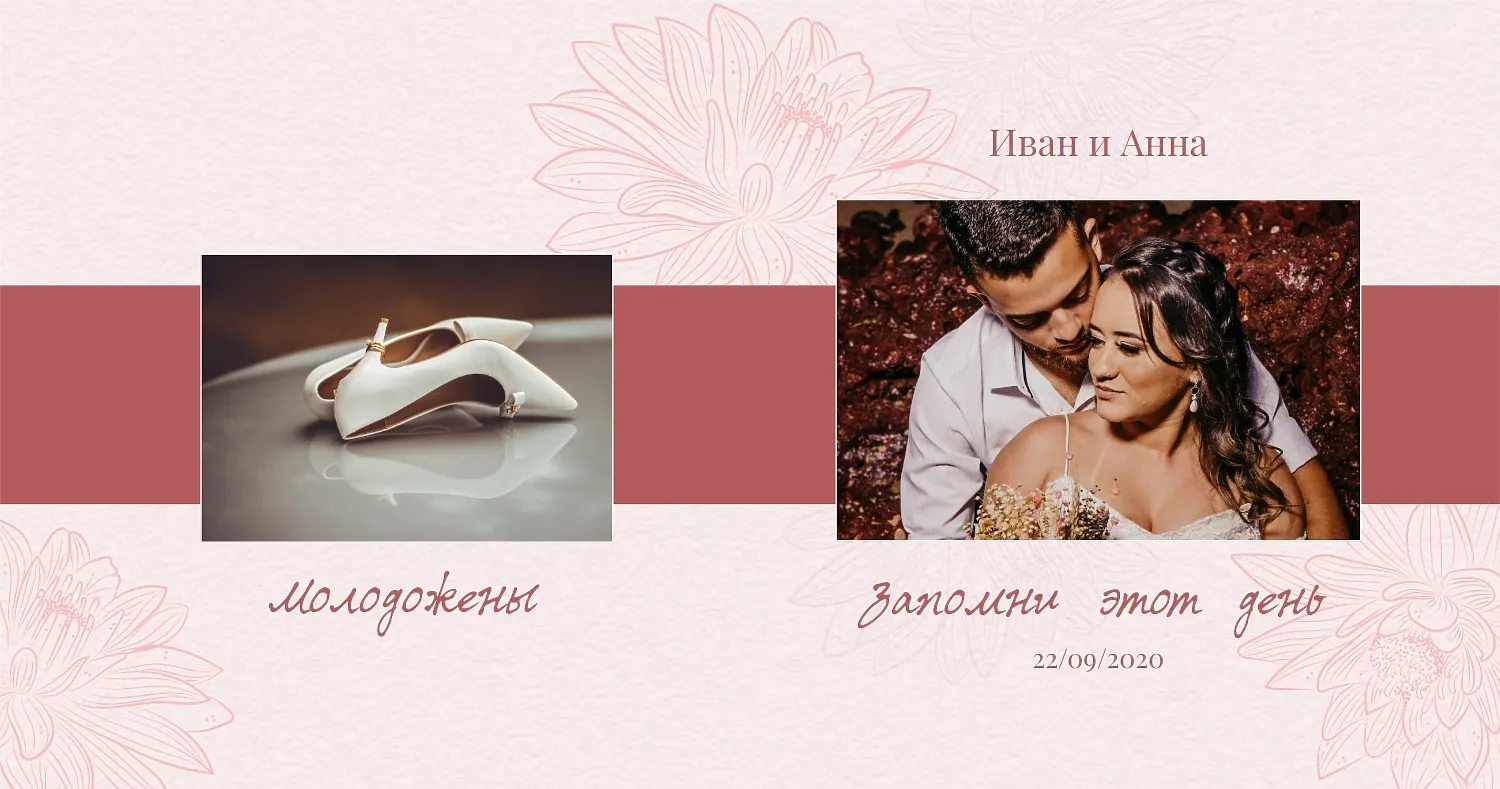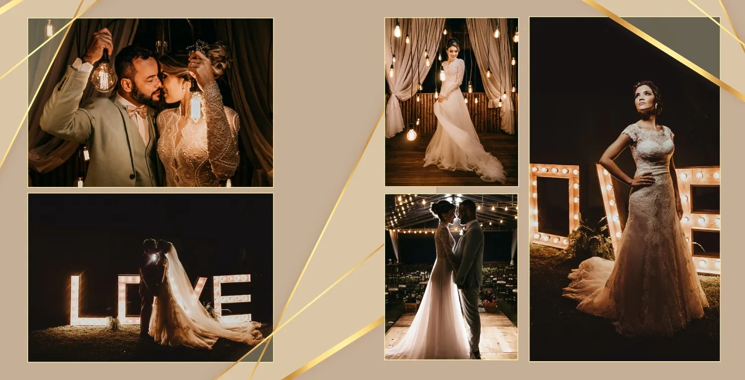 Бесплатный шаблон свадебной фотокниги золотой годовщины. Создайте макет своими руками в онлайн-конструкторе фотокниг.