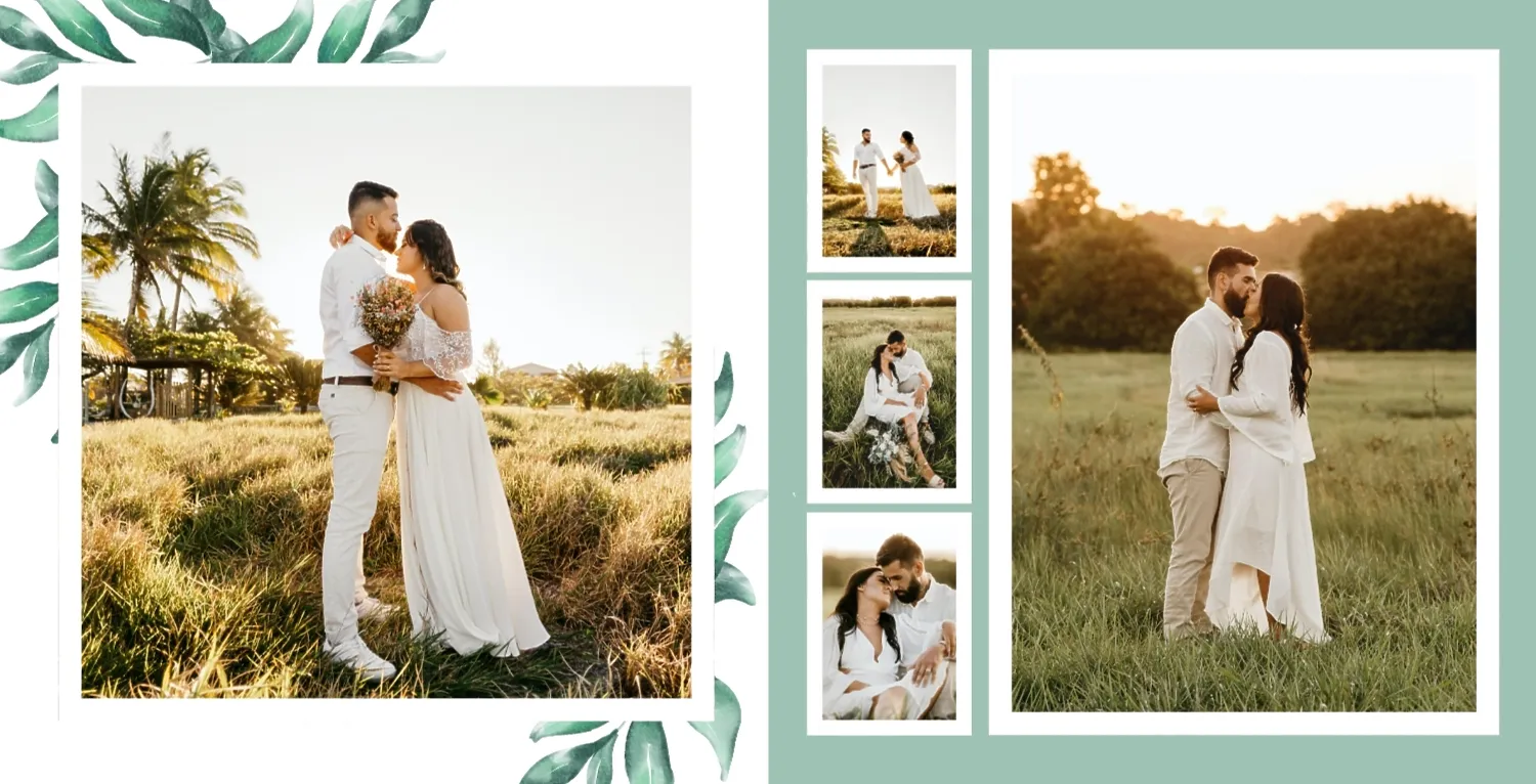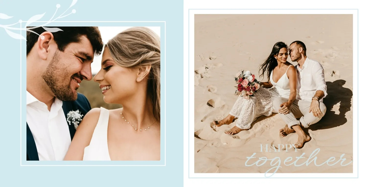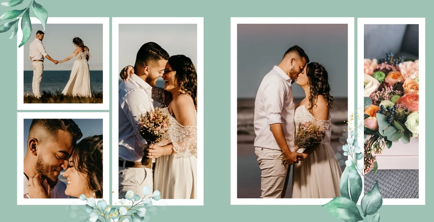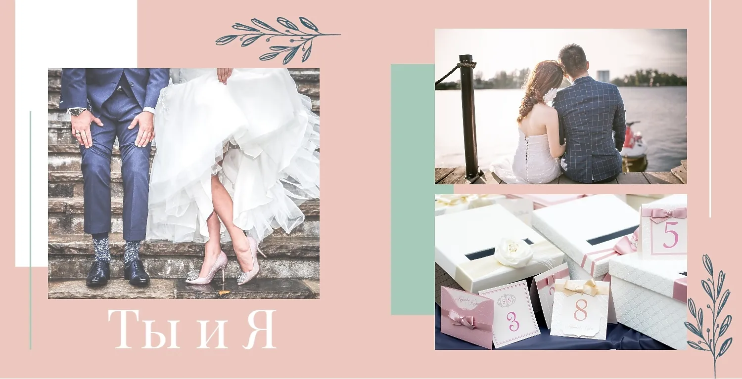 Бесплатный шаблон свадебной фотокниги золотой годовщины. Создайте макет своими руками в онлайн-конструкторе фотокниг.
