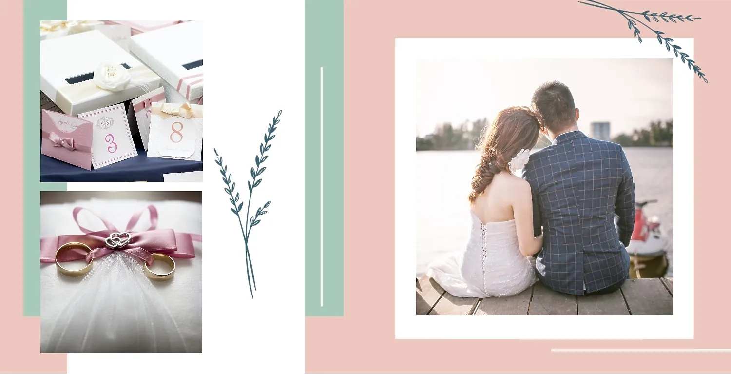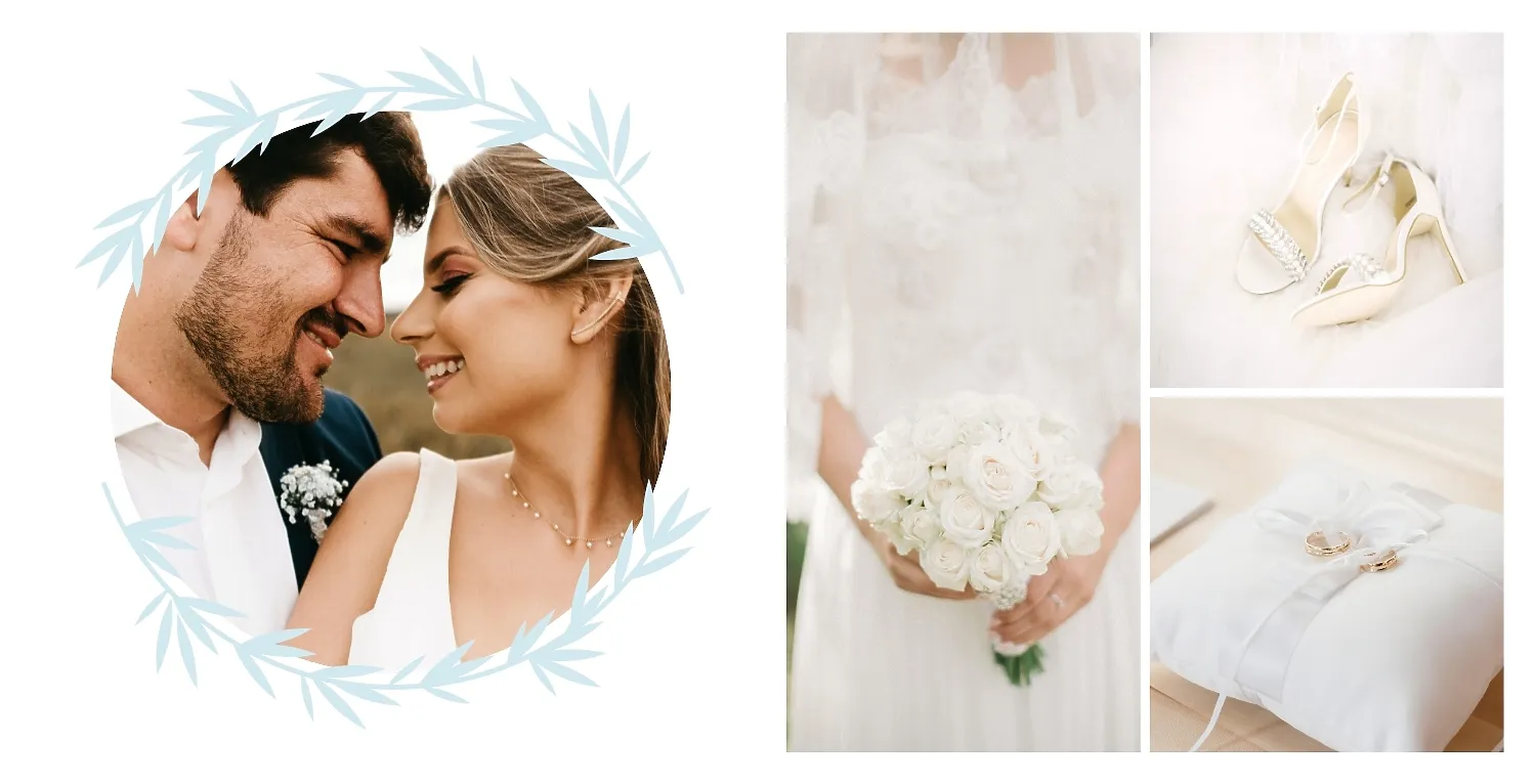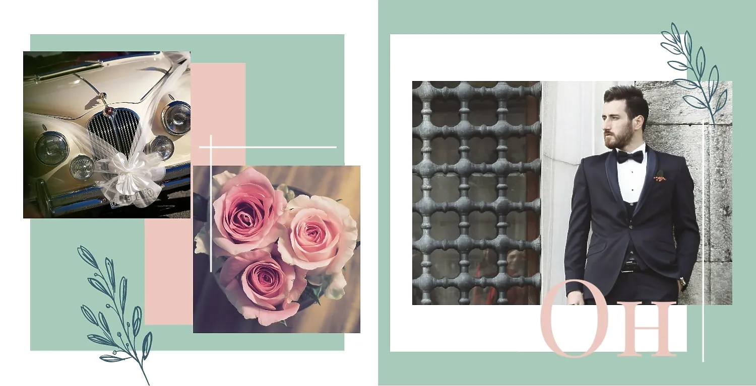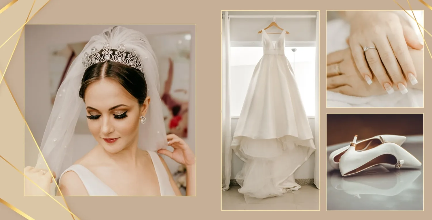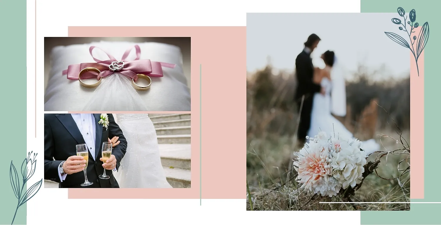 Бесплатный шаблон свадебной фотокниги золотой годовщины. Создайте макет своими руками в онлайн-конструкторе фотокниг.