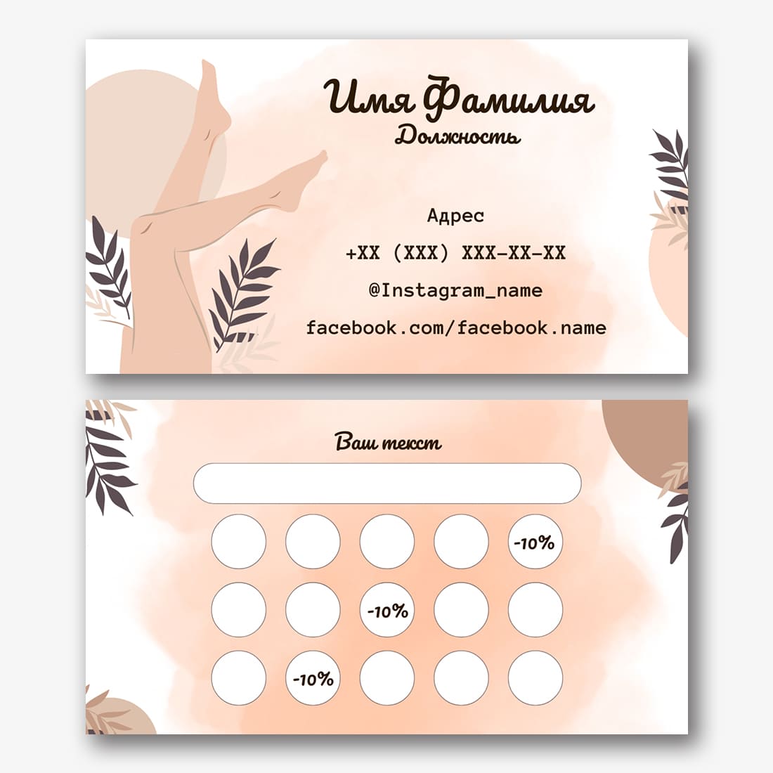 Бесплатный шаблон женственной визитки мастера маникюра, маникюрного салона, beauty студии. Создайте макет визитки своими руками в онлайн-конструкторе визиток.