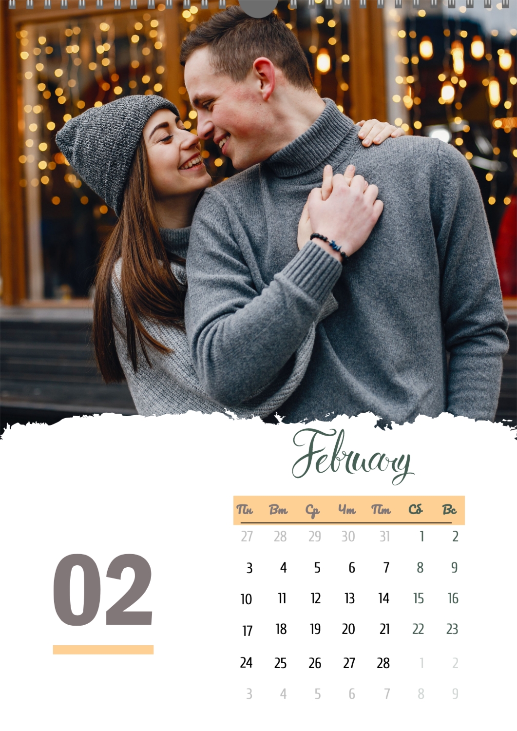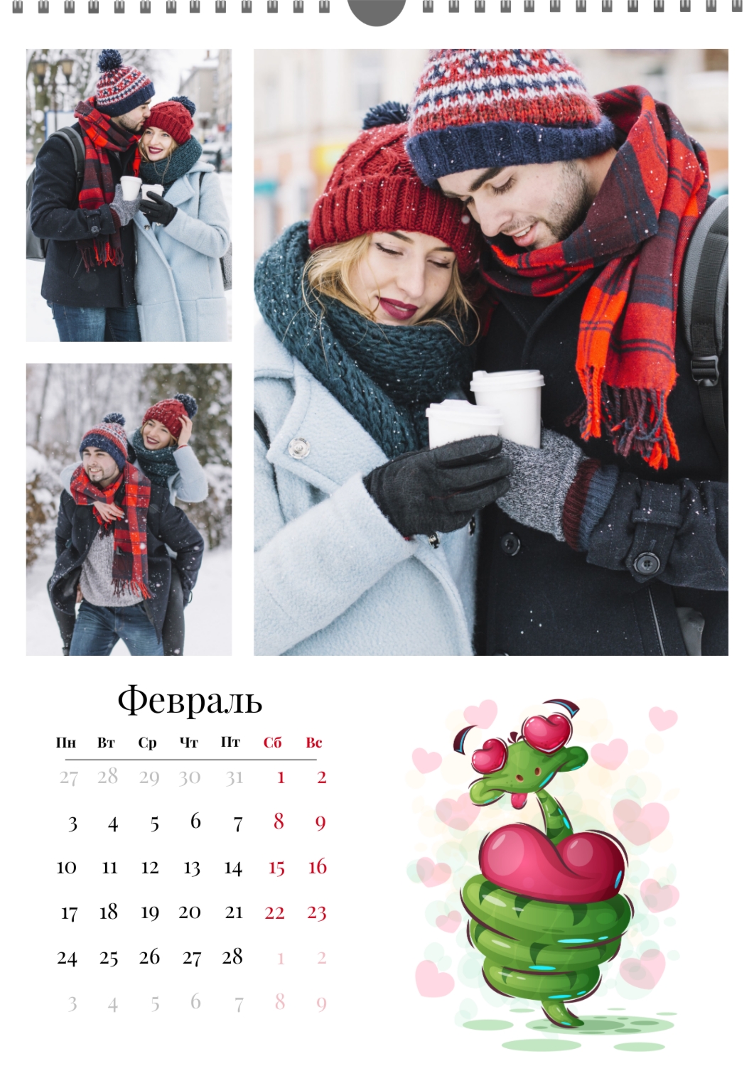 Бесплатный шаблон календаря c лучшими воспоминаниями влюбленной пары. Создайте макет своими руками в конструкторе календарей.