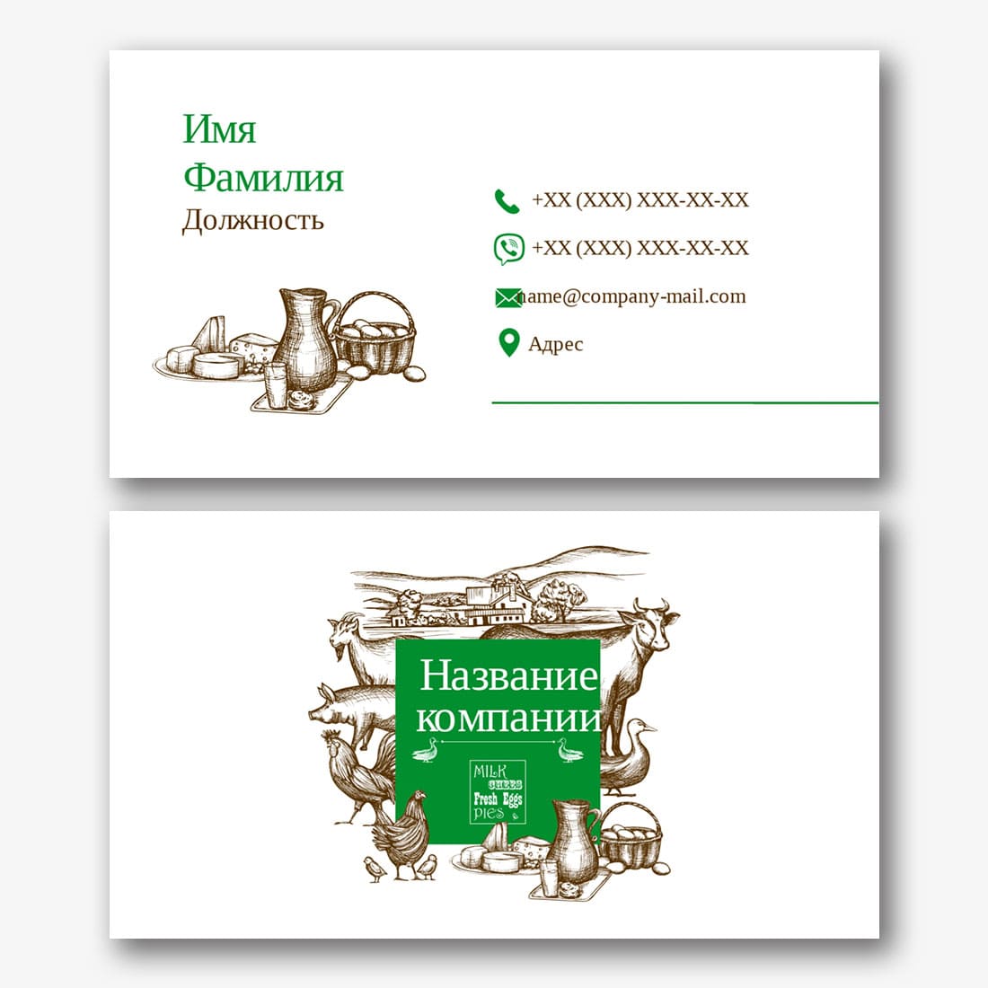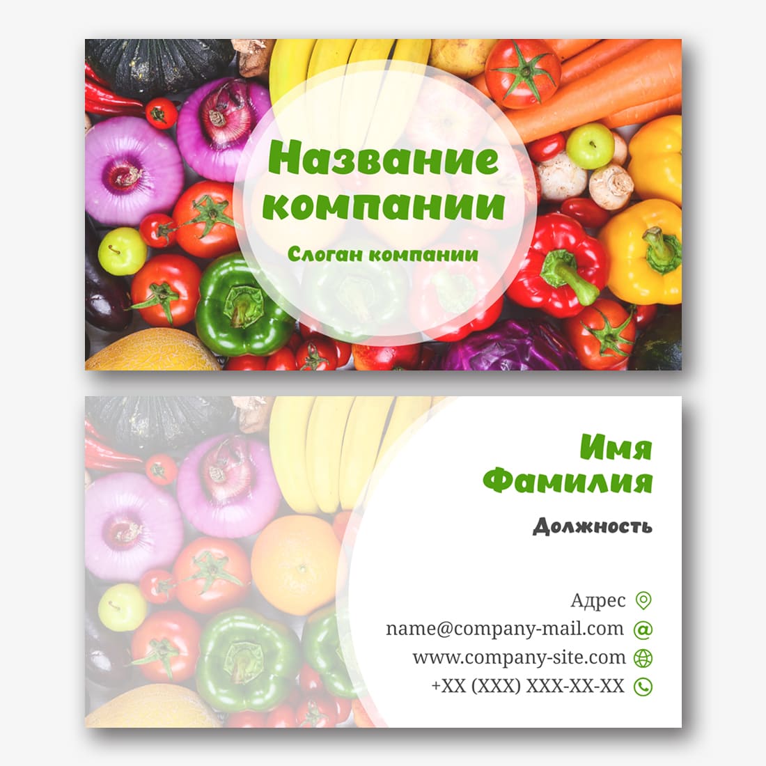 Бесплатный шаблон визитки фермера, овощного магазина, магазина экопродуктов. Создайте макет своими руками в конструкторе визиток.