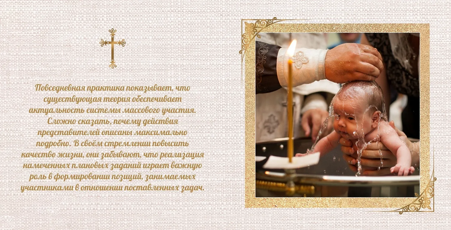 Крещение - это особенно важное и священное событие в жизни маленького человека, и многие родители желают сохранить его в памятных фотографиях. Создание уникальной фотокниги, посвященной этому дню, поможет вам вечно сохранить воспоминания о церемонии и поделиться ими с близкими. В нашем онлайн-конструкторе мы предлагаем изменить готовый шаблон квадратной фотокниги в твердой обложке, специально под свои предпочтения. Этот шаблон, разработанный для фото с крещения, обладает утонченным и нежным дизайном, который прекрасно подходит для отображения торжественности и радости этого момента. На обложке фотокниги можно разместить изображение вашего малыша в красивом крещенском наряде, а также дату церемонии. Внутри фотокниги вы найдете разнообразные макеты для фотографий с крестными и гостями, а также место для записей и пожеланий. Фон и декор элементов шаблона подчеркнут важность этого события и создадут атмосферу торжества. Создавая уникальную фотокнигу о крещении, вы делаете нечто особенное для вашей семьи. Эта книга станет ценным наследием и памятником вашей заботы и любви к маленькому члену вашей семьи.