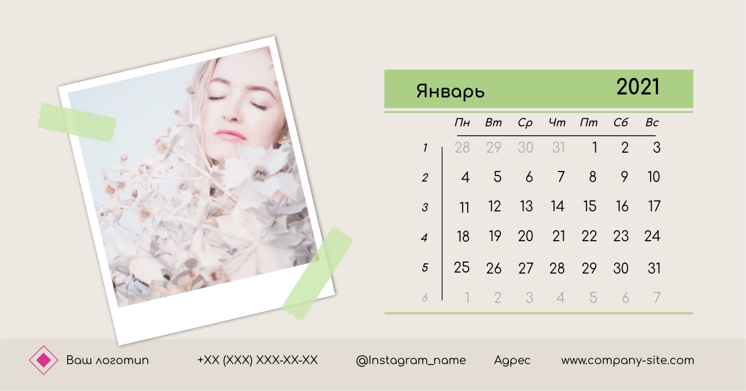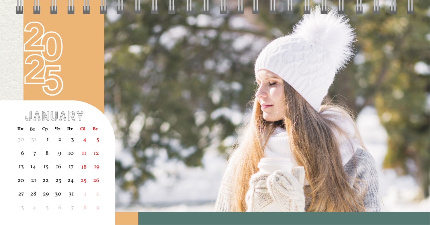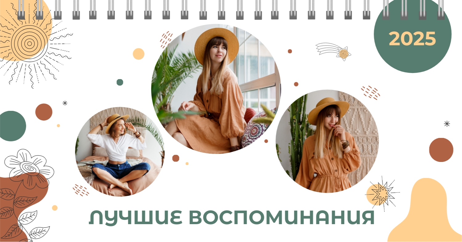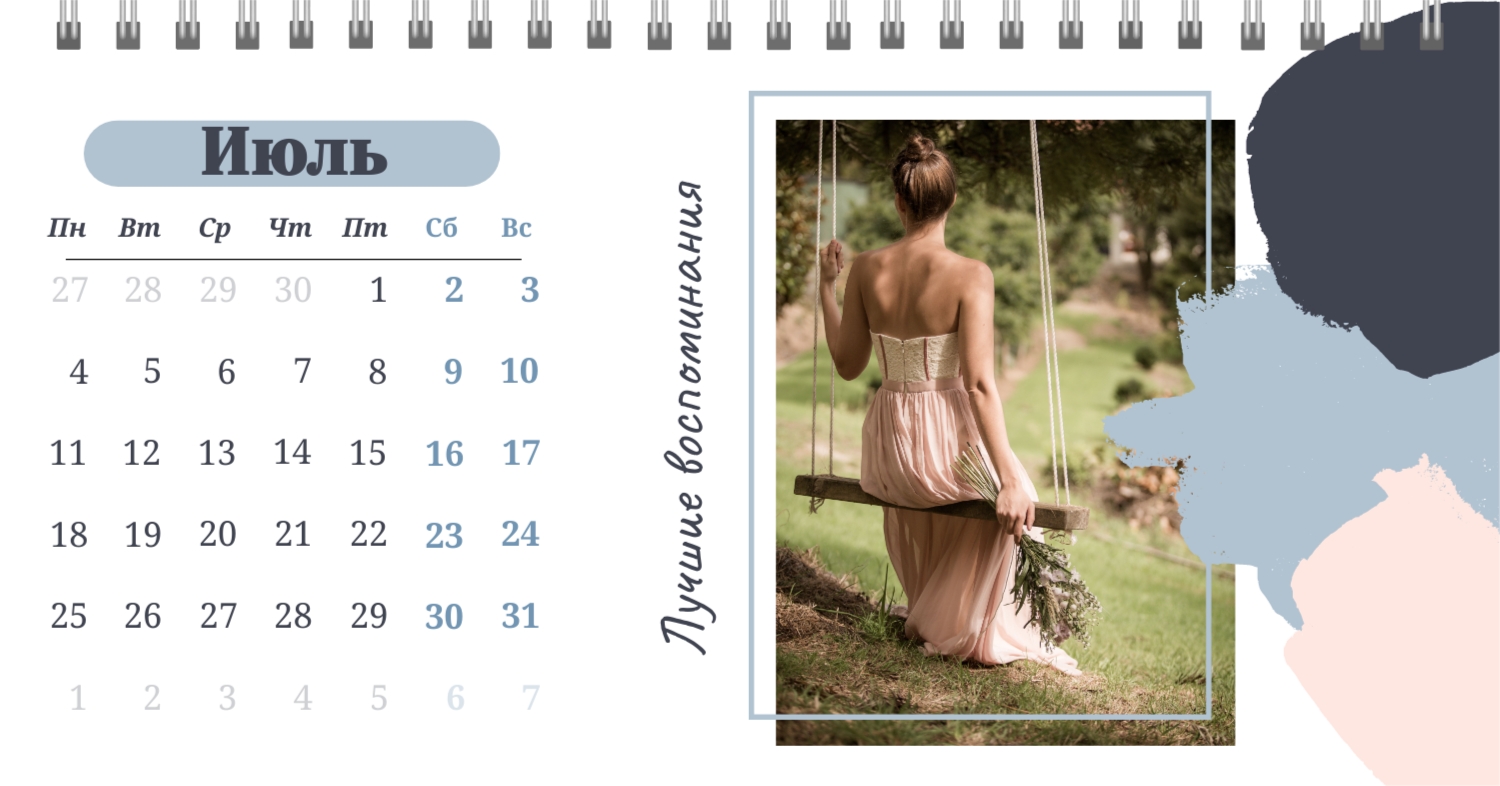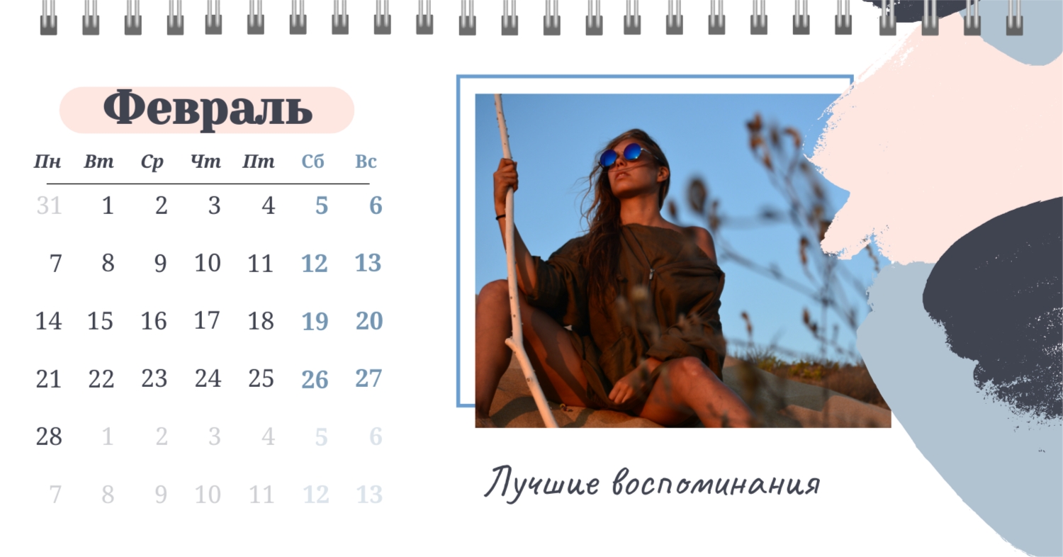Этот чарующий шаблон настольного горизонтального календаря "Лучшие воспоминания" призван вдохновить вас на создание уникального и нежного календаря, полного теплых моментов вашей жизни. Онлайн-конструктор, доступный для вас, предоставляет удивительные возможности для творчества. Вы сможете легко настроить каждую деталь, чтобы сделать календарь по-настоящему вашим. Используйте функцию добавления персональных фотографий, чтобы ваши лучшие моменты были в центре внимания. Широкий выбор цветов и шрифтов в конструкторе позволяет вам подчеркнуть атмосферу каждого месяца. Выберите оттенки, которые вызывают у вас те самые чувства, которые вы хотите сохранить в памяти. Создание уникального настольного календаря в онлайн-конструкторе — это не только процесс, но и возможность воплотить в жизнь свои лучшие воспоминания с особенной нежностью и теплотой. Позвольте этому календарю стать отражением вашей уникальной истории.