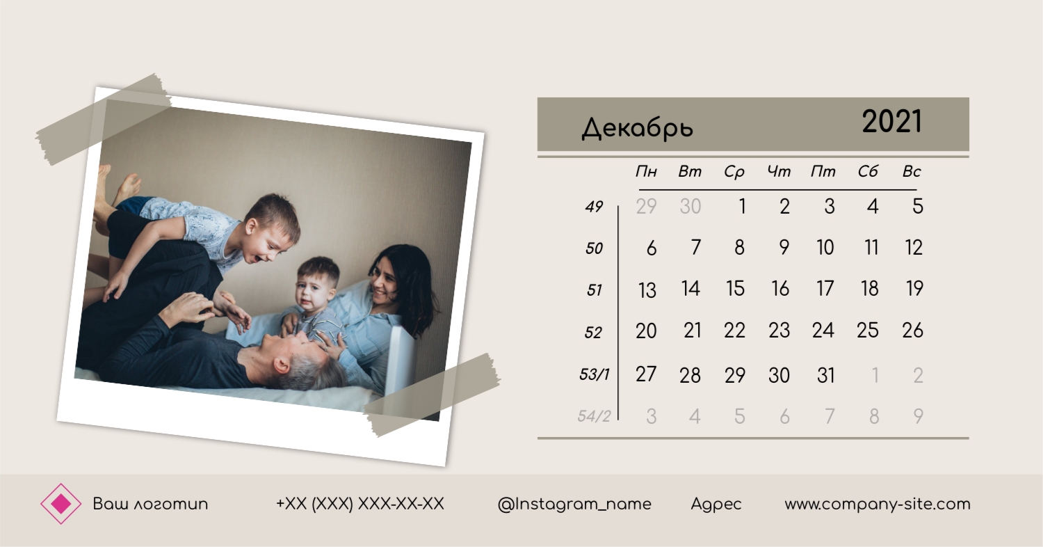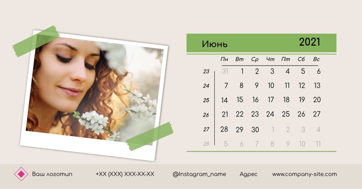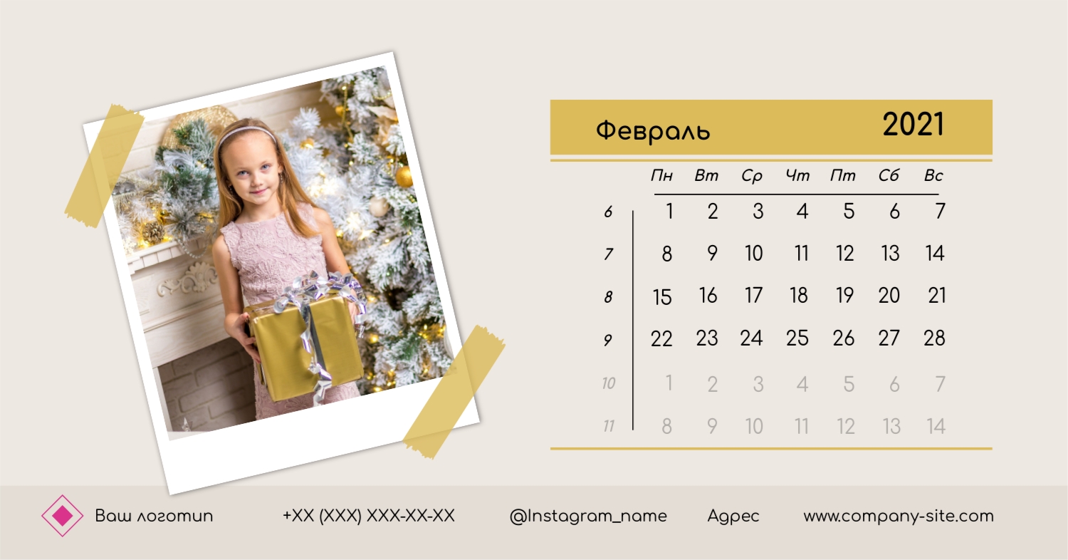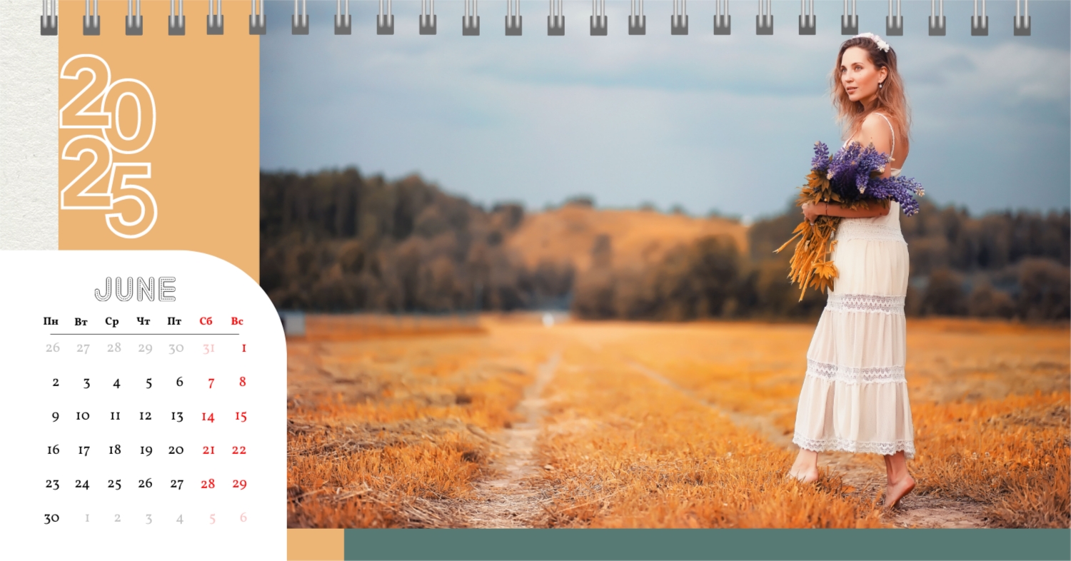 Этот чарующий шаблон настольного горизонтального календаря "Лучшие воспоминания" призван вдохновить вас на создание уникального и нежного календаря, полного теплых моментов вашей жизни. Онлайн-конструктор, доступный для вас, предоставляет удивительные возможности для творчества. Вы сможете легко настроить каждую деталь, чтобы сделать календарь по-настоящему вашим. Используйте функцию добавления персональных фотографий, чтобы ваши лучшие моменты были в центре внимания. Широкий выбор цветов и шрифтов в конструкторе позволяет вам подчеркнуть атмосферу каждого месяца. Выберите оттенки, которые вызывают у вас те самые чувства, которые вы хотите сохранить в памяти. Создание уникального настольного календаря в онлайн-конструкторе — это не только процесс, но и возможность воплотить в жизнь свои лучшие воспоминания с особенной нежностью и теплотой. Позвольте этому календарю стать отражением вашей уникальной истории.
