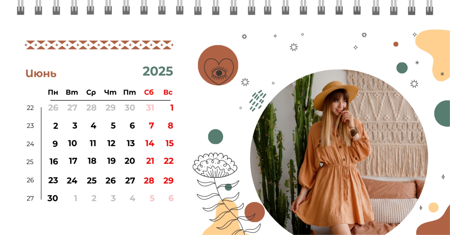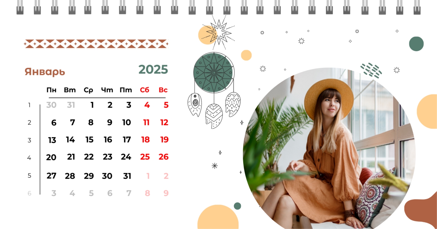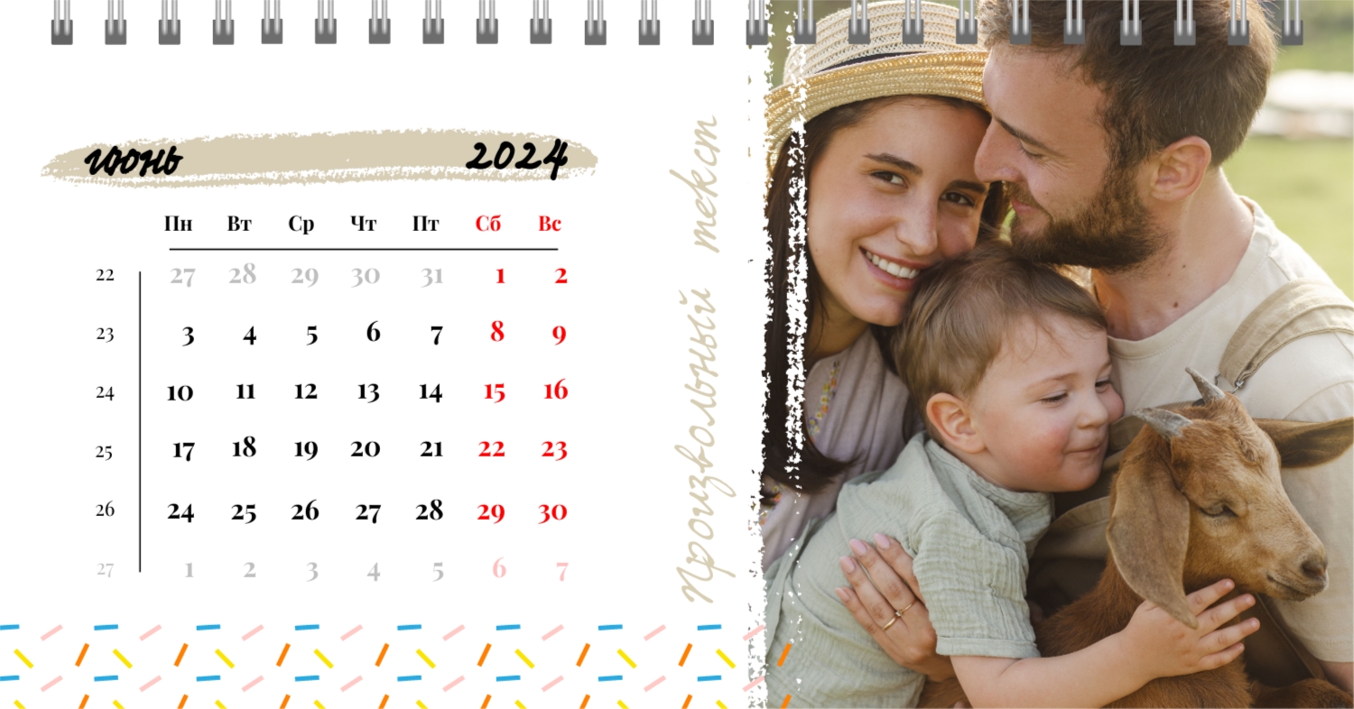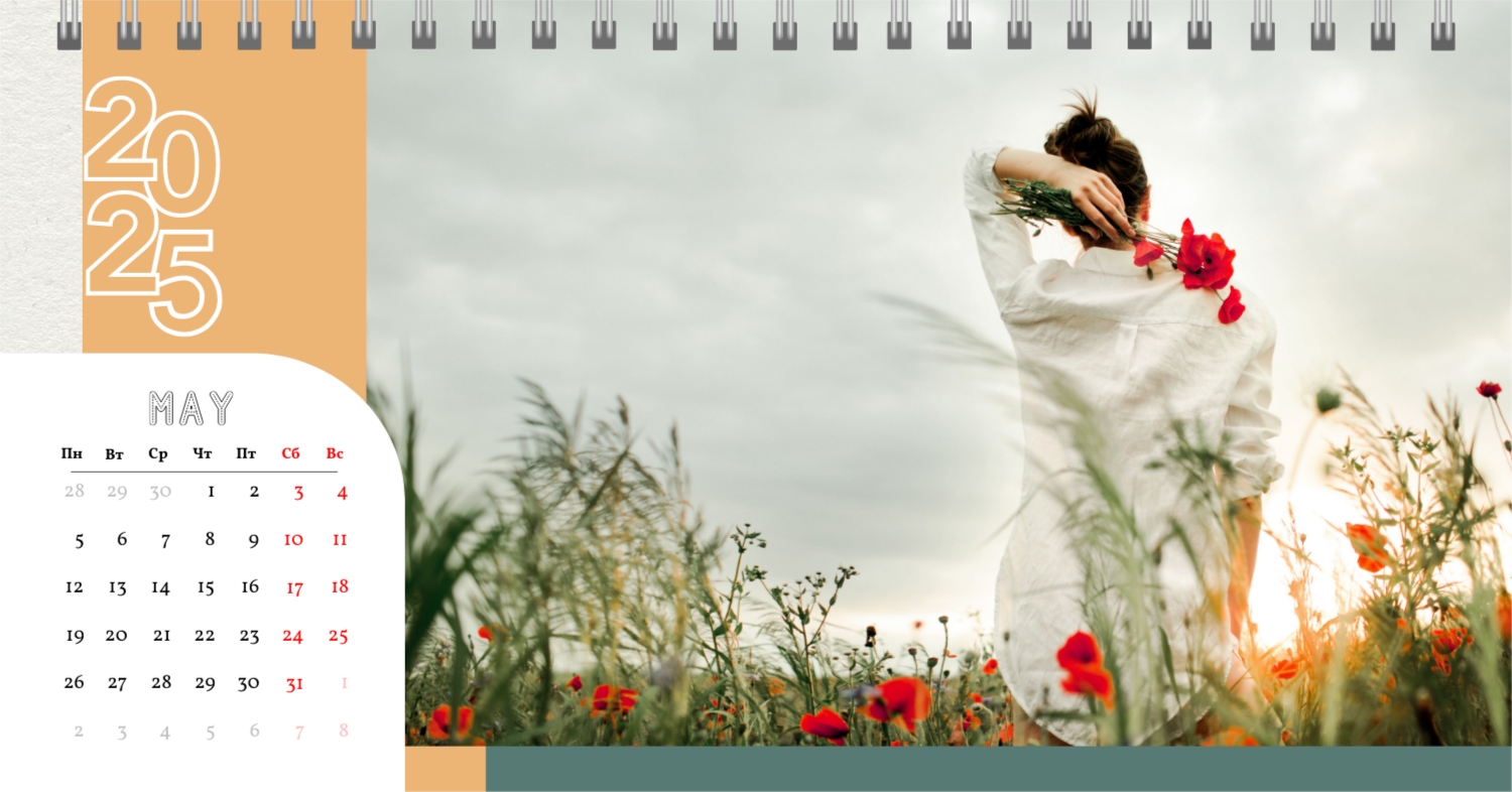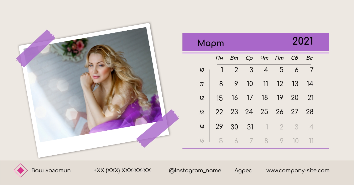 Этот чарующий шаблон настольного горизонтального календаря "Лучшие воспоминания" призван вдохновить вас на создание уникального и нежного календаря, полного теплых моментов вашей жизни. Онлайн-конструктор, доступный для вас, предоставляет удивительные возможности для творчества. Вы сможете легко настроить каждую деталь, чтобы сделать календарь по-настоящему вашим. Используйте функцию добавления персональных фотографий, чтобы ваши лучшие моменты были в центре внимания. Широкий выбор цветов и шрифтов в конструкторе позволяет вам подчеркнуть атмосферу каждого месяца. Выберите оттенки, которые вызывают у вас те самые чувства, которые вы хотите сохранить в памяти. Создание уникального настольного календаря в онлайн-конструкторе — это не только процесс, но и возможность воплотить в жизнь свои лучшие воспоминания с особенной нежностью и теплотой. Позвольте этому календарю стать отражением вашей уникальной истории.