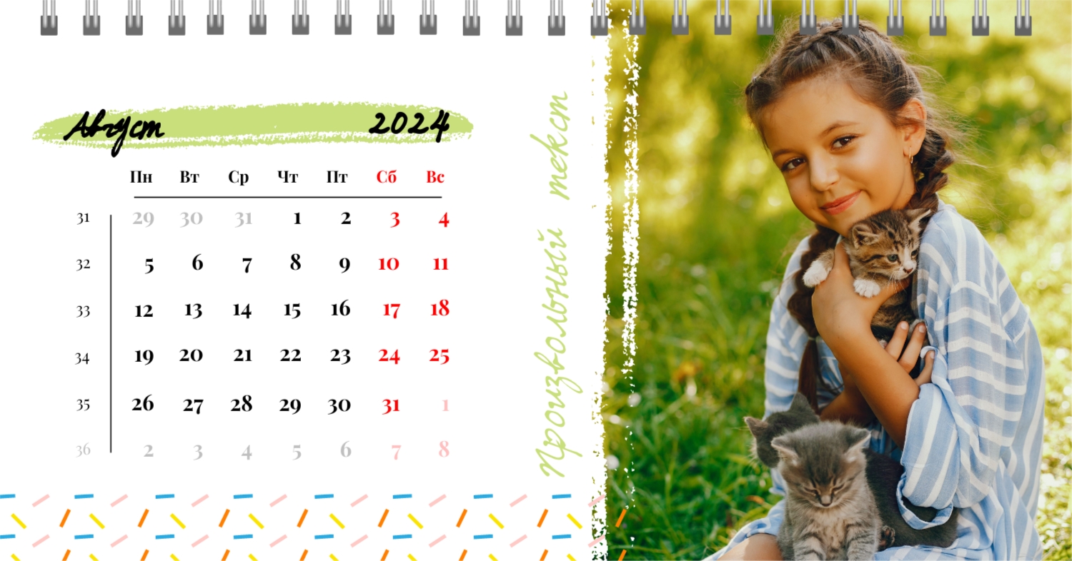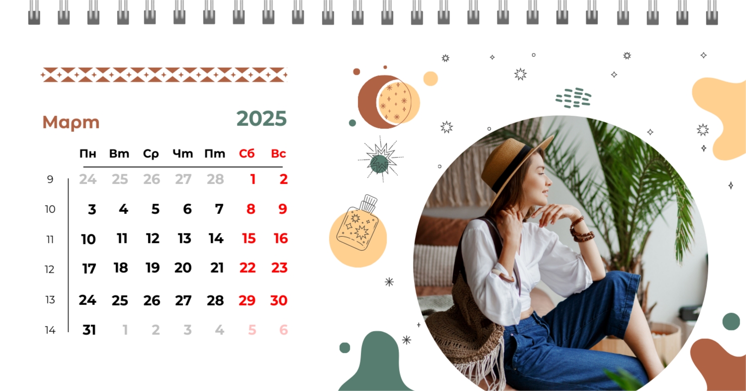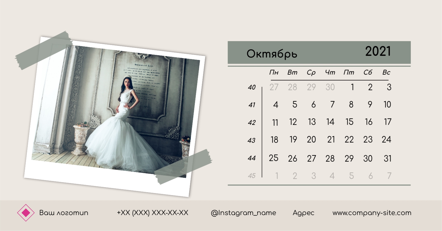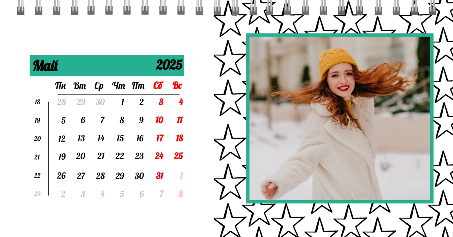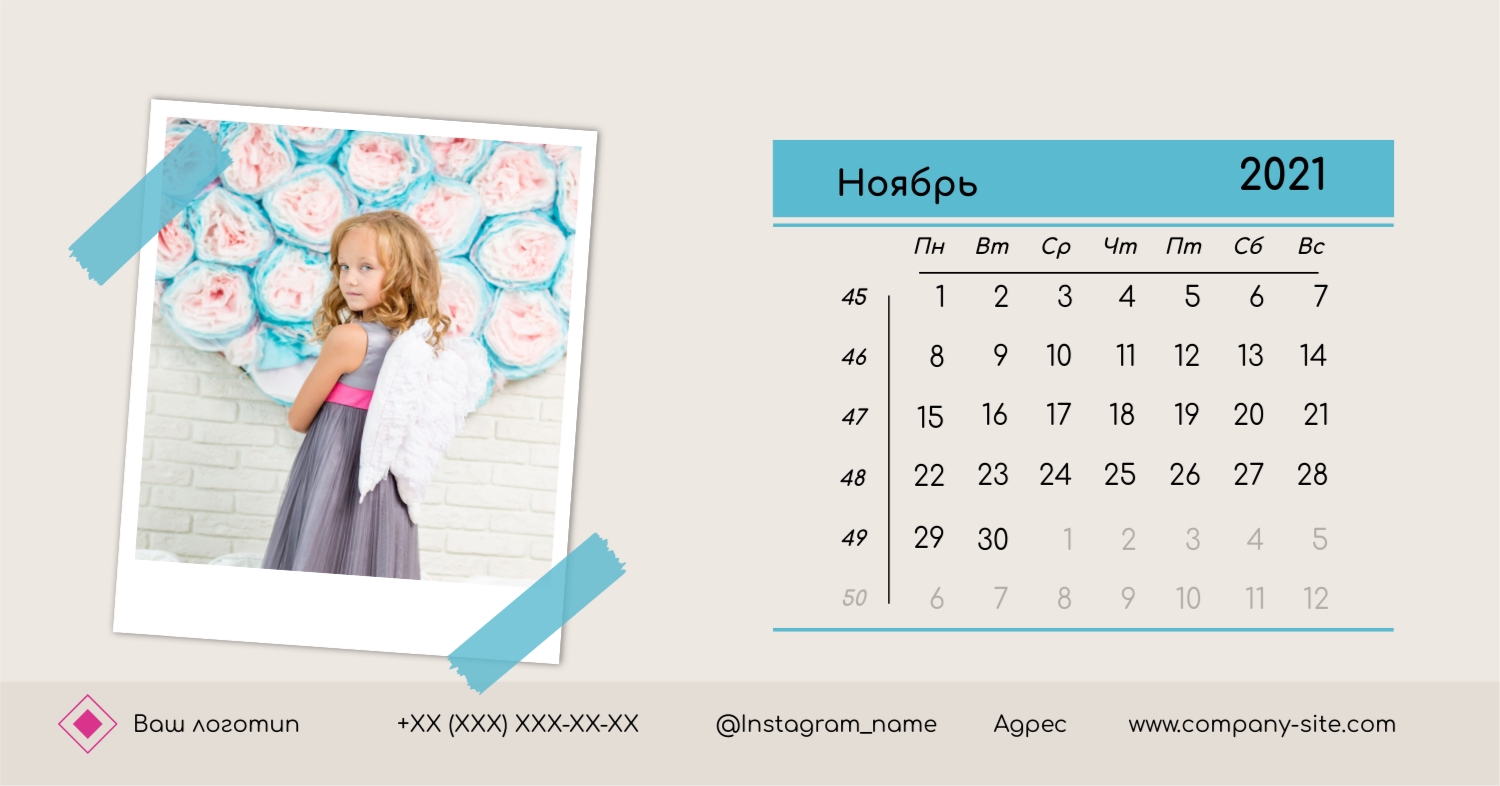 Этот чарующий шаблон настольного горизонтального календаря "Лучшие воспоминания" призван вдохновить вас на создание уникального и нежного календаря, полного теплых моментов вашей жизни. Онлайн-конструктор, доступный для вас, предоставляет удивительные возможности для творчества. Вы сможете легко настроить каждую деталь, чтобы сделать календарь по-настоящему вашим. Используйте функцию добавления персональных фотографий, чтобы ваши лучшие моменты были в центре внимания. Широкий выбор цветов и шрифтов в конструкторе позволяет вам подчеркнуть атмосферу каждого месяца. Выберите оттенки, которые вызывают у вас те самые чувства, которые вы хотите сохранить в памяти. Создание уникального настольного календаря в онлайн-конструкторе — это не только процесс, но и возможность воплотить в жизнь свои лучшие воспоминания с особенной нежностью и теплотой. Позвольте этому календарю стать отражением вашей уникальной истории.