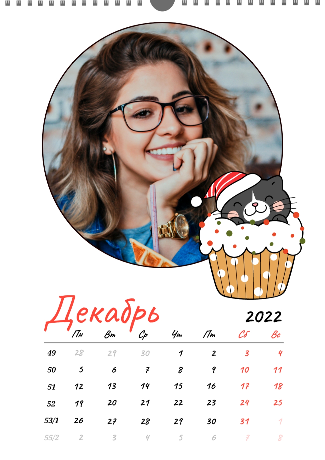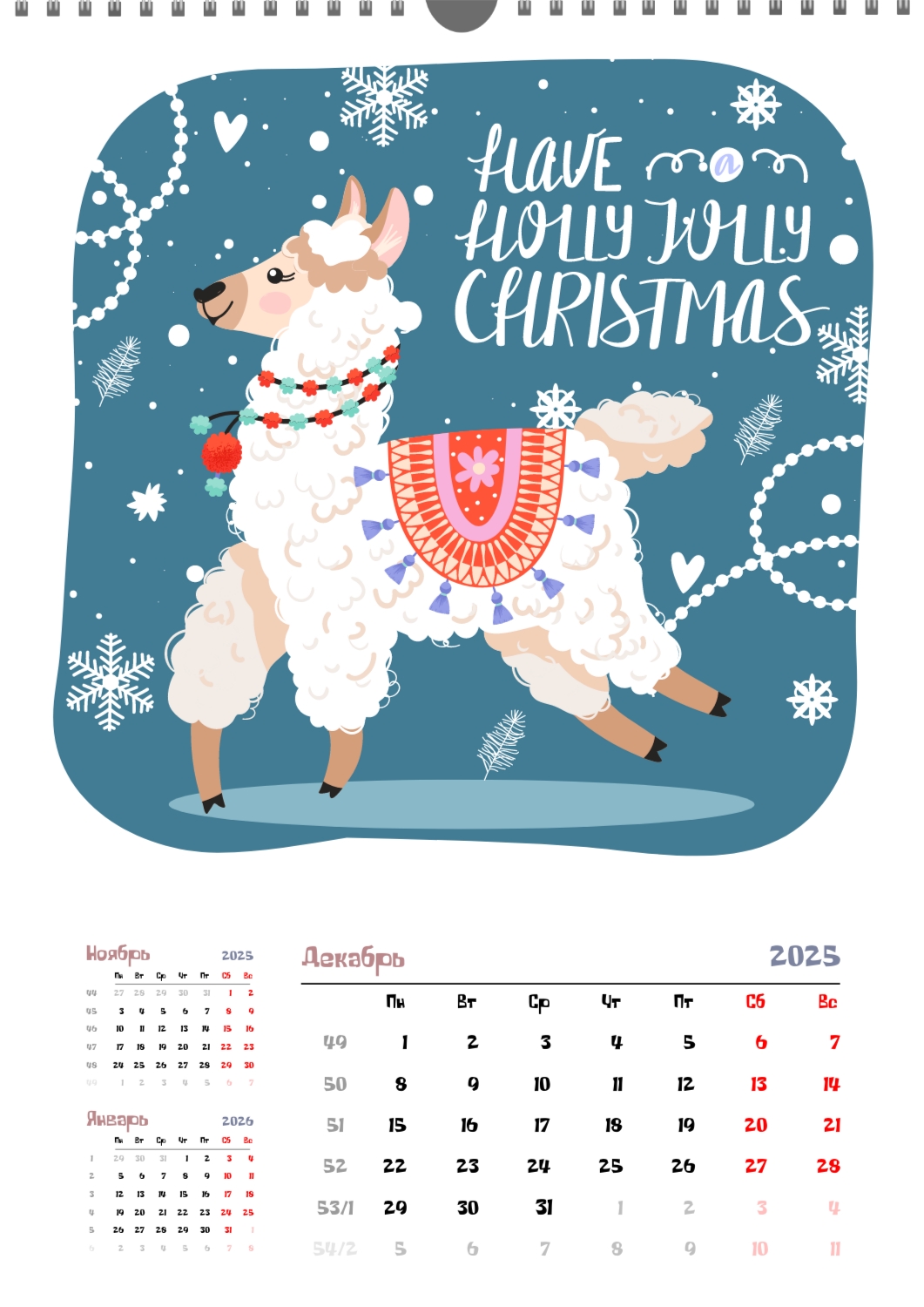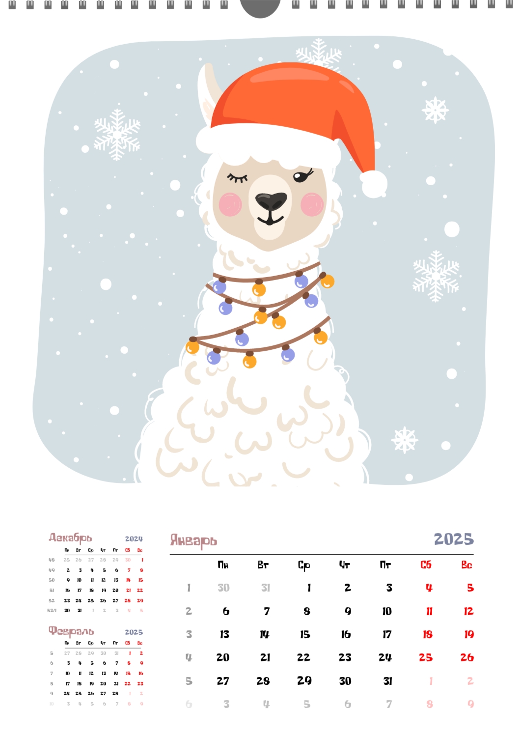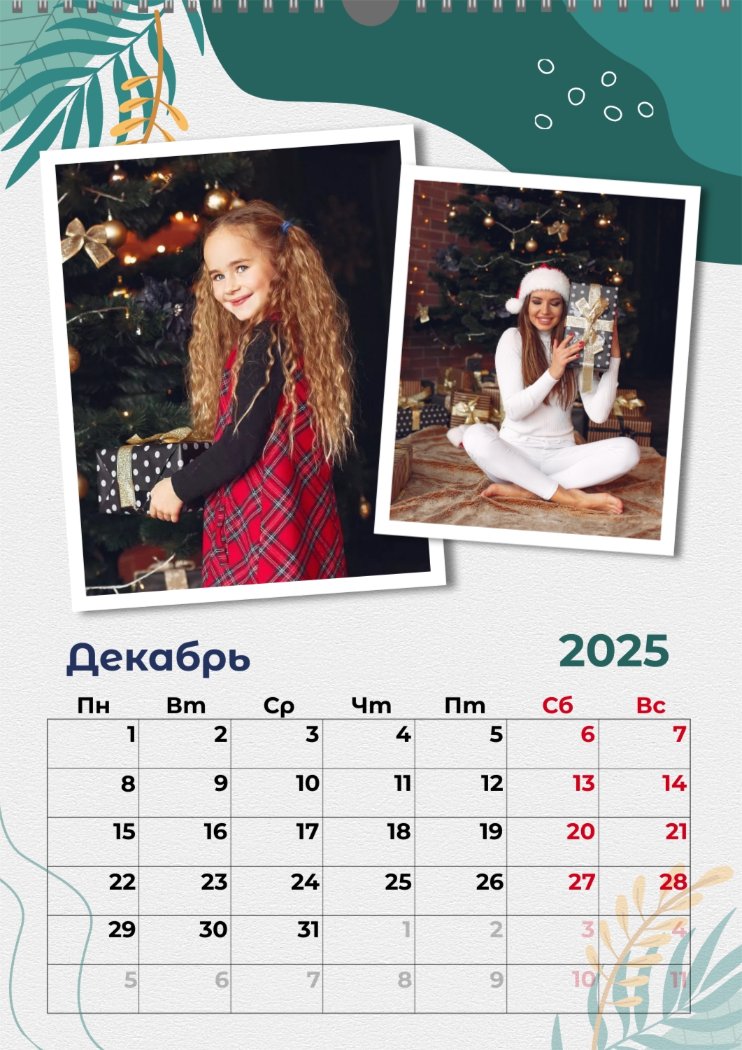 Бесплатный шаблон новогоднего календаря для поздравления друзей и близких. Создайте макет своими руками в конструкторе календарей.