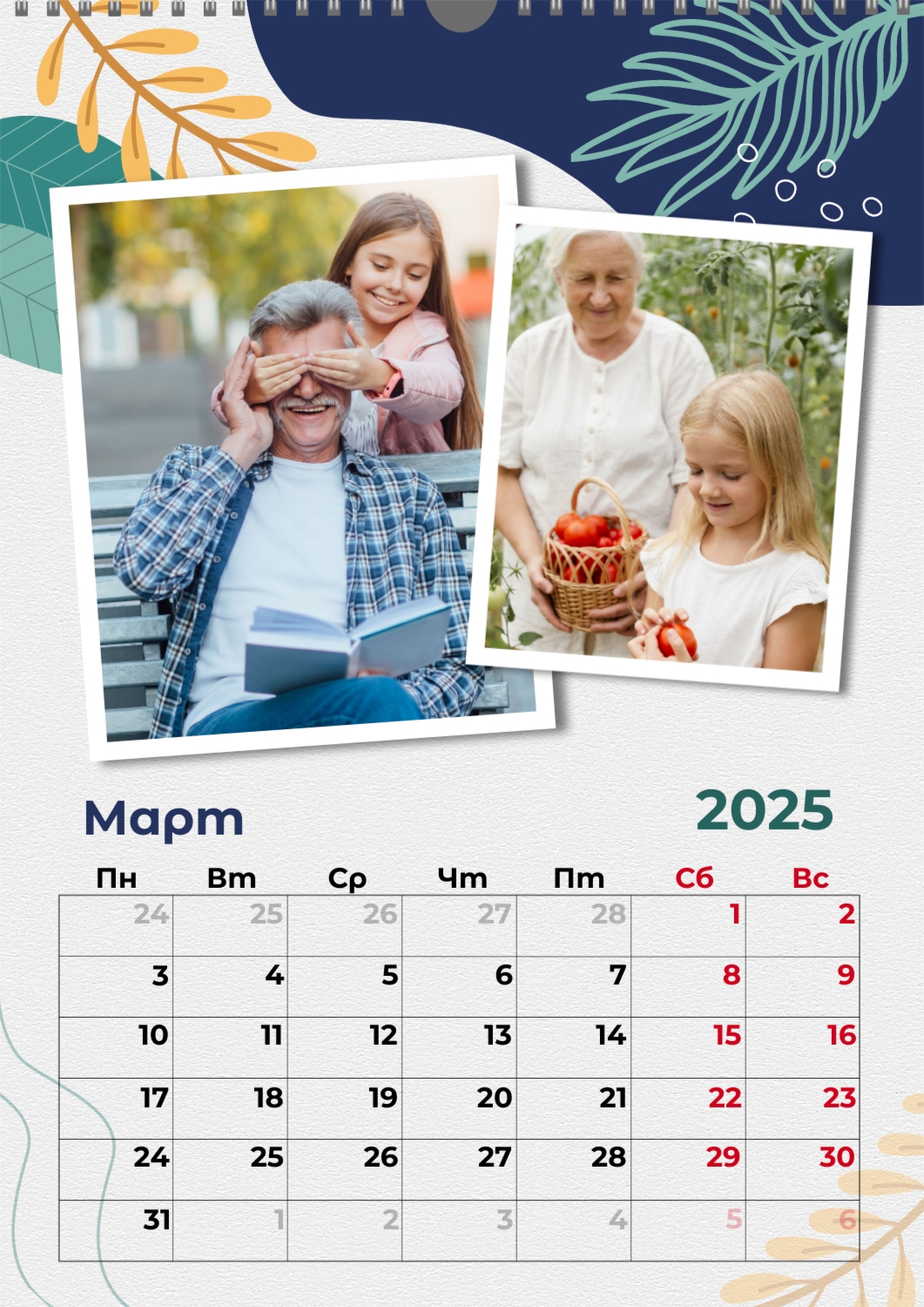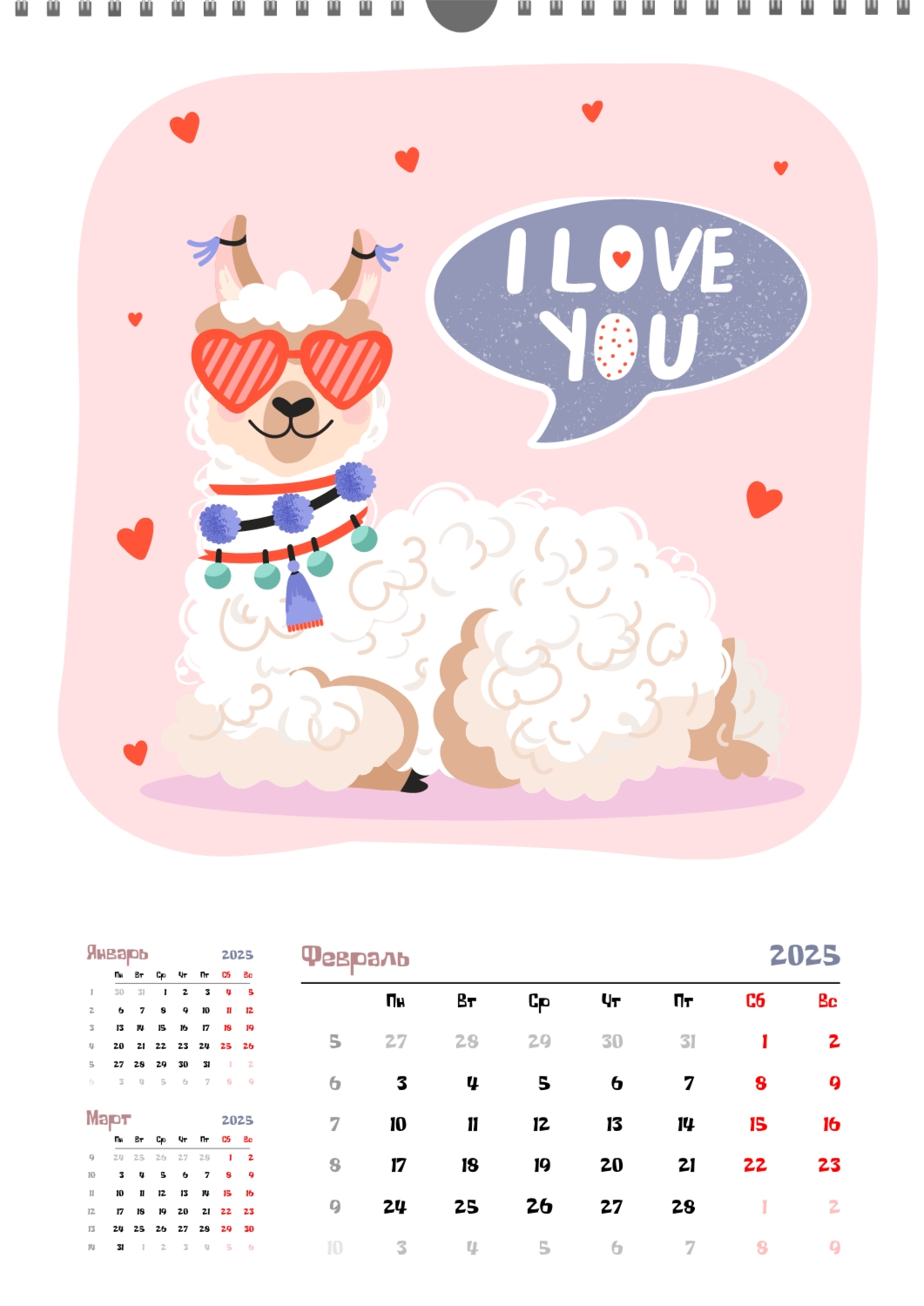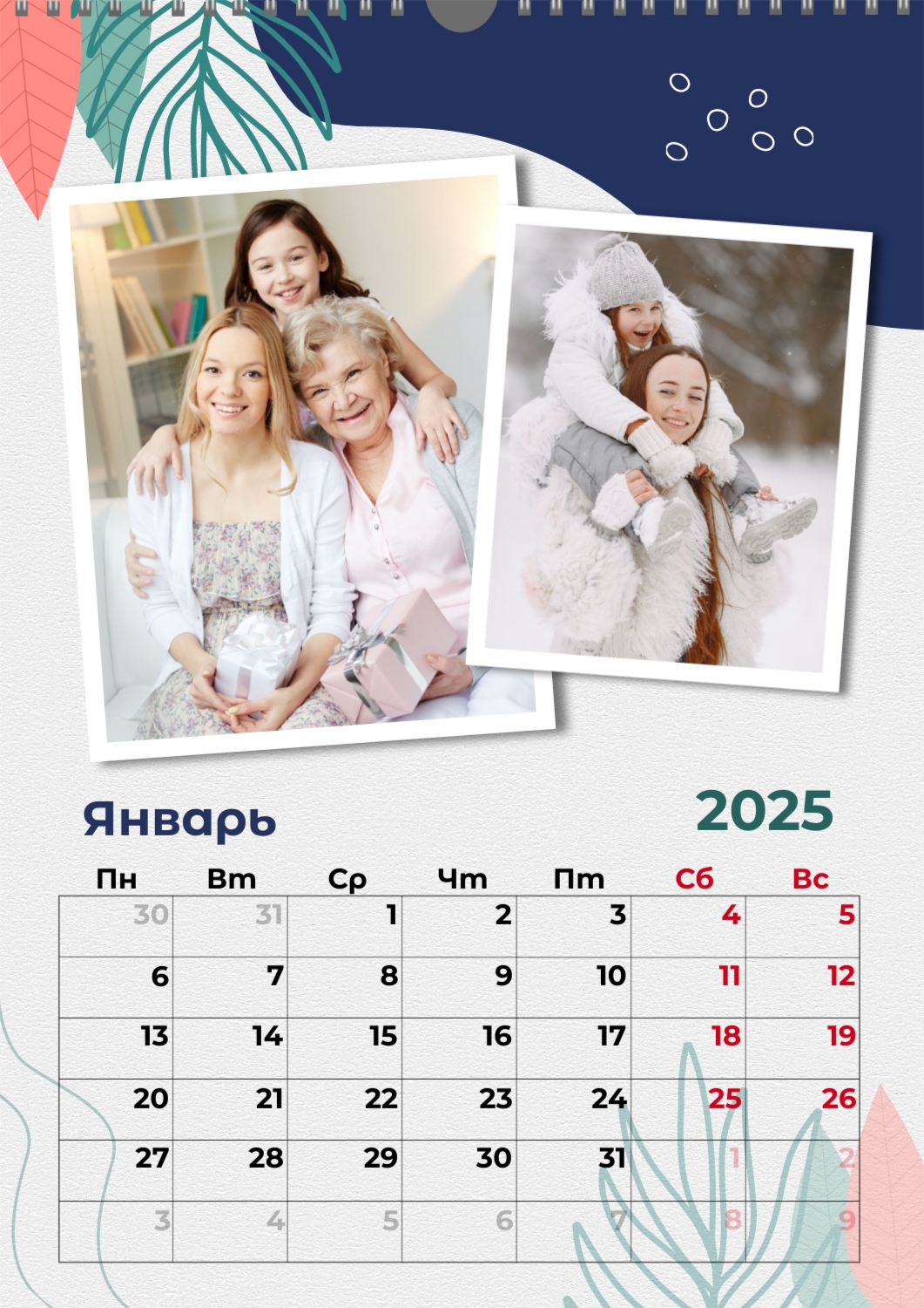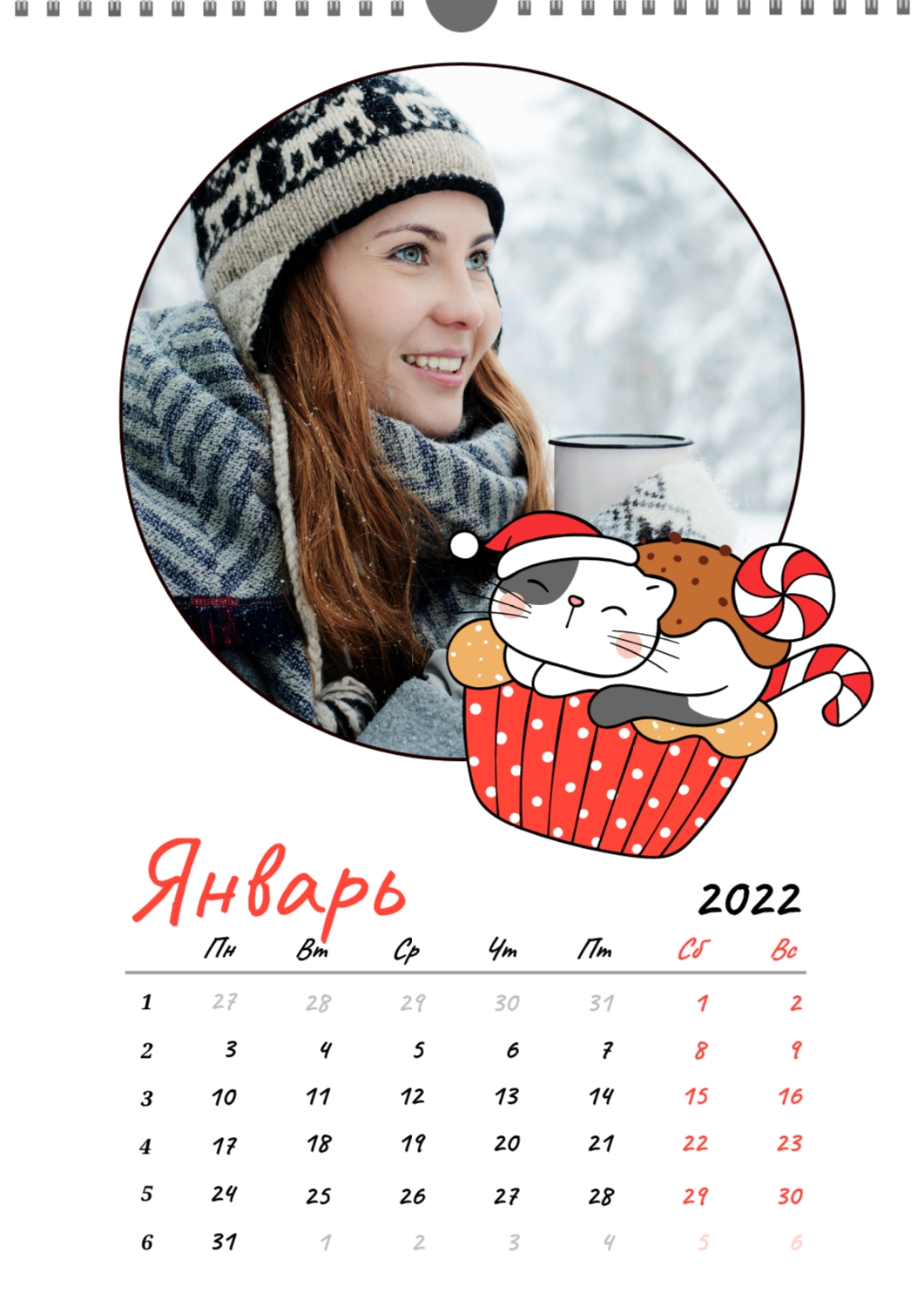 Бесплатный шаблон новогоднего календаря для поздравления друзей и близких. Создайте макет своими руками в конструкторе календарей.