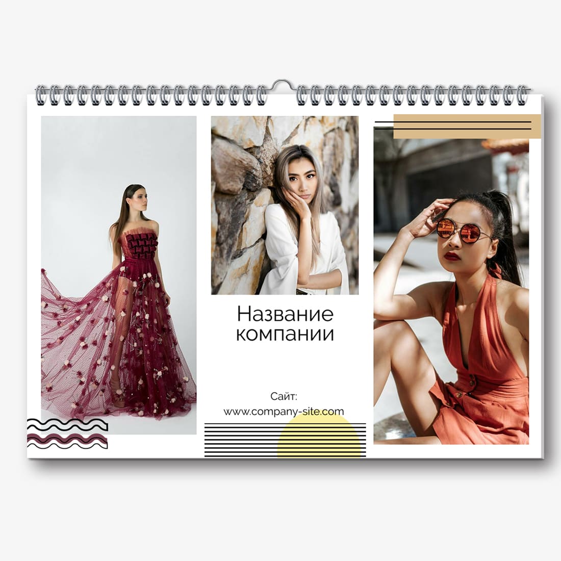 Бесплатный шаблон настенного календаря-портфолио для фотостудий, фотографов и фотохудожников, с возможностью редактирования его в конструкторе календарей.