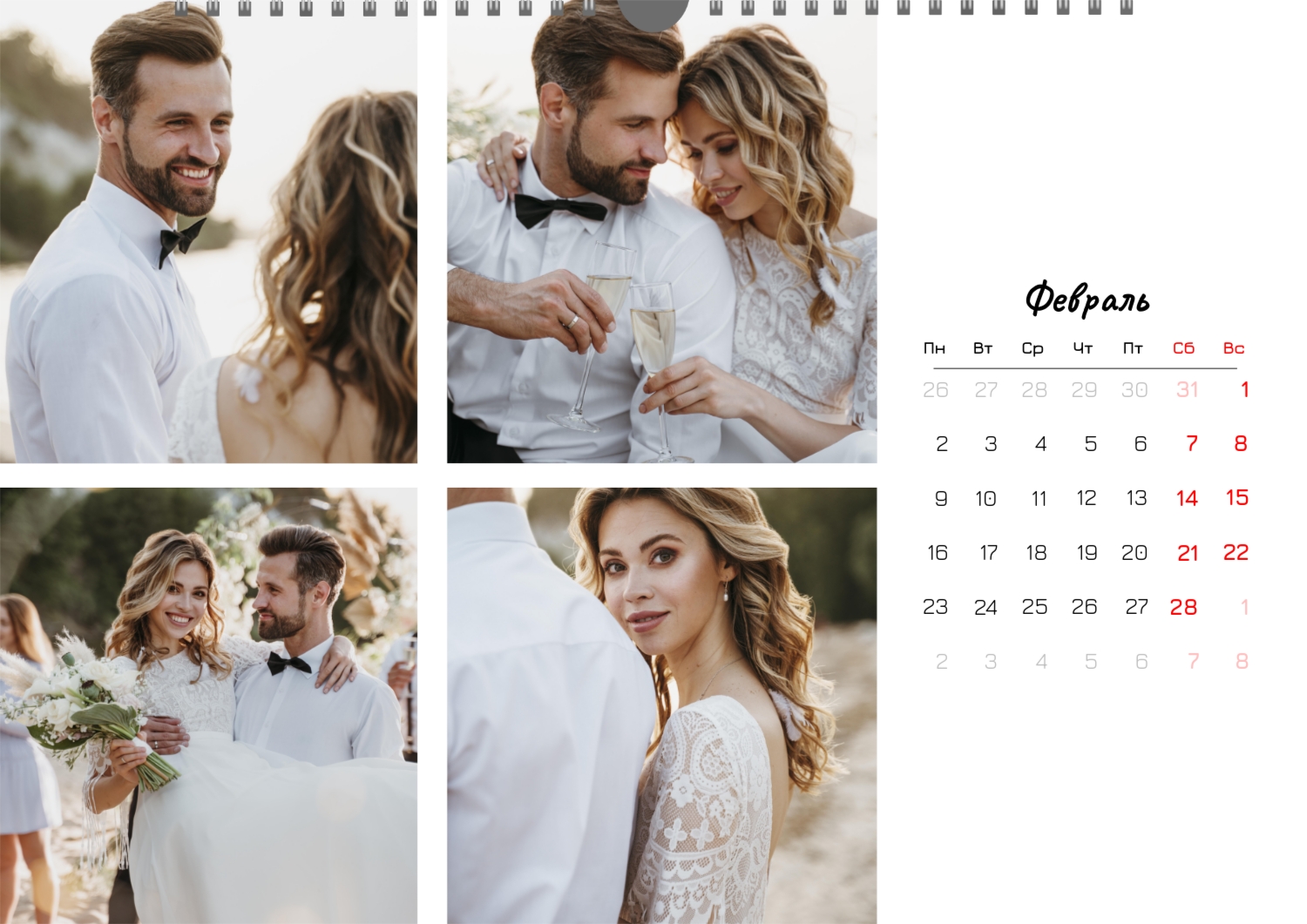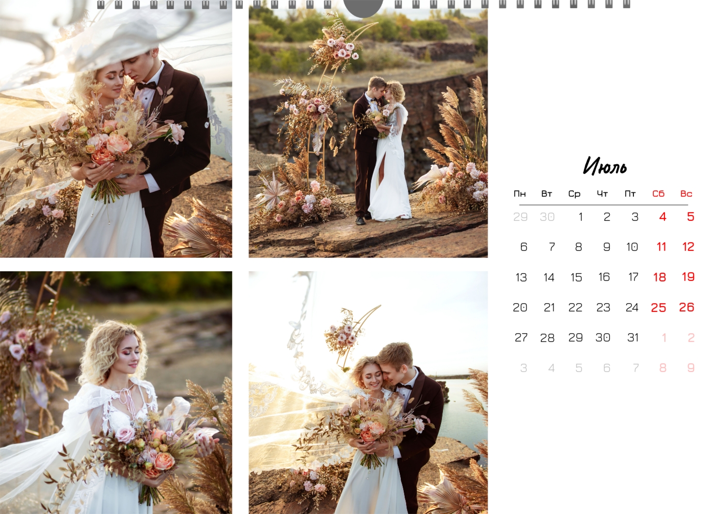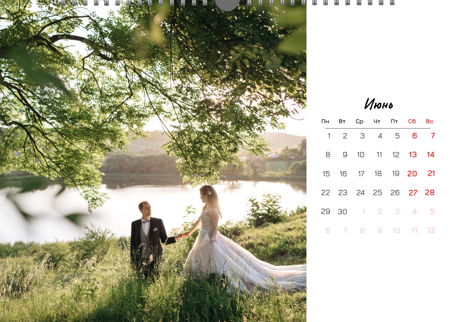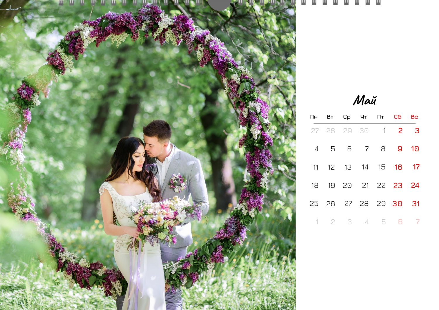 Бесплатный шаблон свадебного настенного календаря онлайн для свадебных фотосессий. Создайте макет своими руками в онлайн-конструкторе календарей.