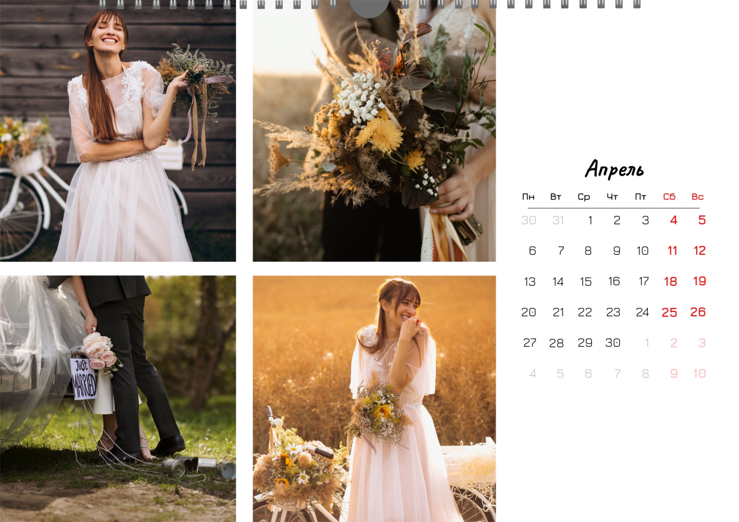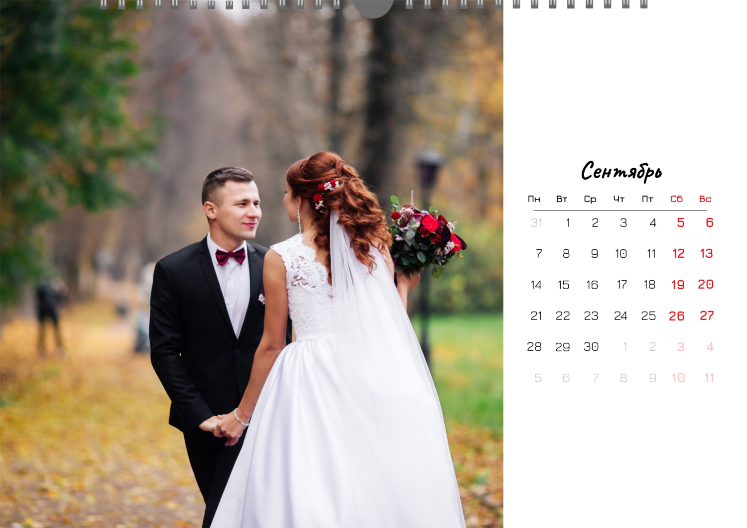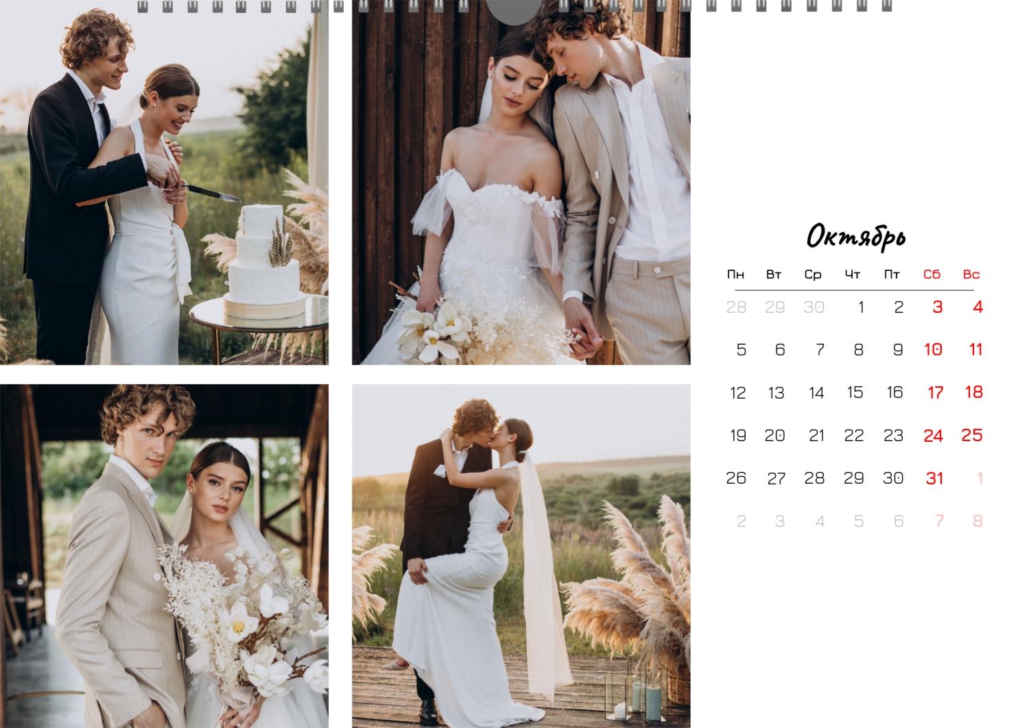 Бесплатный шаблон свадебного настенного календаря онлайн для свадебных фотосессий. Создайте макет своими руками в онлайн-конструкторе календарей.