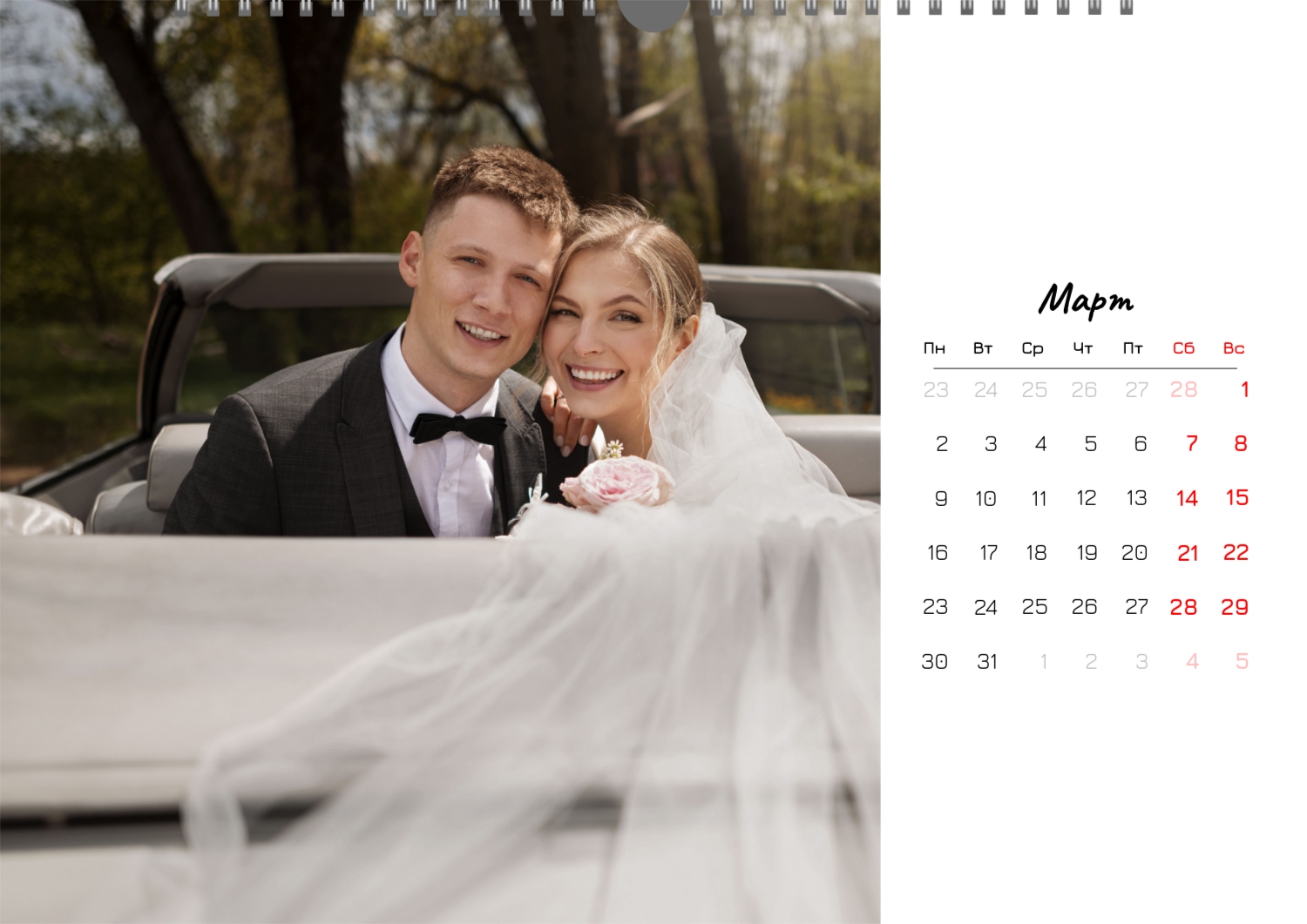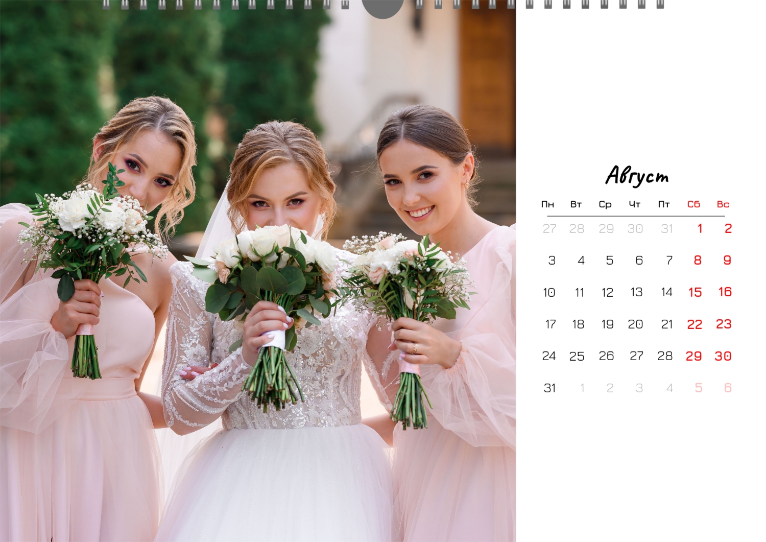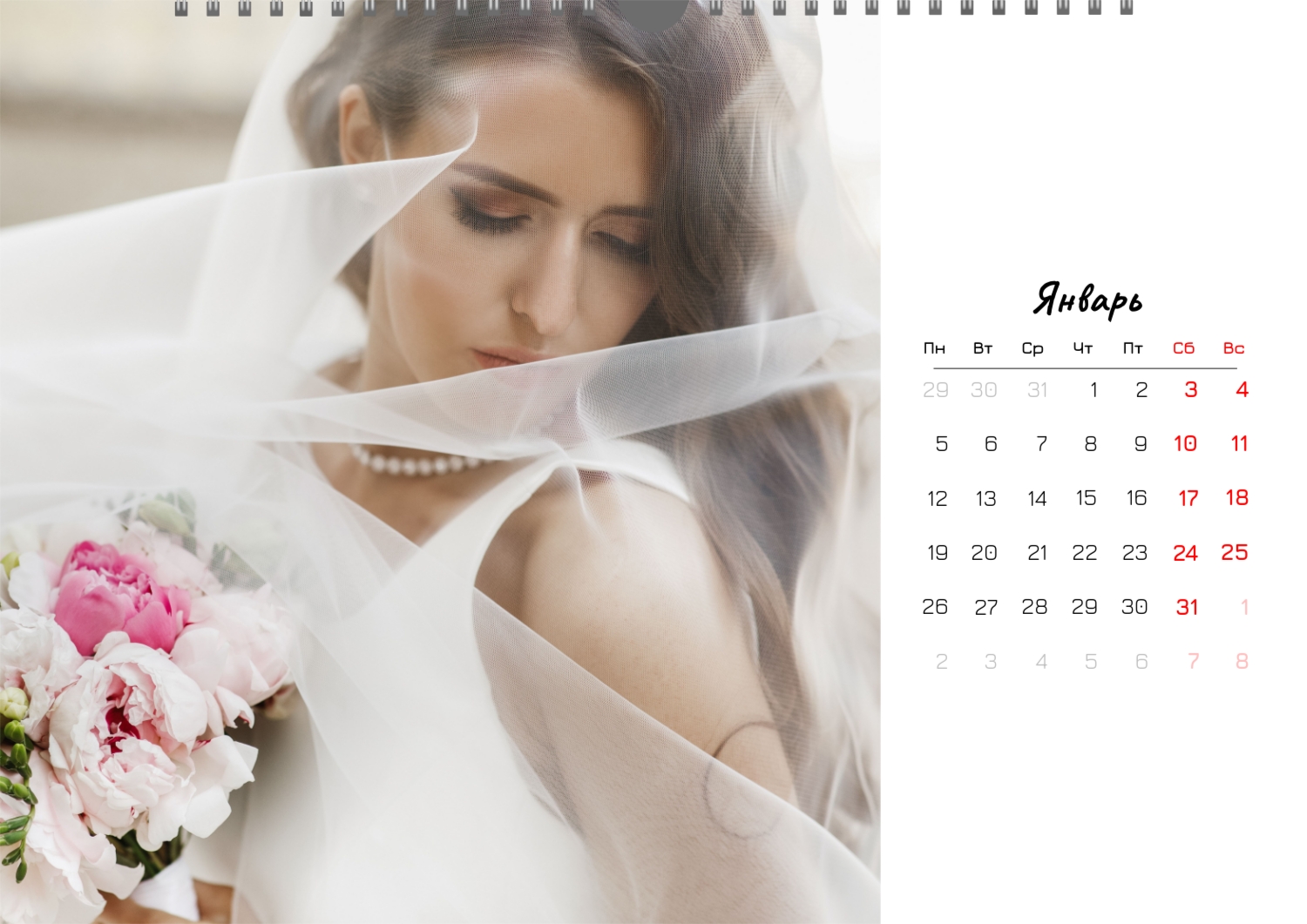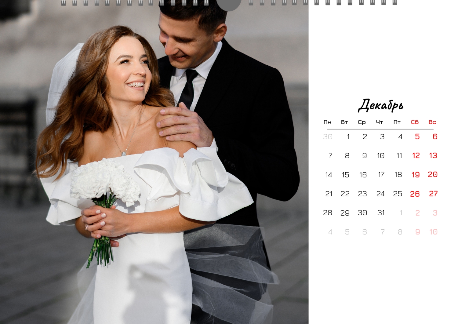 Бесплатный шаблон свадебного настенного календаря онлайн для свадебных фотосессий. Создайте макет своими руками в онлайн-конструкторе календарей.