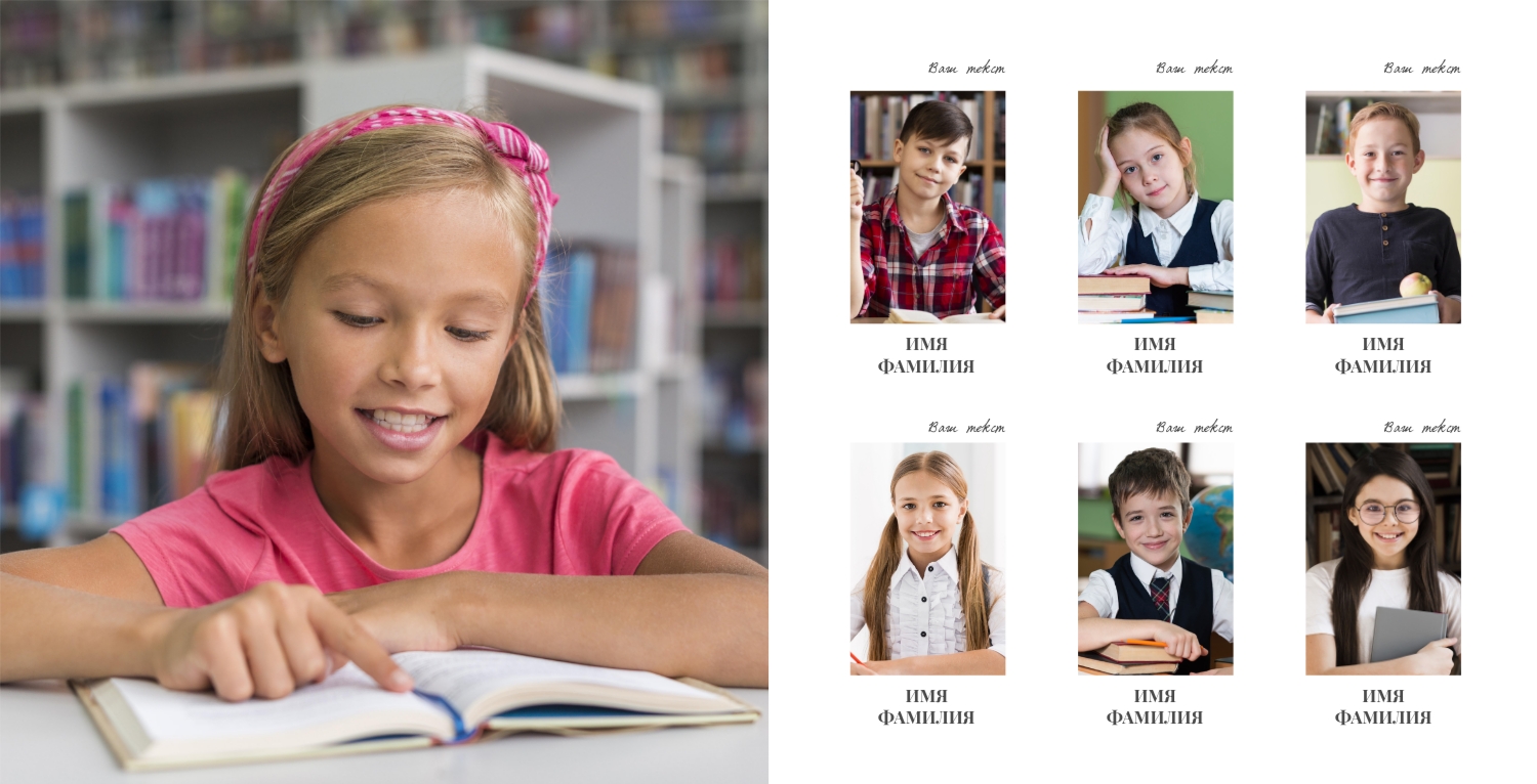 Бесплатный шаблон фотокниги выпускников средней школы. Создайте макет своими руками в онлайн-конструкторе фотокниг.