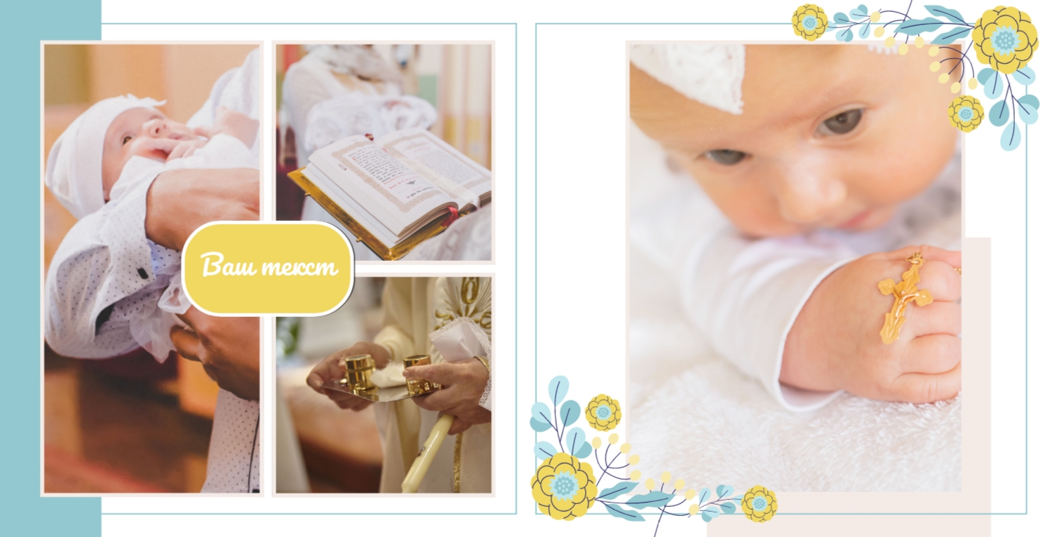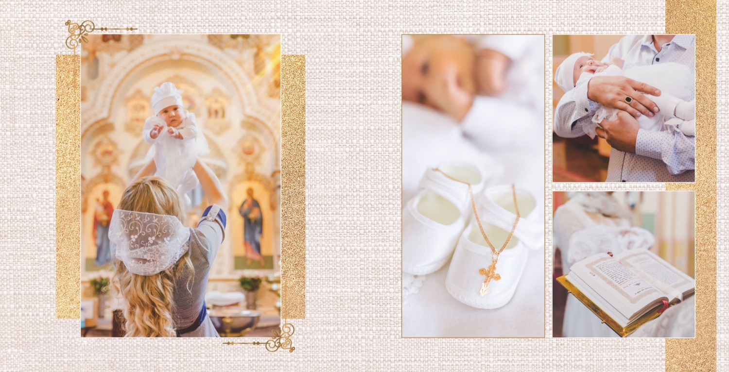 Готовый шаблон фотокниги в твердой обложке «Таинство Крещения» для девочки — это нежный и трогательный дизайн, который поможет сохранить в памяти один из самых важных дней в жизни ребенка. В оформлении преобладают светлые, пастельные оттенки, изящные узоры и символические элементы, такие как ангелы, свечи и крестики, создающие атмосферу духовности и торжественности. Такой шаблон идеально подойдет не только для родителей, желающих запечатлеть моменты Крещения своей дочери, но и для профессиональных фотографов, работающих с семейными и церковными фотосессиями, а также для церковных типографий и мастерских, занимающихся оформлением памятных альбомов. В онлайн-конструкторе этот квадратный шаблон можно легко адаптировать под личные предпочтения. Каждая страница редактируется: можно изменить расположение фотографий, добавить новые снимки или убрать ненужные элементы. Тексты, подписи и стихи также поддаются настройке — можно выбрать другой шрифт, изменить размер букв или подобрать оттенки, которые лучше сочетаются с выбранными фотографиями. Кроме того, можно вставить имена крестных родителей, дату и место проведения Таинства, что придаст фотокниге уникальность и сделает ее по-настоящему персональной. Простота работы в онлайн-конструкторе позволяет создать профессионально выглядящую фотокнигу своими руками, даже если раньше не приходилось заниматься дизайном. Благодаря широким возможностям редактирования этот шаблон можно превратить в неповторимый семейный альбом, который станет ценным воспоминанием на долгие годы.
