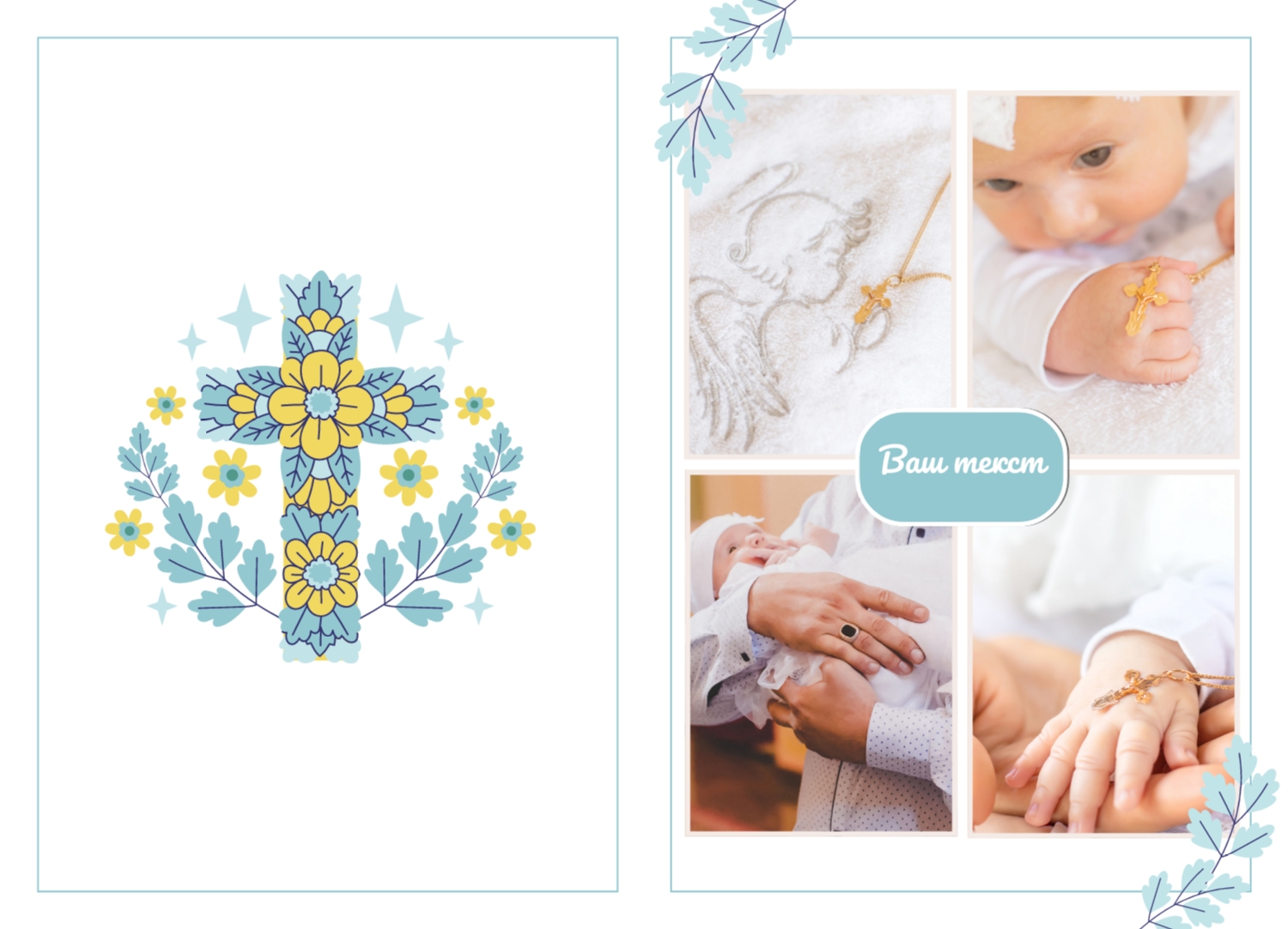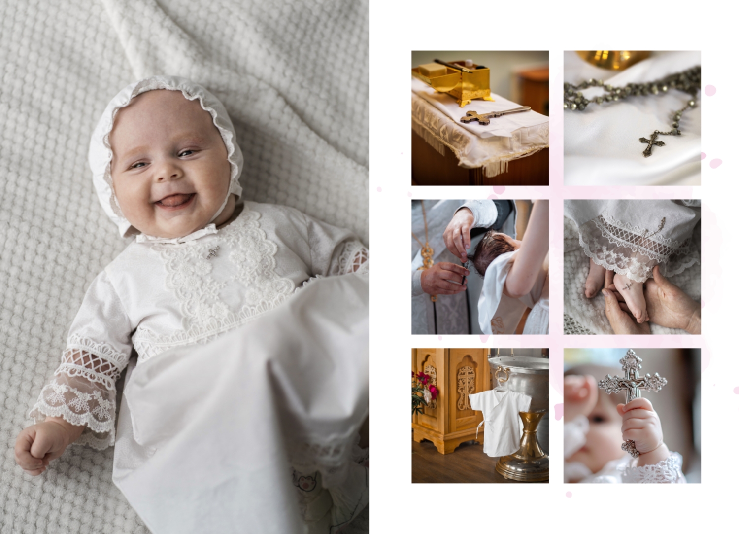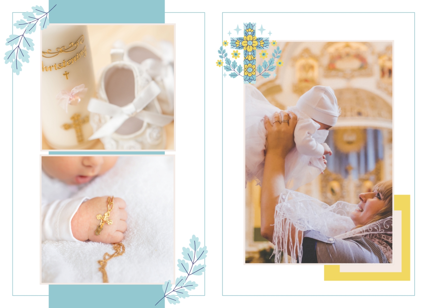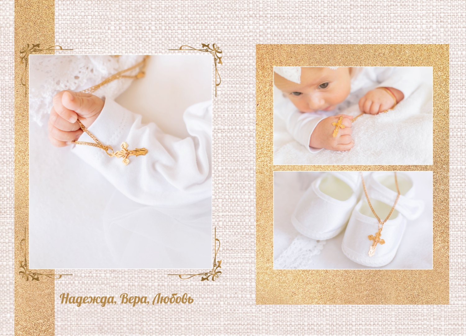 Готовый шаблон фотокниги в твердой обложке «Таинство Крещения» для девочки — это нежный и трогательный дизайн, который поможет сохранить в памяти один из самых важных дней в жизни ребенка. В оформлении преобладают светлые, пастельные оттенки, изящные узоры и символические элементы, такие как ангелы, свечи и крестики, создающие атмосферу духовности и торжественности. Такой шаблон идеально подойдет не только для родителей, желающих запечатлеть моменты Крещения своей дочери, но и для профессиональных фотографов, работающих с семейными и церковными фотосессиями, а также для церковных типографий и мастерских, занимающихся оформлением памятных альбомов. В онлайн-конструкторе этот вертикальный шаблон можно легко адаптировать под личные предпочтения. Каждая страница редактируется: можно изменить расположение фотографий, добавить новые снимки или убрать ненужные элементы. Тексты, подписи и стихи также поддаются настройке — можно выбрать другой шрифт, изменить размер букв или подобрать оттенки, которые лучше сочетаются с выбранными фотографиями. Кроме того, можно вставить имена крестных родителей, дату и место проведения Таинства, что придаст фотокниге уникальность и сделает ее по-настоящему персональной.