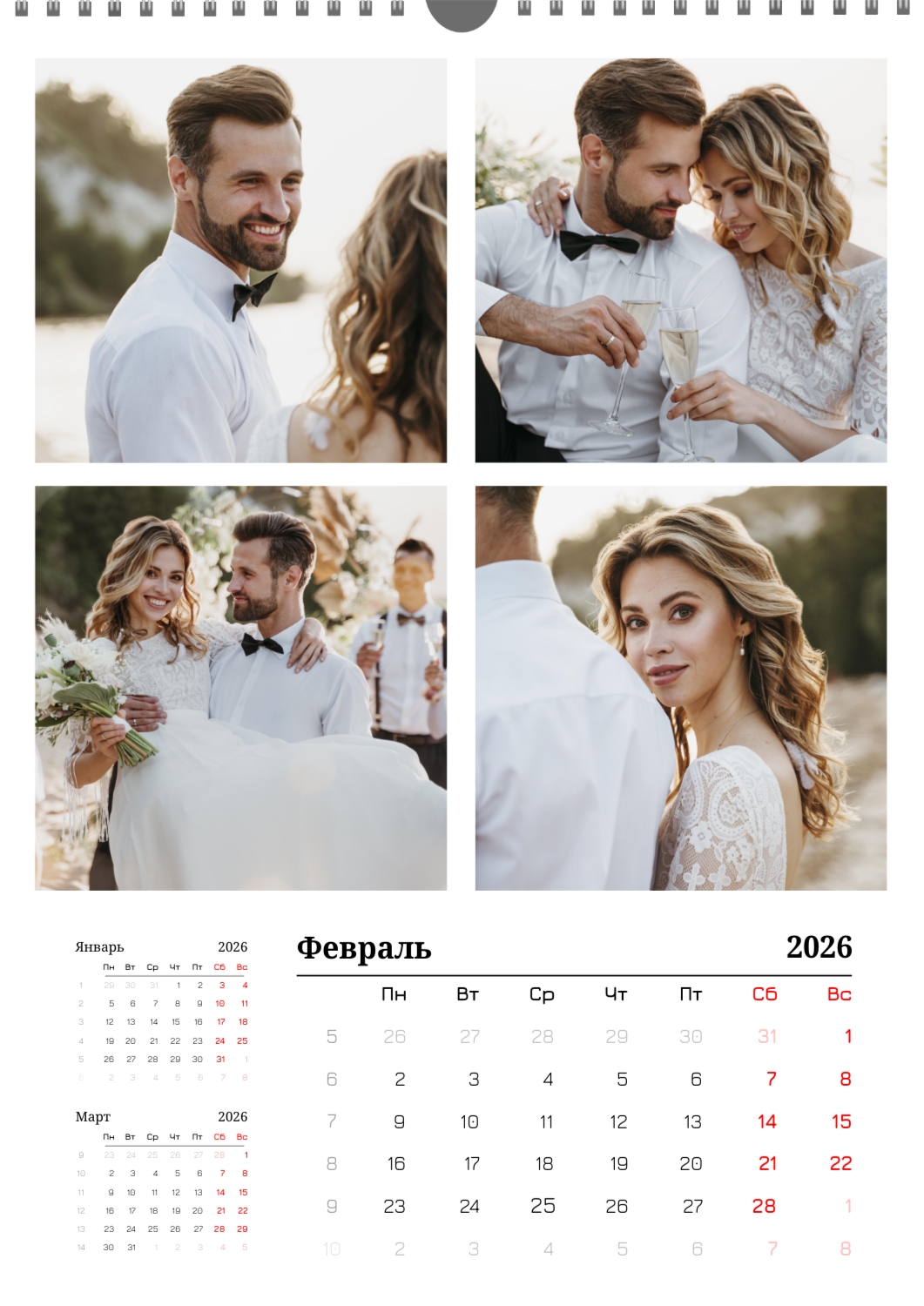 Готовый шаблон настенного календаря с поздравлением выполнен в минималистичном и современном стиле, где каждый месяц встречает пользователя коротким приветствием. Такой подход делает календарь не просто инструментом для планирования, но и стильным элементом интерьера. Он может подойти дизайнерам, маркетологам, фотографам, творческим специалистам, преподавателям, фрилансерам, владельцам небольших студий или салонов, а также любому, кто ценит эстетичность и аккуратную визуальную организацию рабочего пространства. В онлайн-конструкторе этот шаблон можно легко адаптировать под личные или корпоративные задачи. Есть возможность изменить фон, выбрать другие сочетания шрифтов, заменить приветственные фразы или оставить их в исходном виде, скорректировать цветовую гамму, добавить фотографии, иллюстрации или фирменную графику. При необходимости можно вставить логотип компании, контактные данные или мотивационные цитаты, чтобы календарь стал частью корпоративного стиля или персональным творческим объектом для вдохновения. Редактирование происходит напрямую в браузере, без необходимости устанавливать дополнительные программы. Все элементы можно перемещать, масштабировать и настраивать так, чтобы календарь выглядел гармонично и отражал характер пользователя или бренда. В результате получается полностью индивидуальный календарь, созданный своими руками на основе продуманного шаблона, который остается одновременно удобным, функциональным и визуально привлекательным.