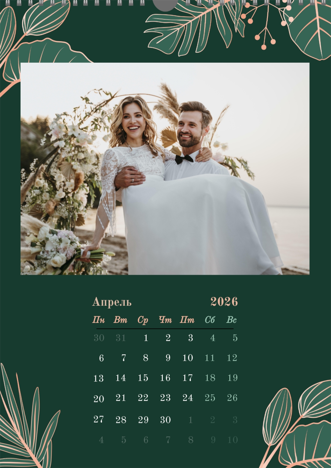 Готовый шаблон настенного календаря со свадебными фото — это универсальная основа, созданная специально для тех, кто хочет сохранить атмосферу торжества в красивом и функциональном формате. Он особенно подходит фотографам, свадебным агентствам, декораторам, а также специалистам, которые создают персонализированные подарки или сувениры для молодожёнов. Такой календарь часто используют как часть свадебного пакета, в качестве дополнения к фотокнигам или как трогательный подарок родителям и друзьям. В онлайн-конструкторе этот шаблон полностью поддаётся редактированию, что позволяет адаптировать его под любую историю или стиль свадьбы. Можно заменить фон, изменять расположение фотографий, корректировать цветовую гамму, добавлять надписи, важные даты и индивидуальные пожелания. Все элементы легко перемещаются, масштабируются и подстраиваются под композицию — это делает процесс создания максимально удобным даже для тех, кто не имеет опыта в дизайне. При необходимости можно добавить декоративные элементы, фирменные шрифты или даже стилизовать макет под определённую тематику свадьбы, будь то классика, бохо, минимализм или винтаж. Используя наш онлайн-конструктор, можно создать по-настоящему уникальный настенный календарь, который станет красивым напоминанием о важном дне и будет радовать весь год.