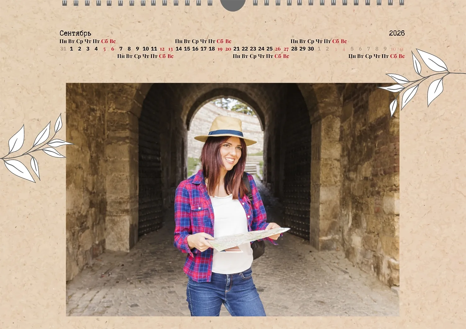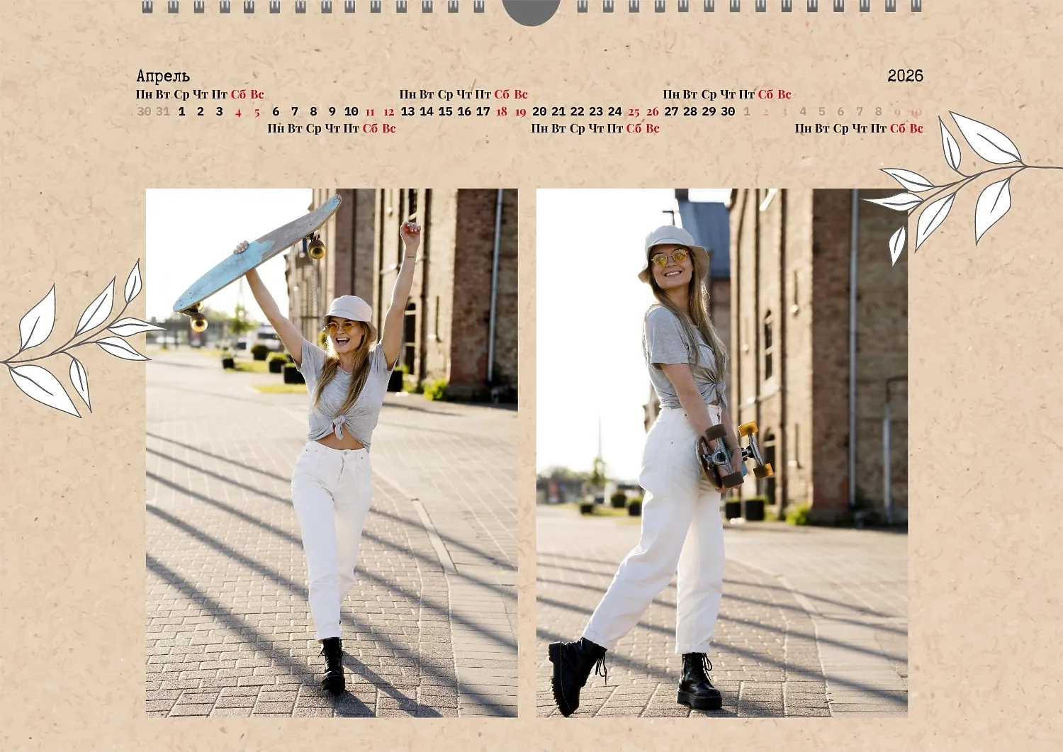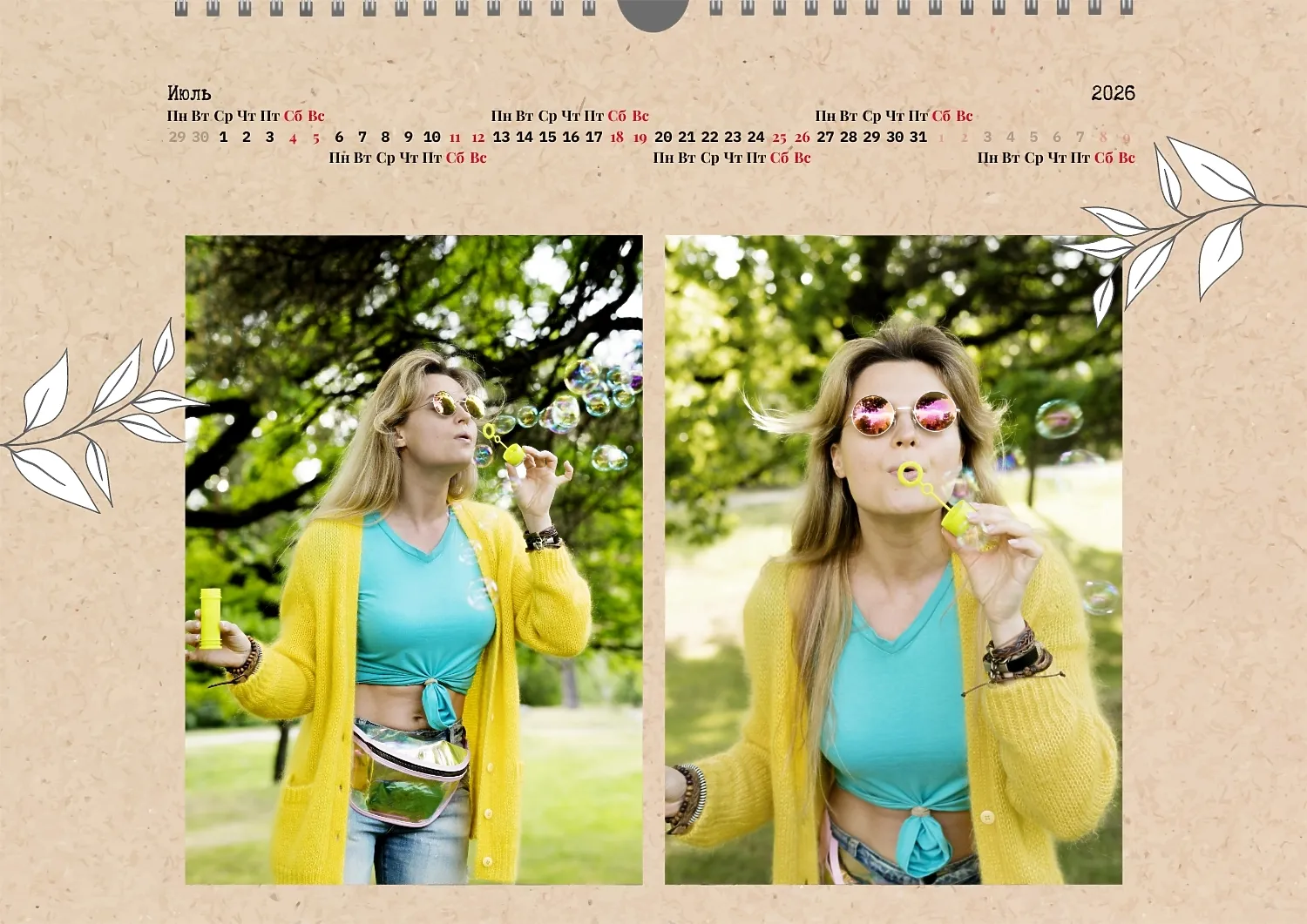 Готовый шаблон настенного календаря с личными фотографиями — это прекрасное решение для тех, кто хочет создать уникальный и стильный аксессуар для дома, офиса или подарка. Такой горизонтальный календарь идеально подходит для людей, которые ценят индивидуальность и стремятся окружить себя вещами, наполненными смыслом и теплыми воспоминаниями. Главное преимущество шаблона — его доступность в удобном онлайн-конструкторе. Вы можете легко загрузить свои фотографии, изменить расположение элементов, добавить текстовые комментарии, выделить важные даты или события. Конструктор позволяет адаптировать шаблон под ваш стиль: выбрать цветовую гамму, шрифт, и даже настроить отдельные детали дизайна.